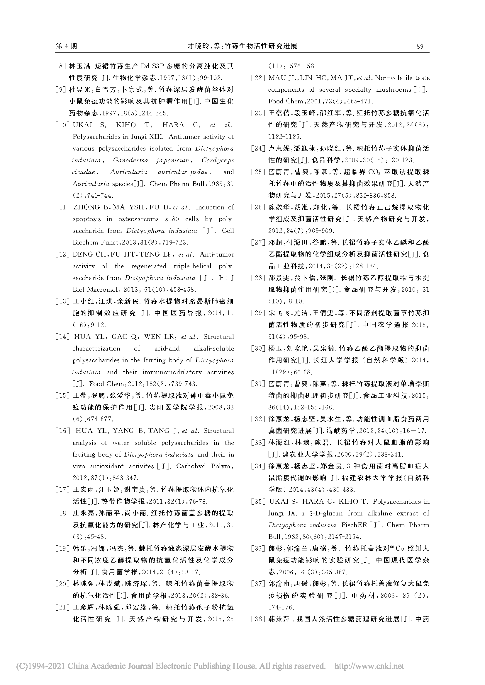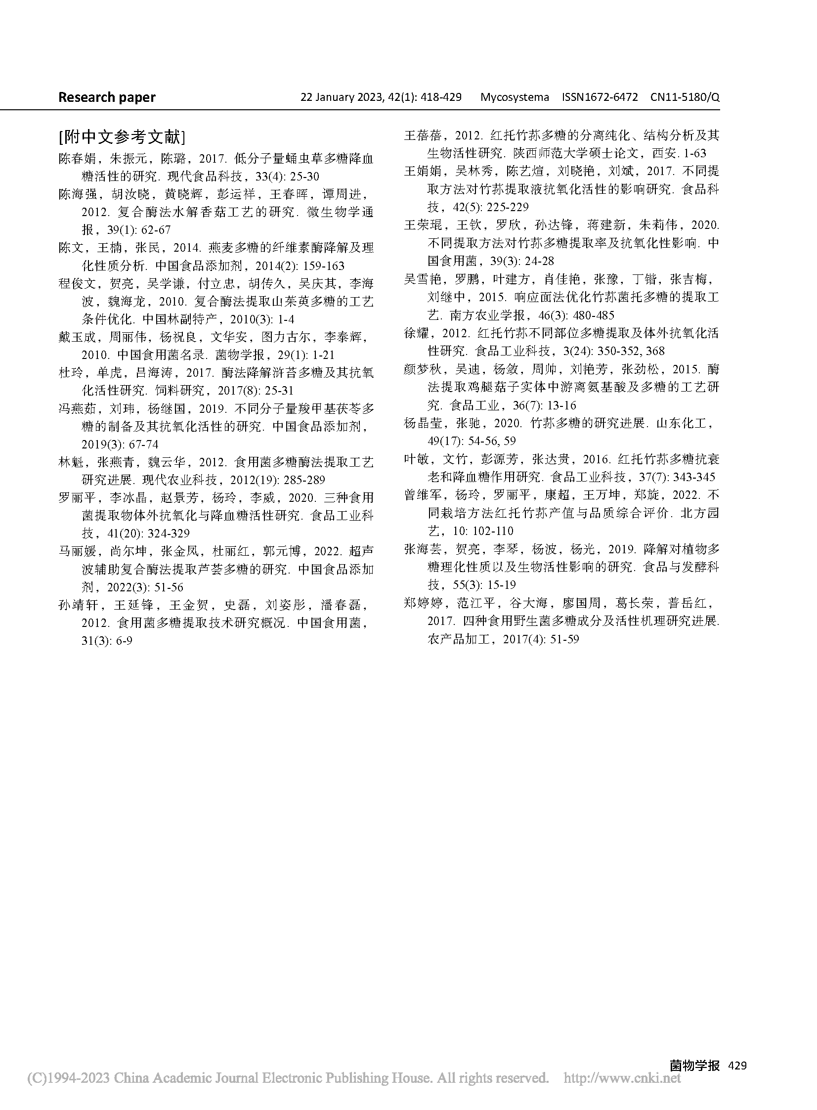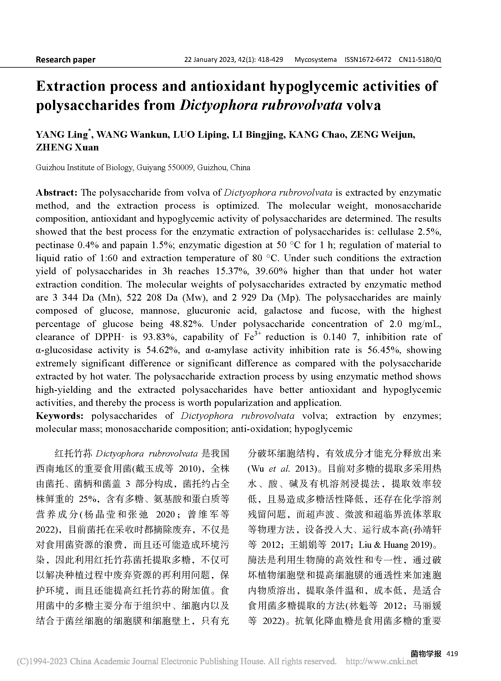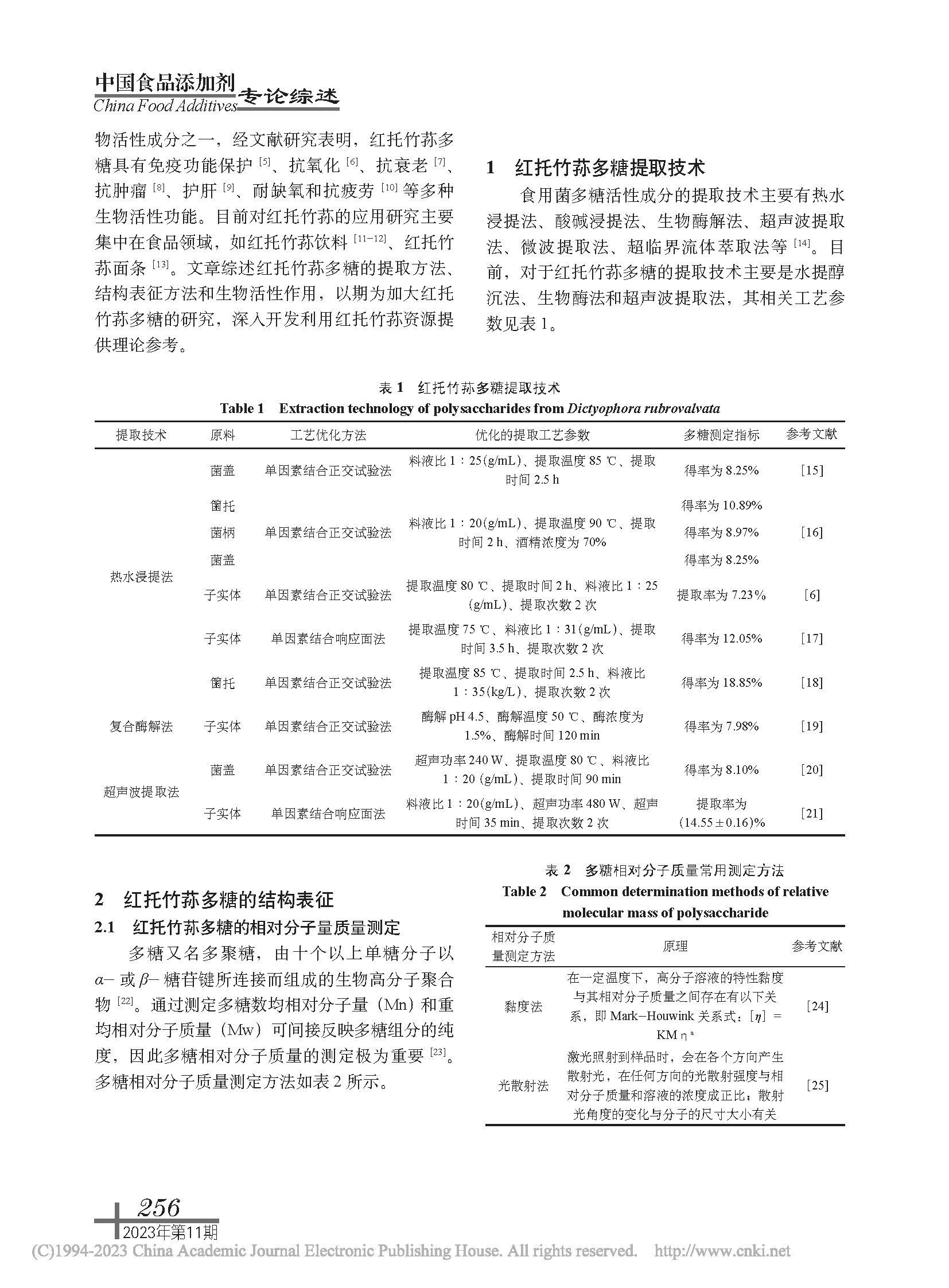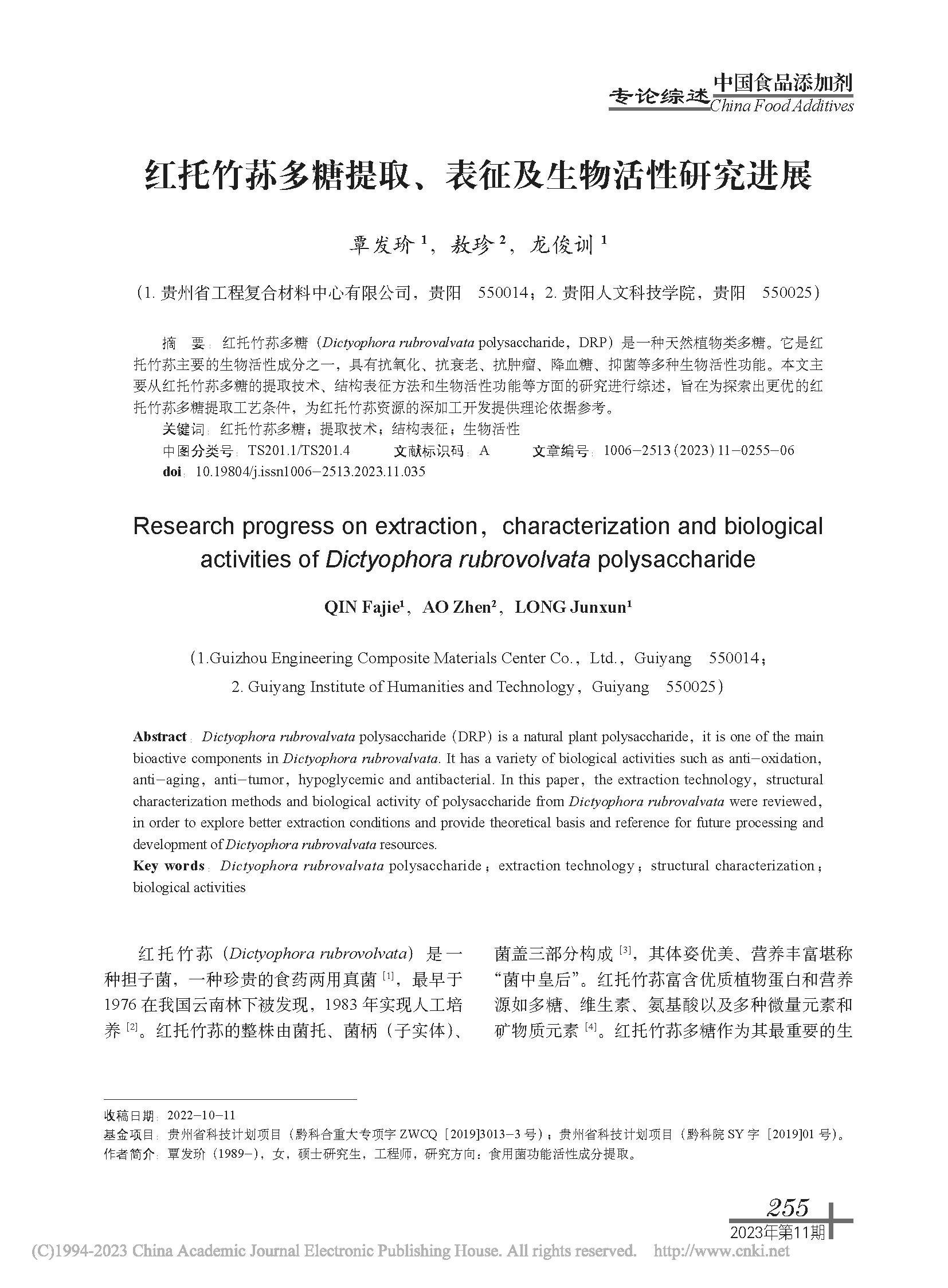 1、《红托竹荪多糖提取、表征及生物活性研究进展》