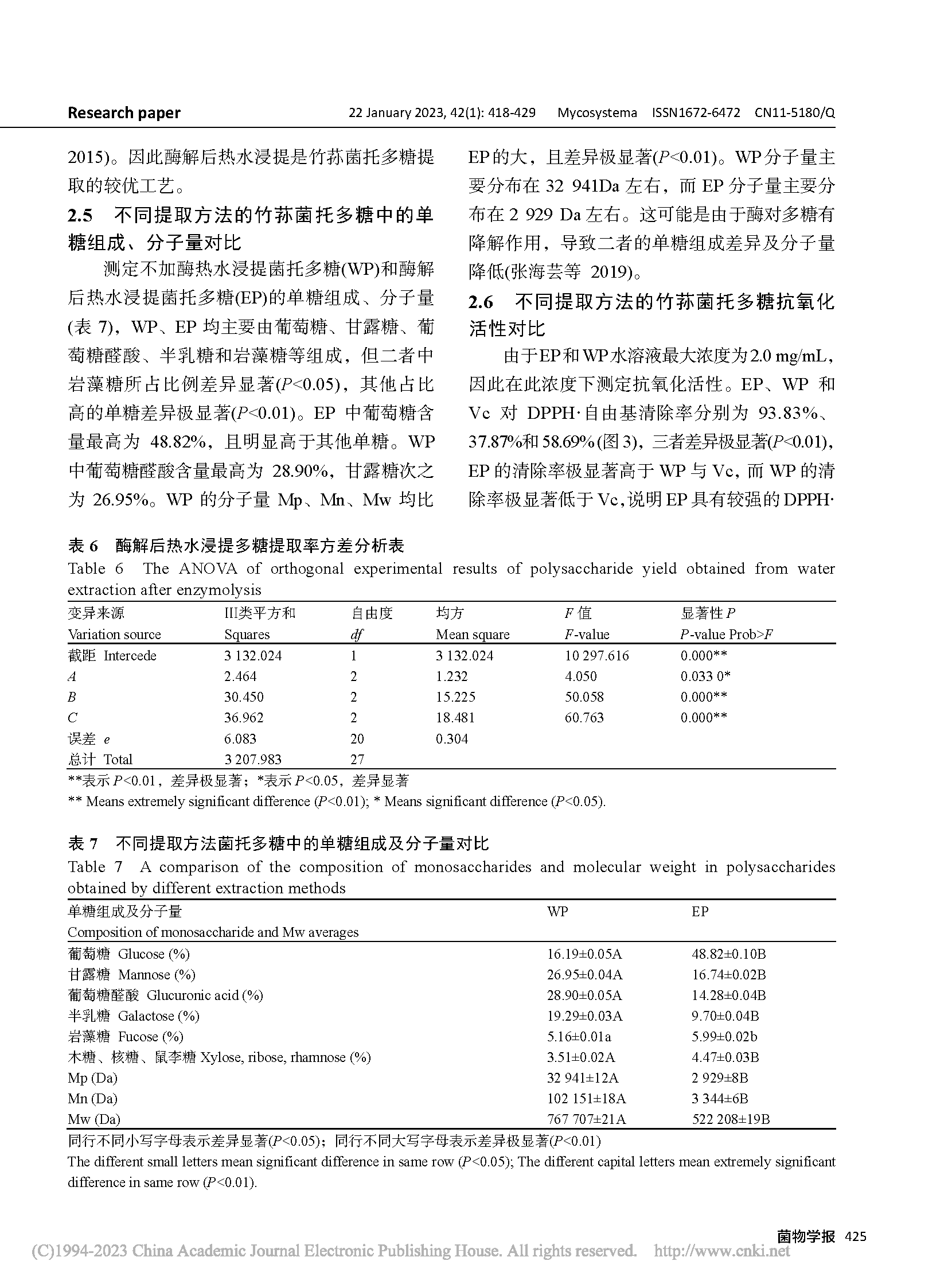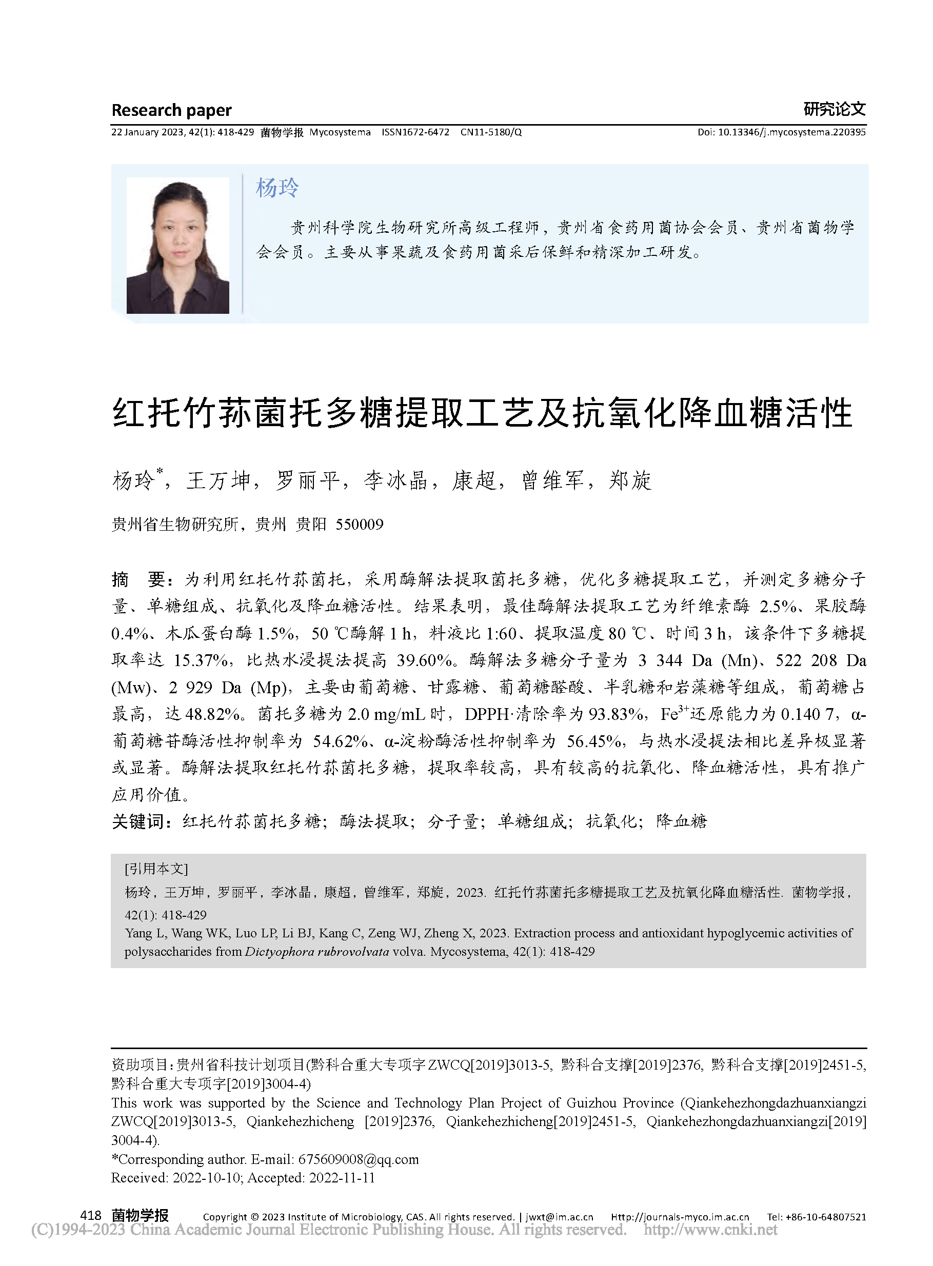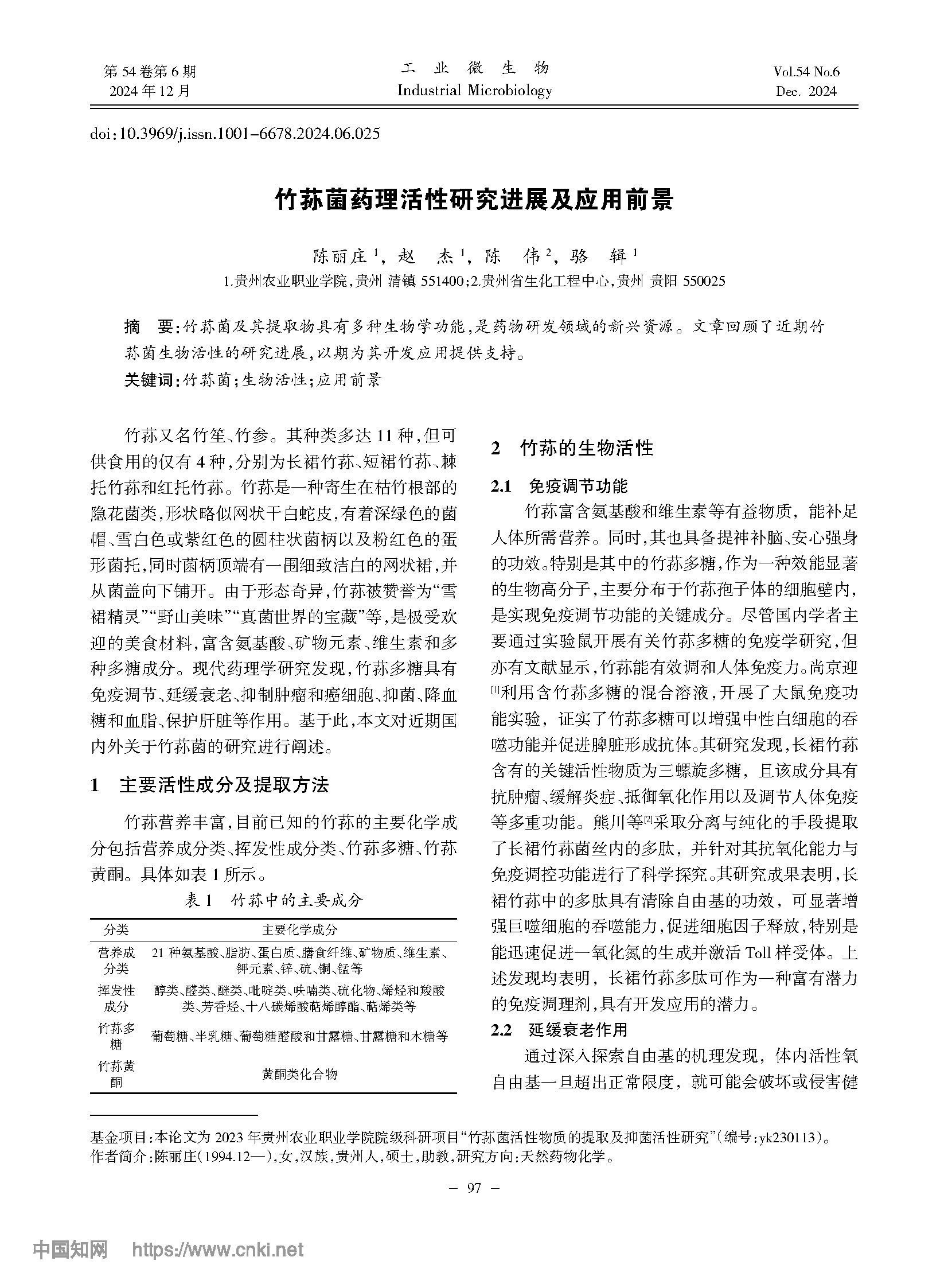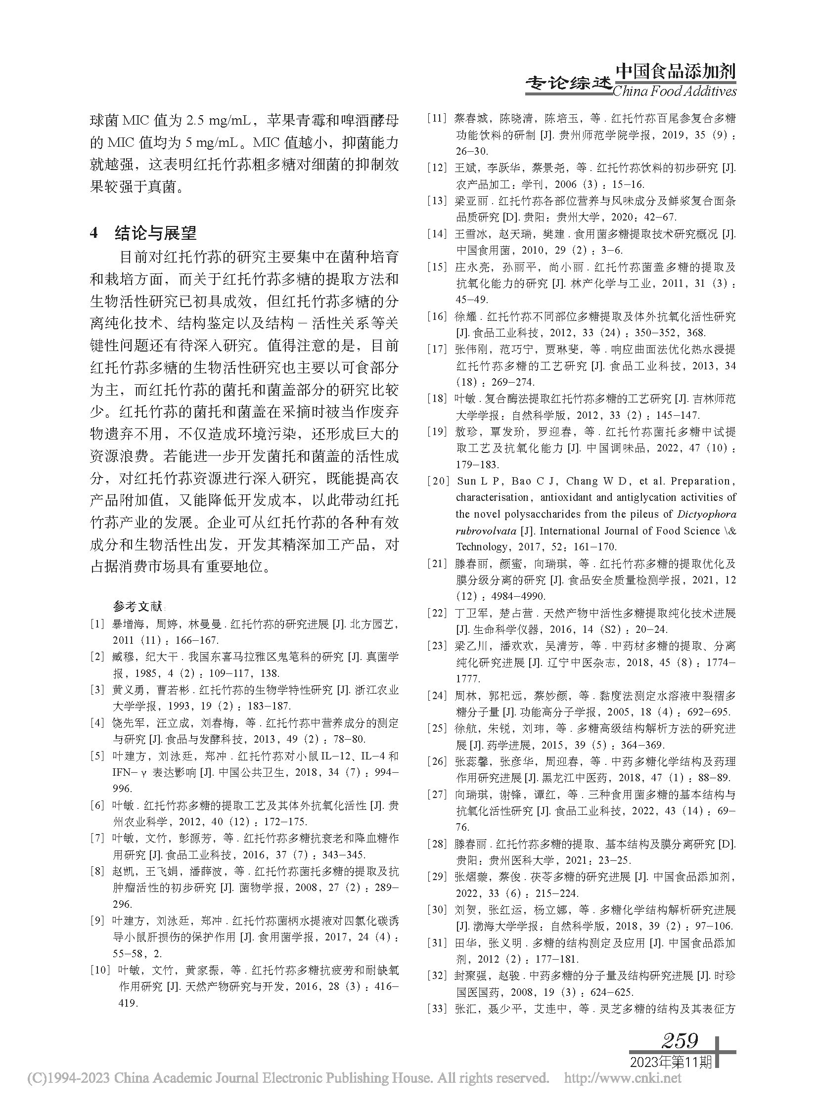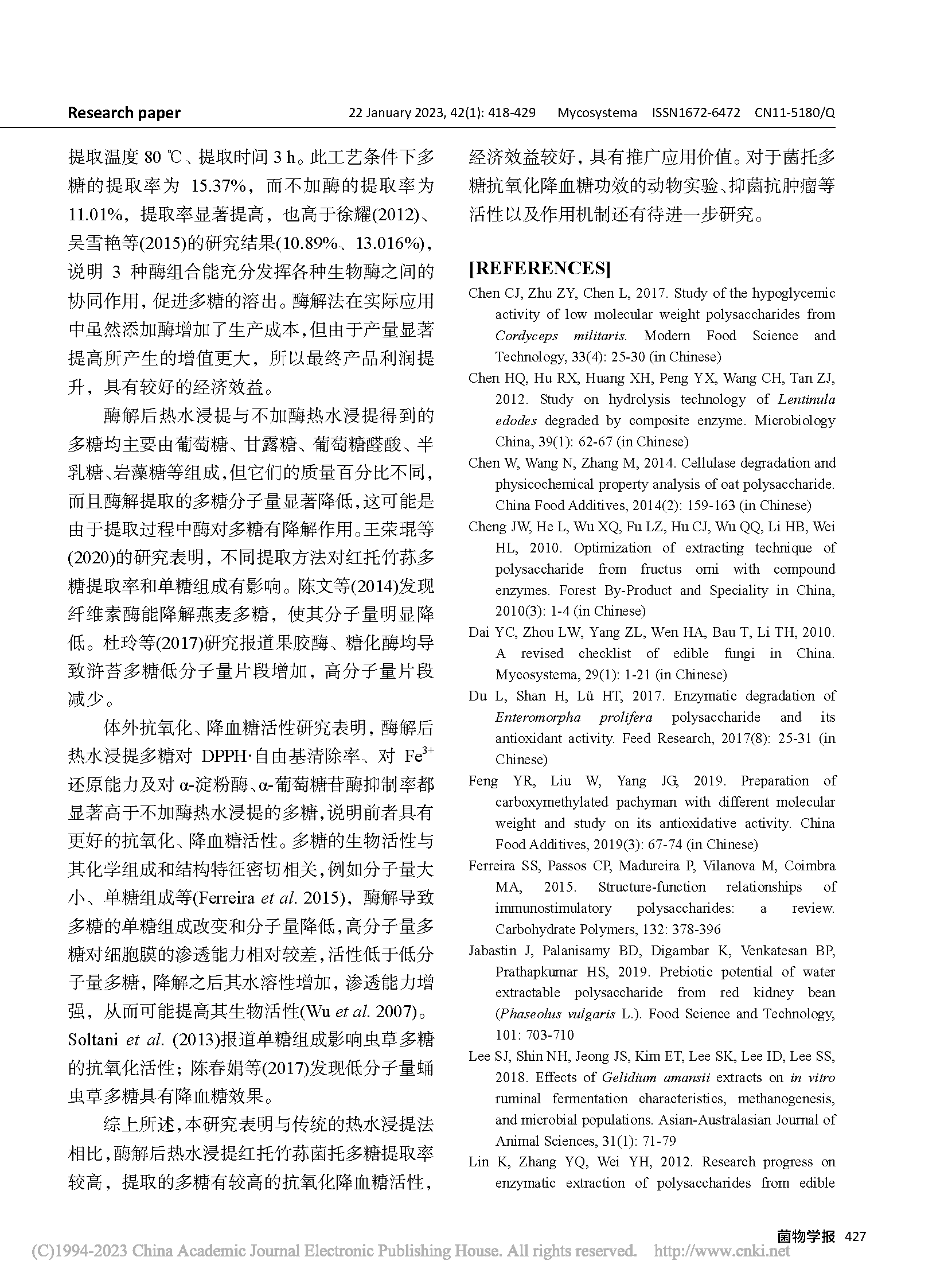 1、《红托竹荪多糖提取、表征及生物活性研究进展》