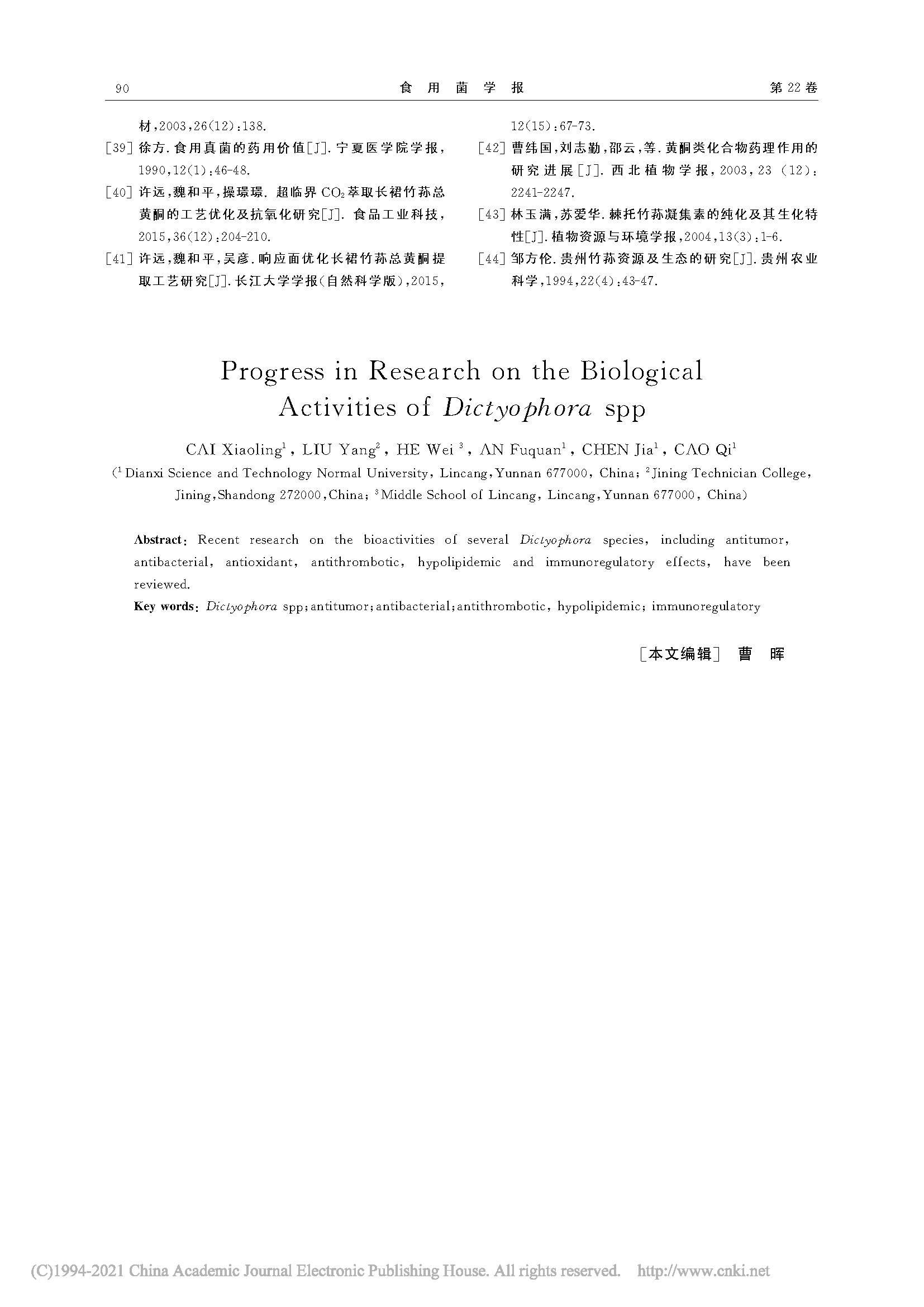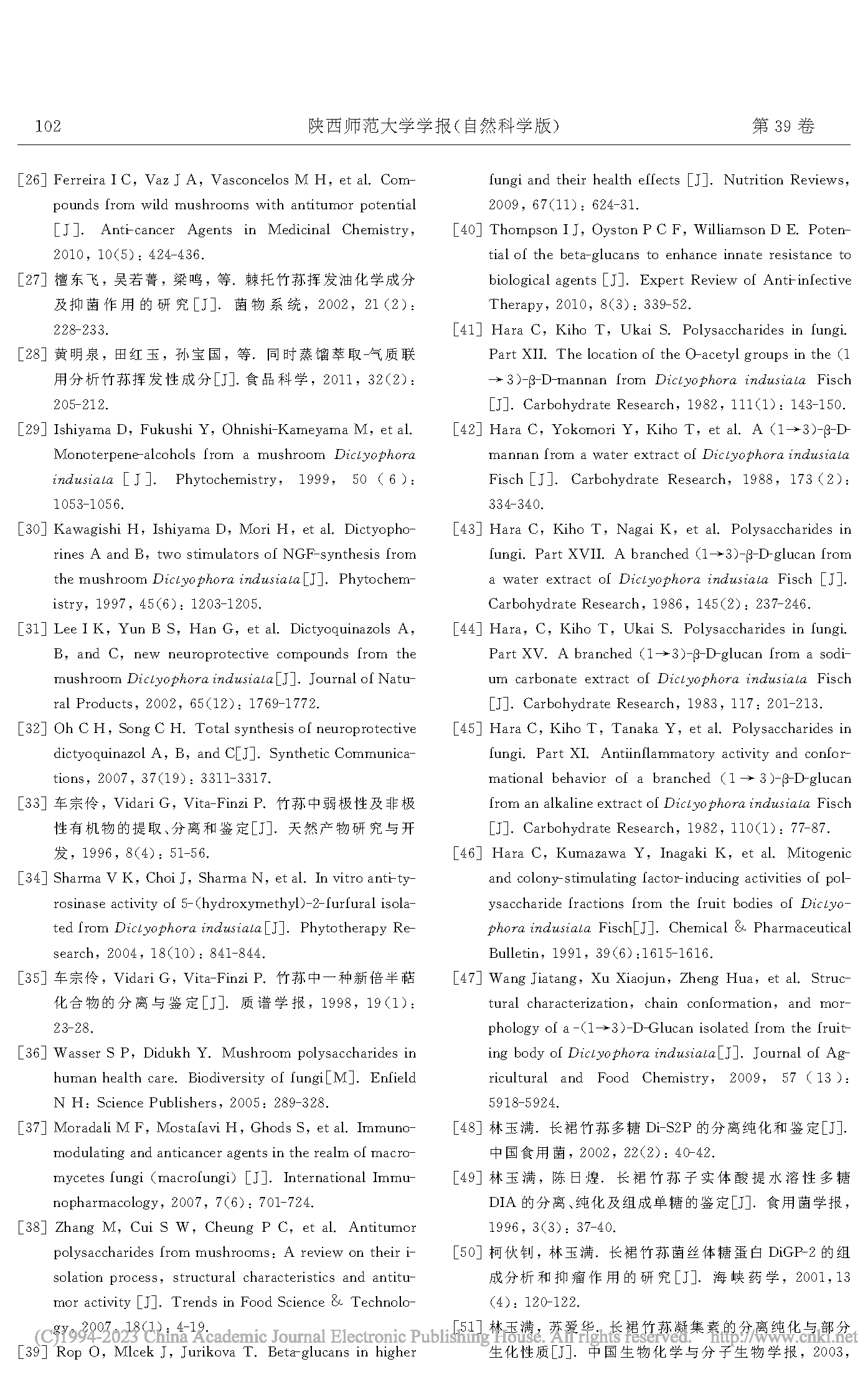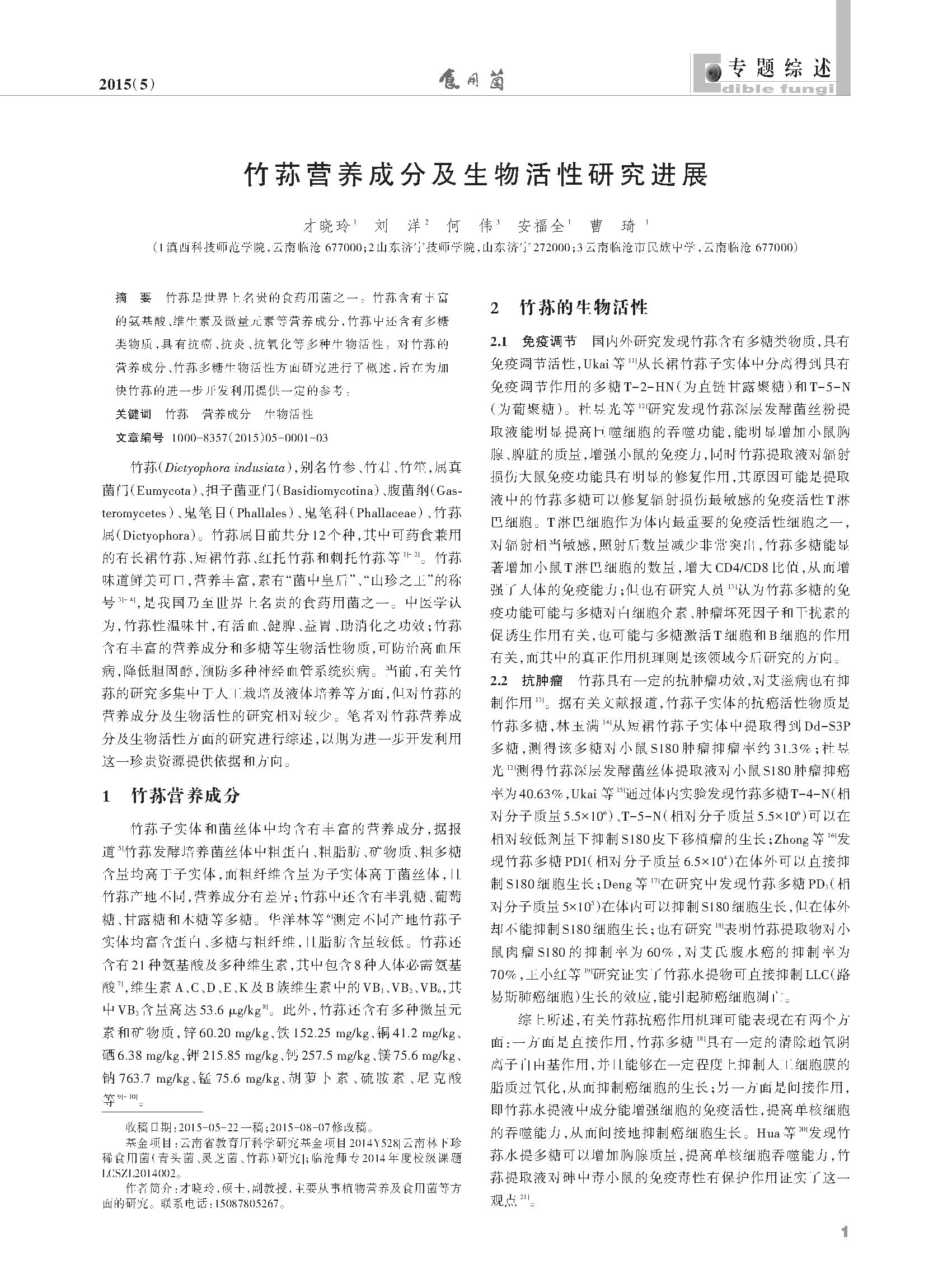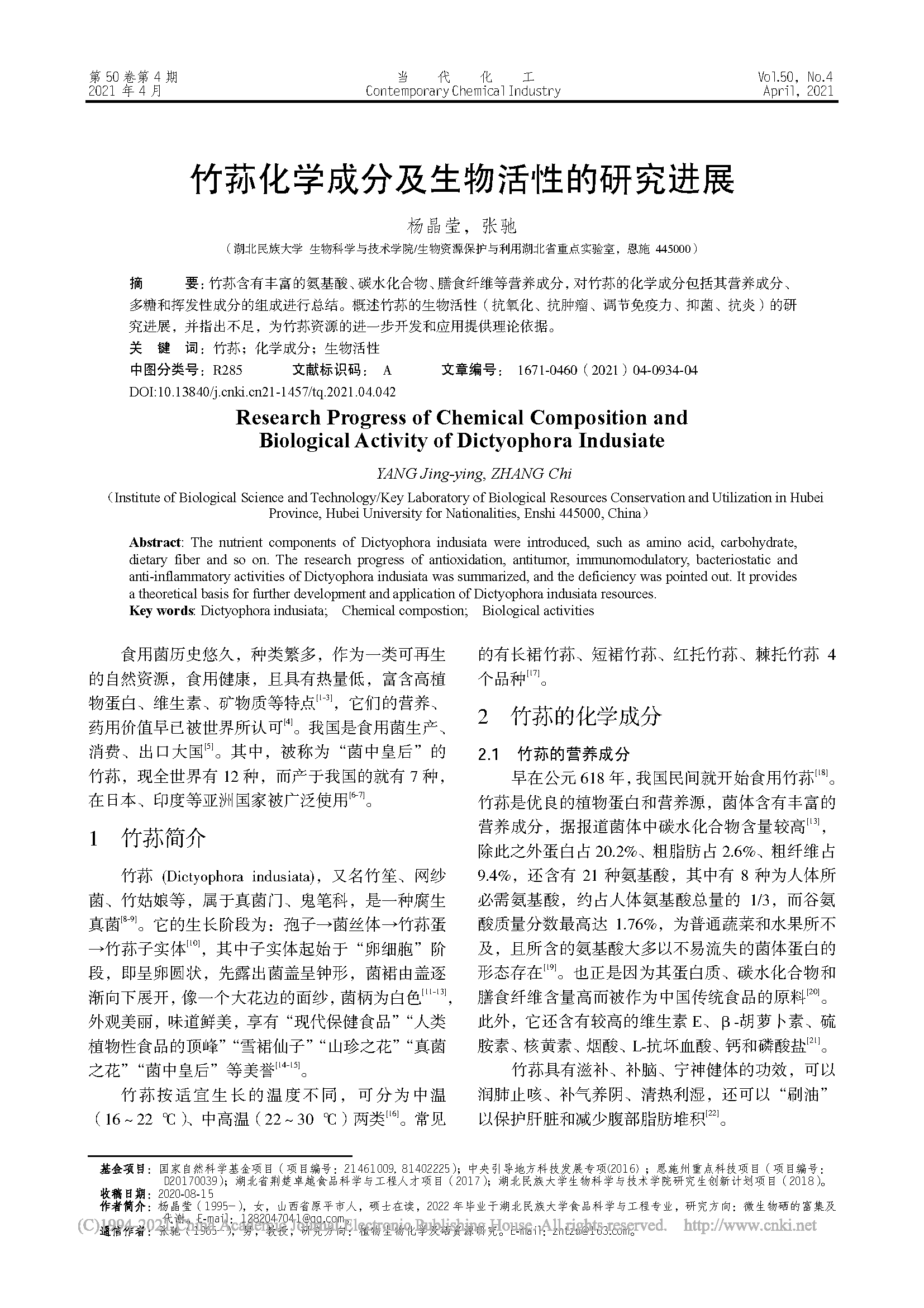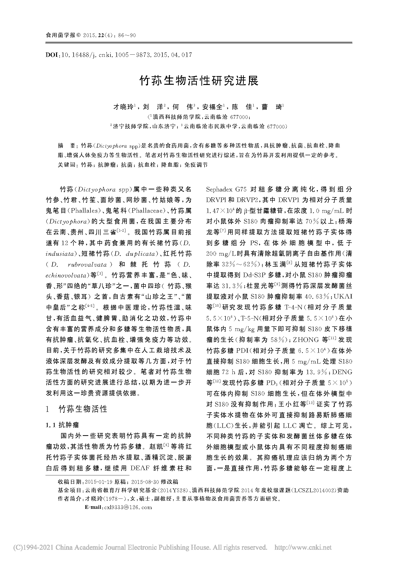 1、《红托竹荪多糖提取、表征及生物活性研究进展》