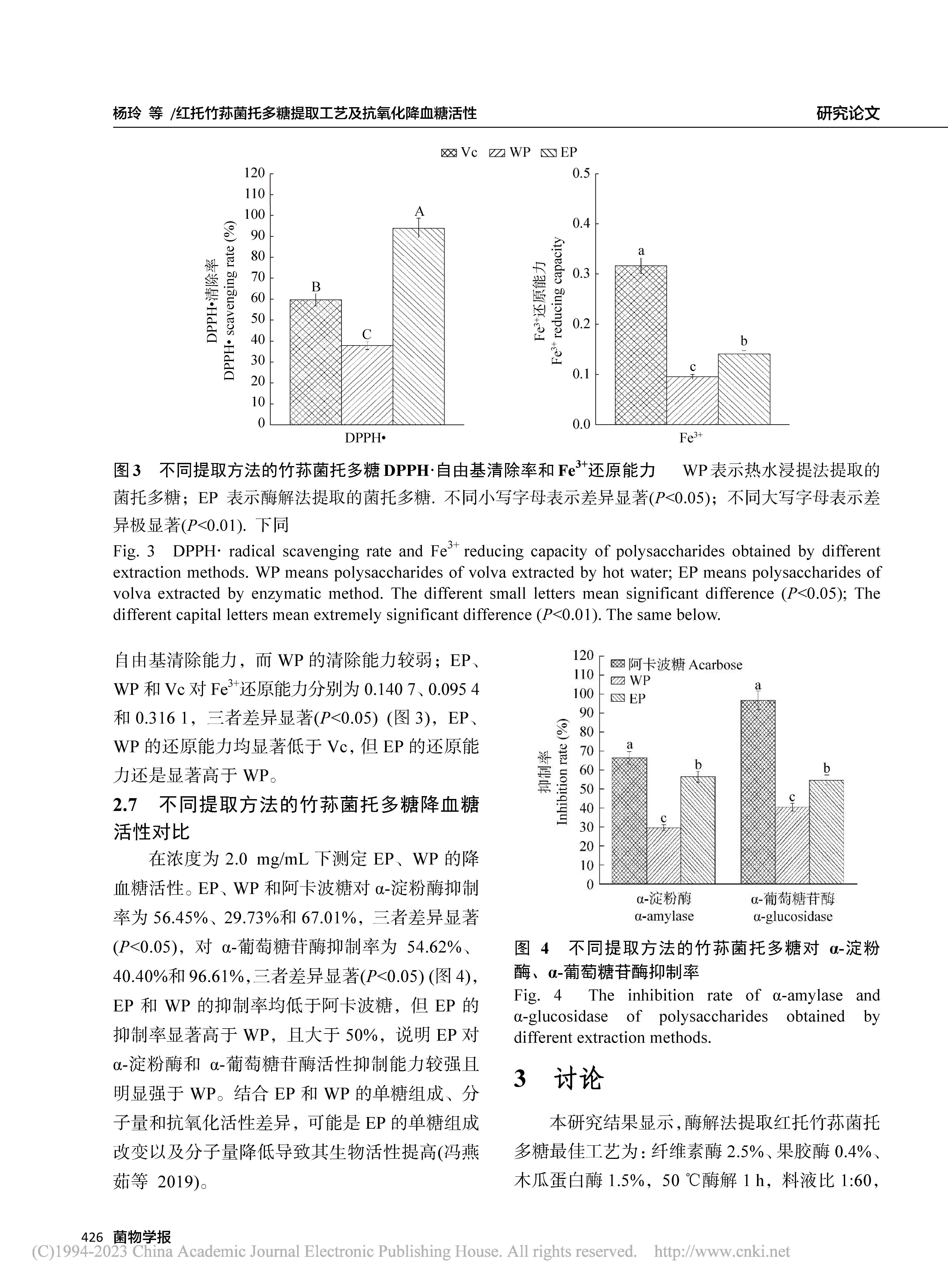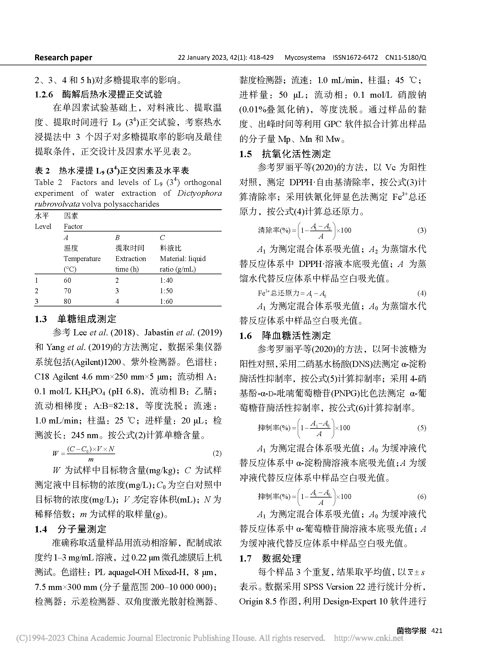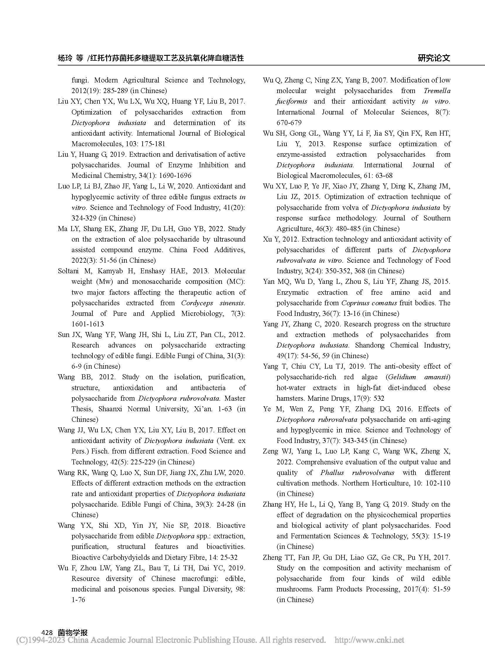 2、《红托竹荪菌托多糖提取工艺及抗氧化降血糖活性》