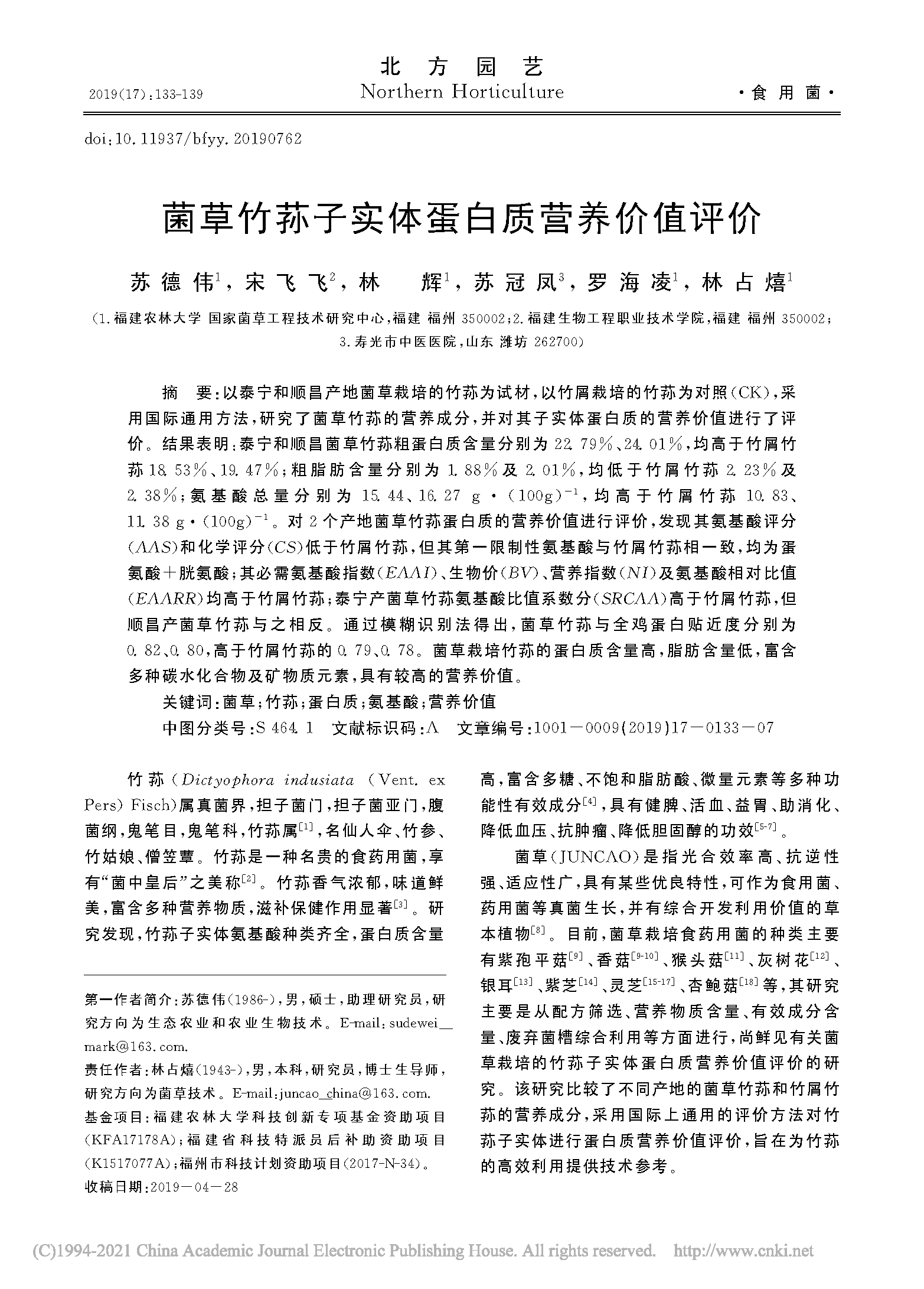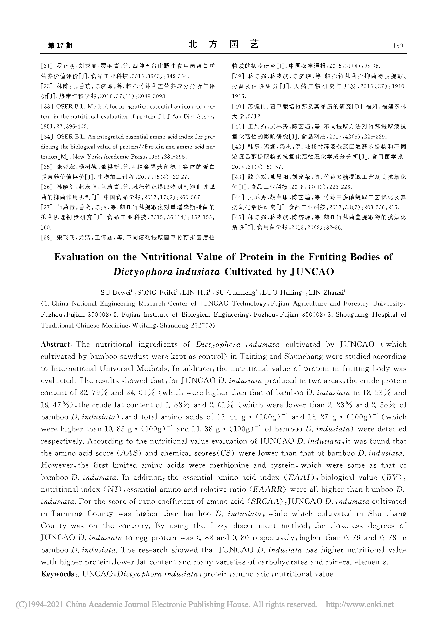3、《菌草竹荪子实体蛋白质营养价值评价》