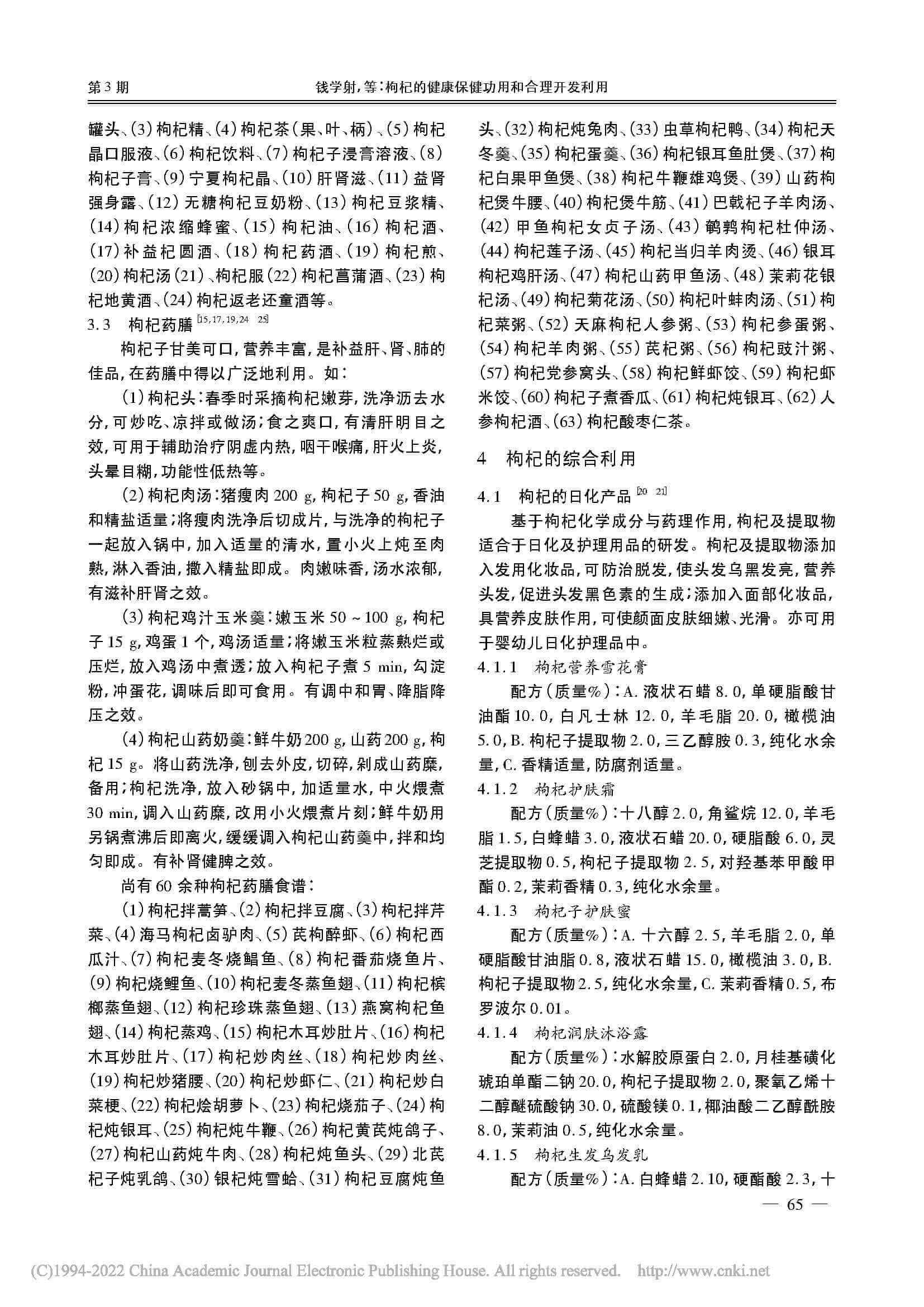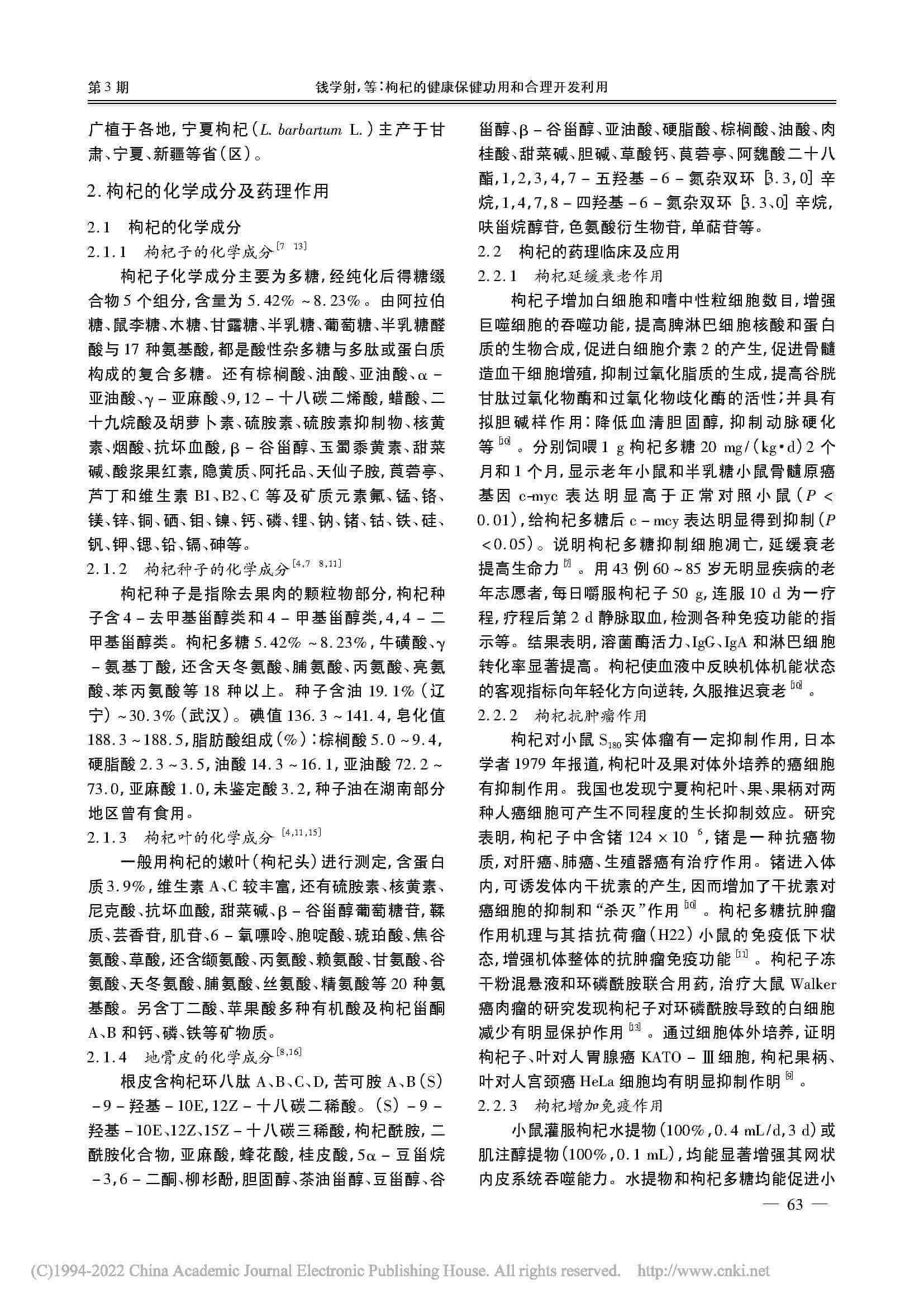 枸杞:枸杞是药食同源的营养保健型蔬菜和名贵中药,《本经》中记载:“枸杞,主五内邪气,热衷消渴,周痹风湿。久服,坚筋骨,轻身不老,耐寒暑”。 2002年2月28日卫生部发布《关于进一步规范保健食品原料管理的通知》(卫法监发〔2002〕51号),确定丁香等87种既是食品又是药品的物品名单,明确将枸杞子列入其中。