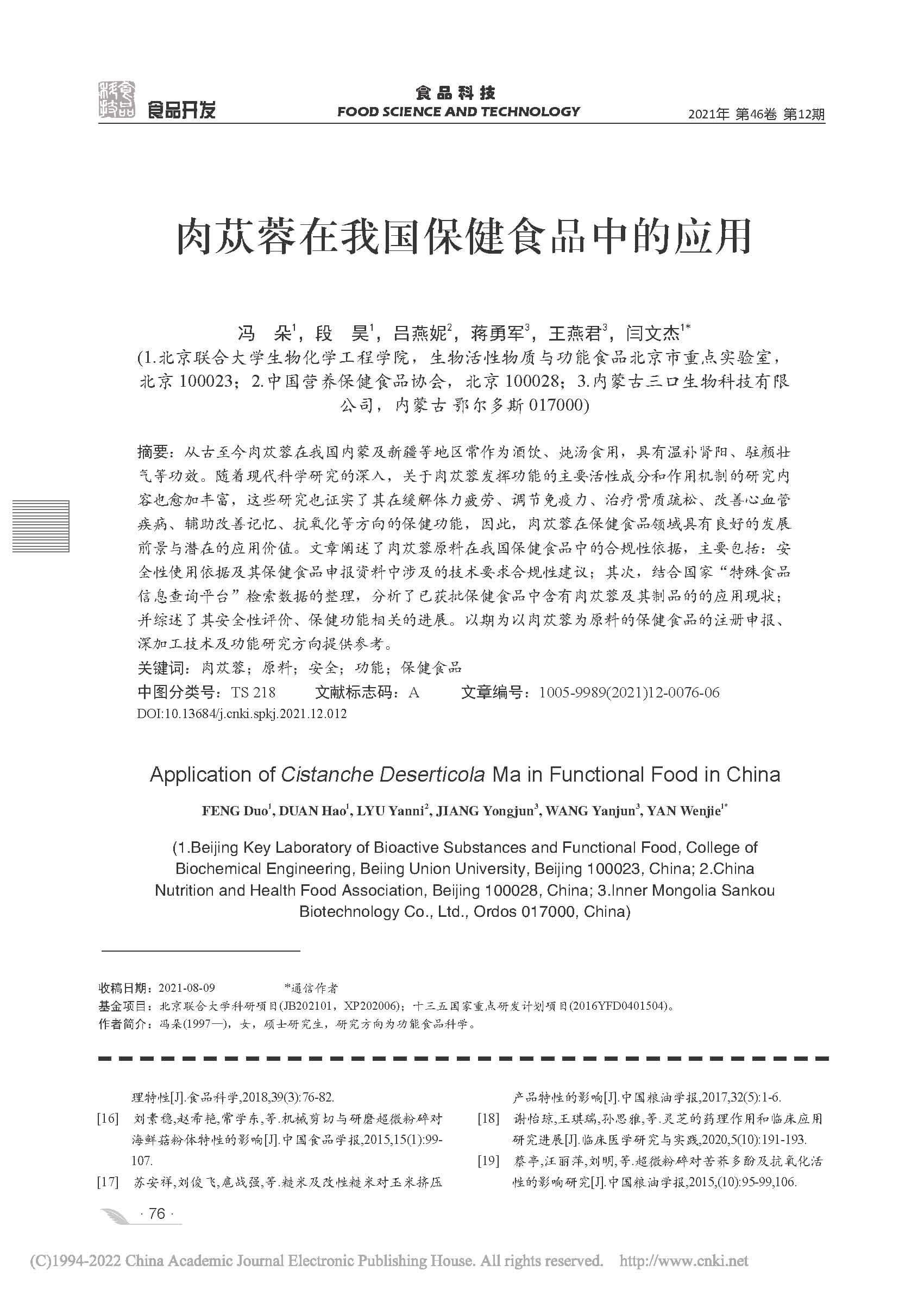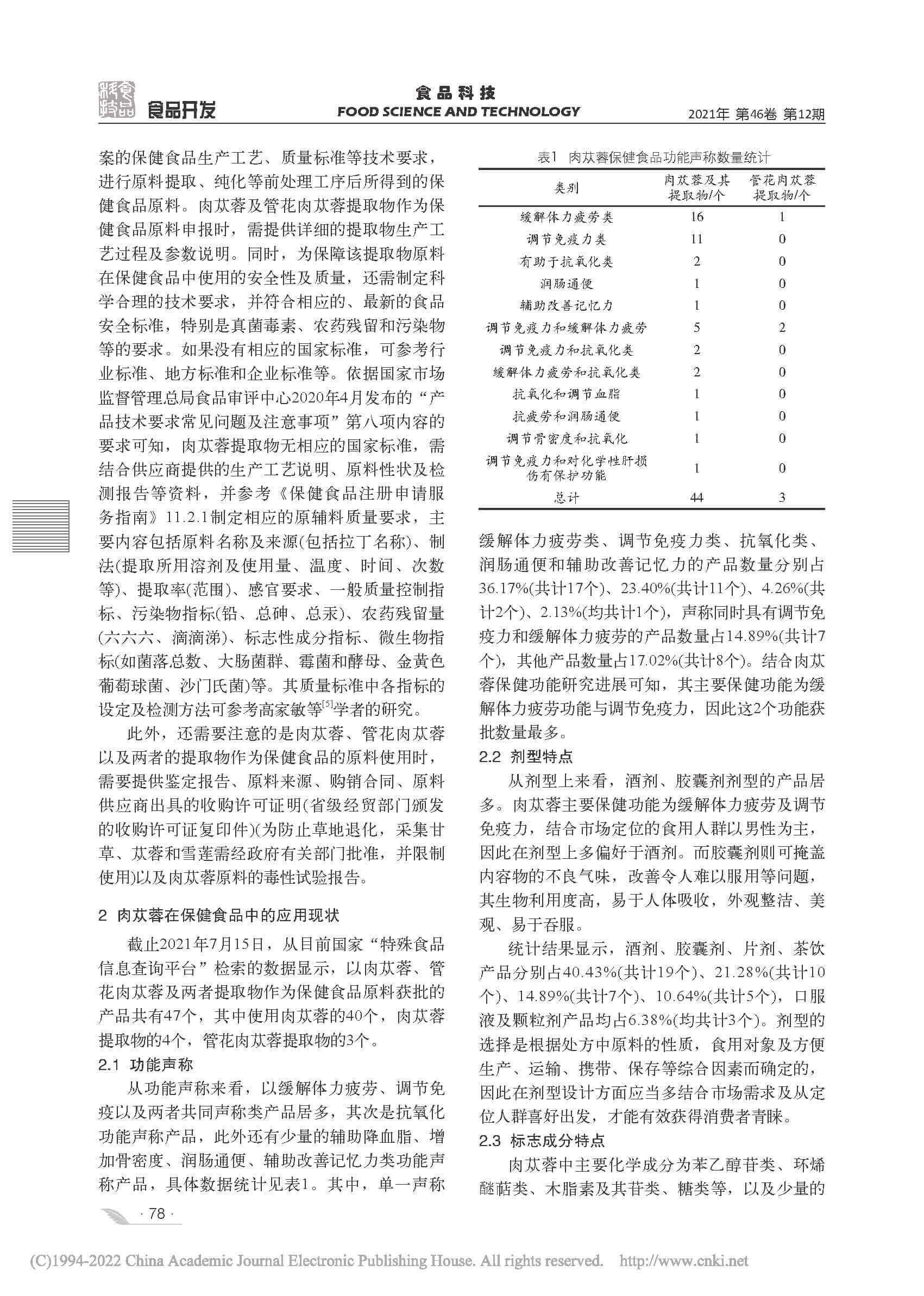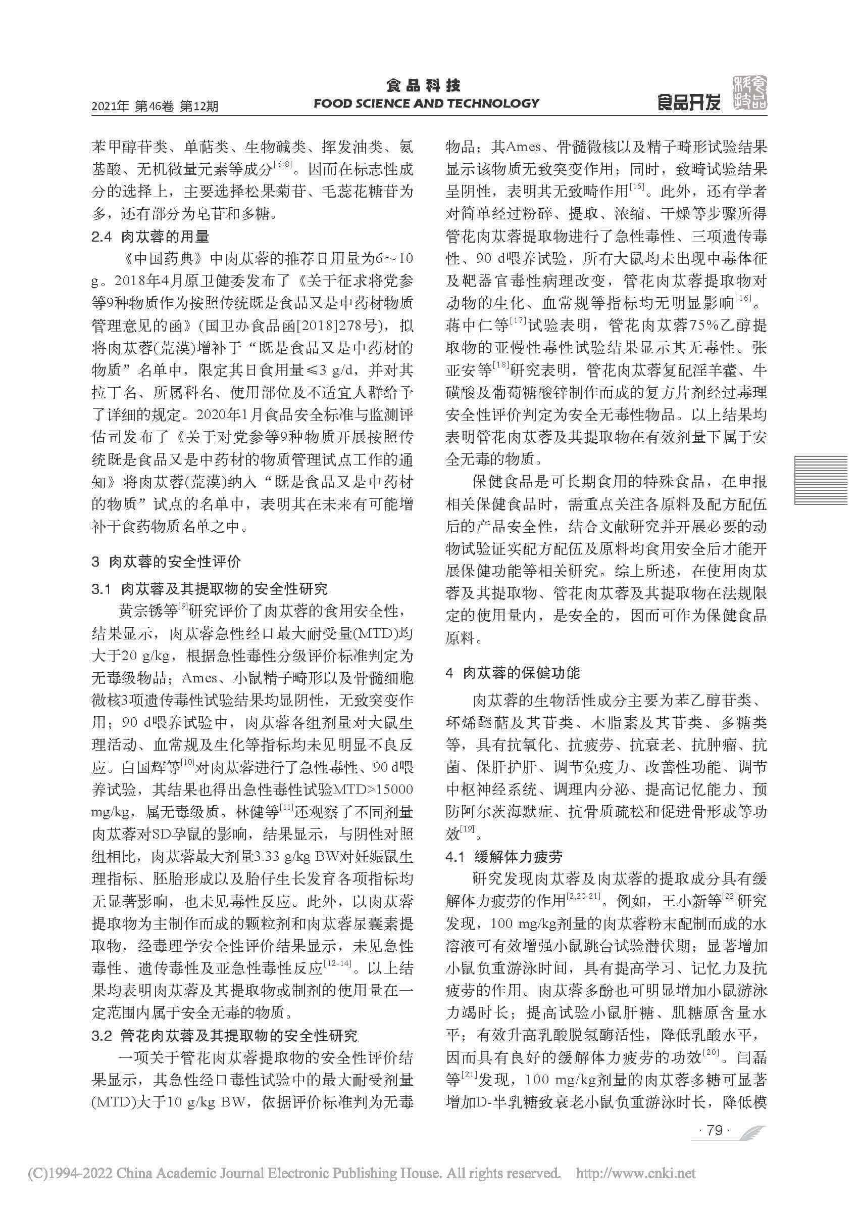 肉苁蓉:始载于《神农本草经》,《本草纲目》草部·肉苁蓉载明:气味甘、微温、无毒。主治劳伤,精败面黑。因是肉质植物,药性从容和缓,故名肉苁蓉。2023年11月9日,国家卫生健康委、国家市场监管总局发布根据《中华人民共和国食品安全法》及其实施条例、《按照传统既是食品又是中药材的物质目录管理规定》,经安全性评估及试点生产经营,现将党参、肉苁蓉(荒漠)、铁皮石斛、西洋参、黄芪、灵芝、山茱萸、天麻、杜仲叶等9种物质纳入按照传统既是食品又是中药材的物质目录。