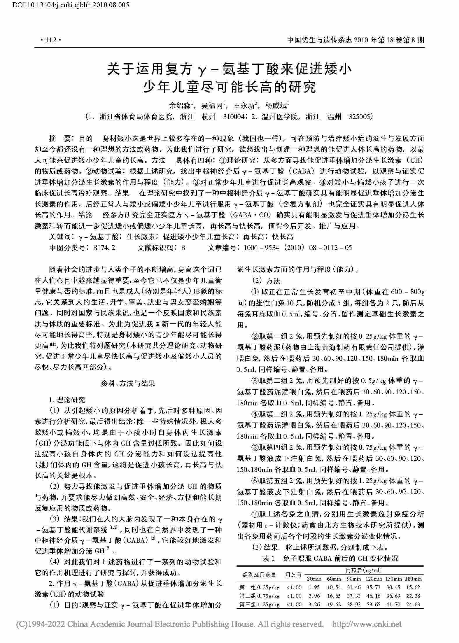 γ-氨基丁酸:它不仅是一种能口服、易吸收、易透过血脑屏障的脑代谢促进药,而更重要的它还是一种很重要的中枢神经抑制性递质,它在脑内含量很高,对脑内的GABA代谢具有很高的亲和力,它能激发与促进下丘脑弓状核与腹内侧核,增加分泌生长激素释放激素(GHRH),从而激发垂体增加分泌生长激素(GH)。再一方面,GABA 它还能激活脑内葡萄糖磷酸酯酶的代谢,促进乙酰胆碱的生物合成,同时乙酰胆碱也能抑制生长激素抑制素(SS)的分泌,从而与上述两方面(双向) 来影响与促进垂体增加分泌生长激素(GH)。国家卫生部于2009年9月27日第12号公告批准的γ-氨基丁酸为新资源食品。