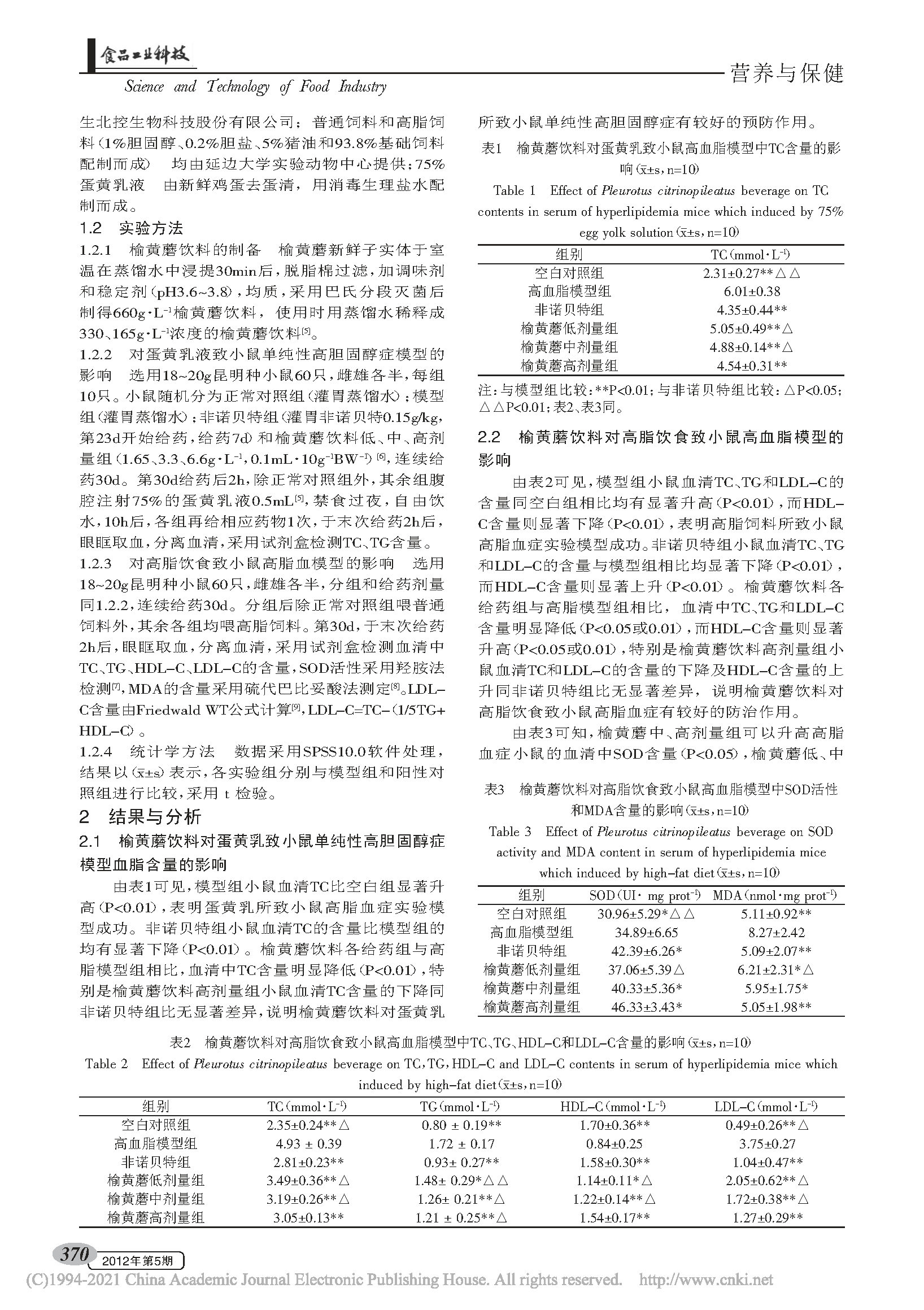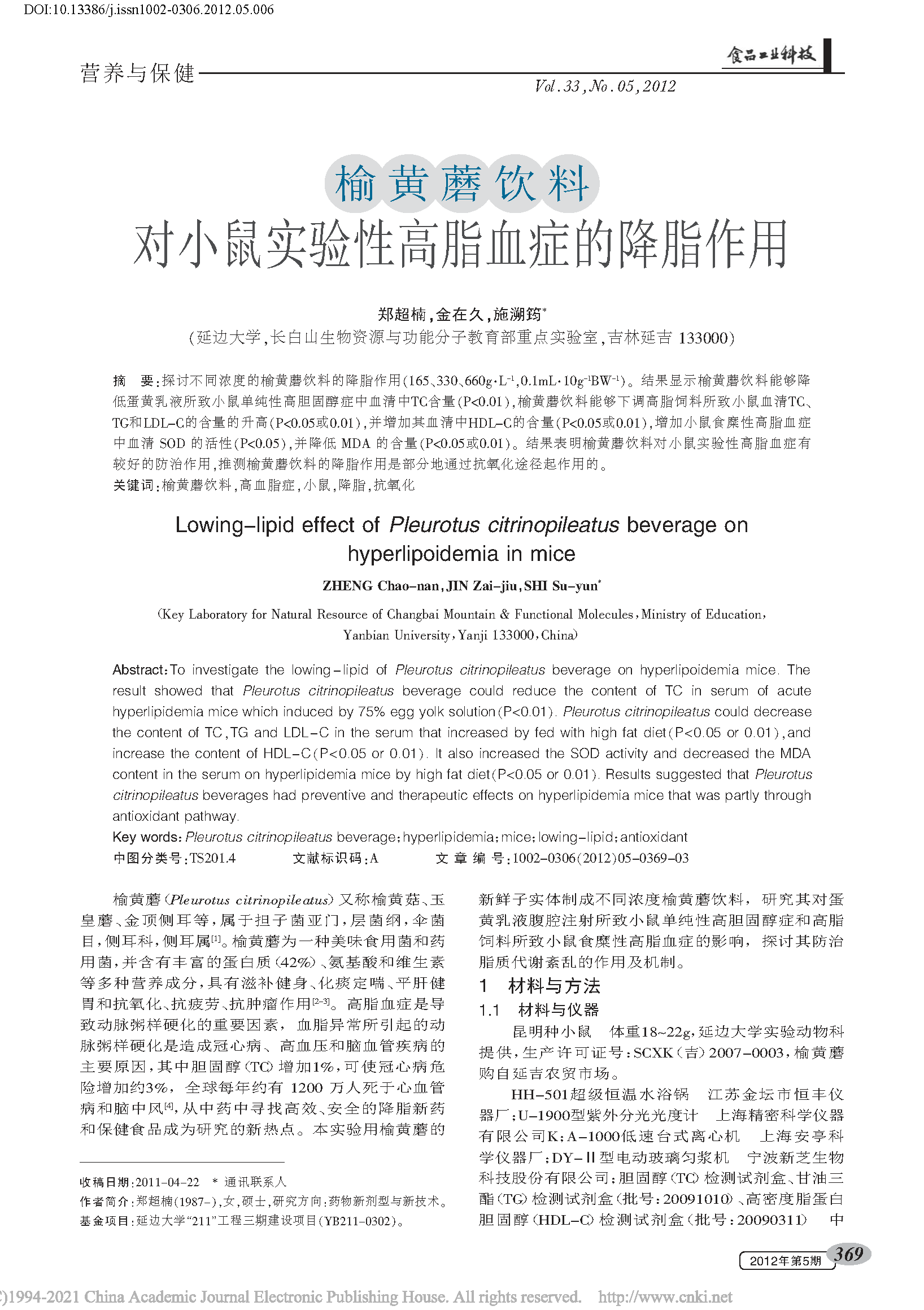 7、《榆黄蘑饮料对小鼠实验性高脂血症的降脂作用》