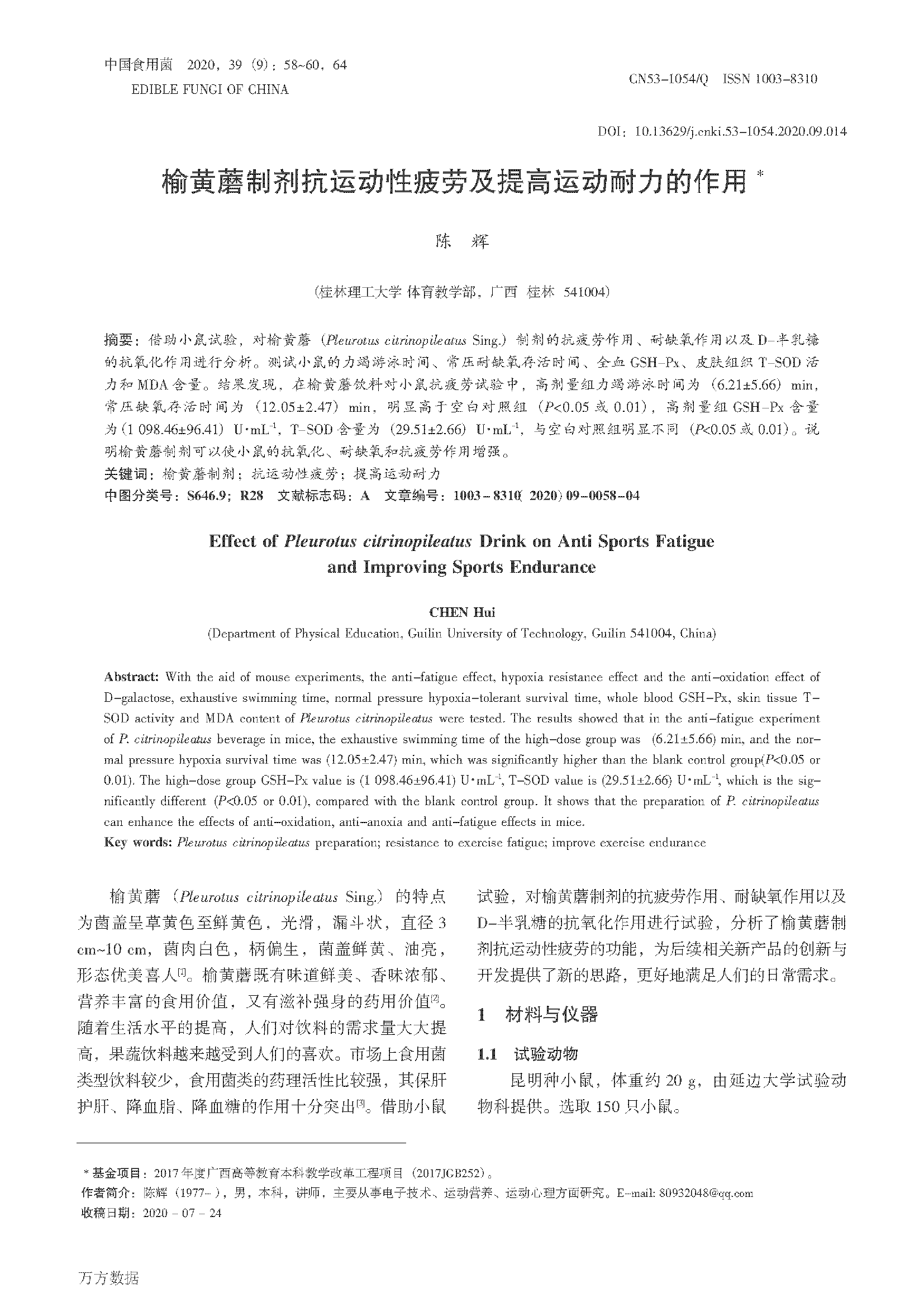 9、《榆黄蘑制剂抗运动性疲劳及提高运动耐力的作用》
