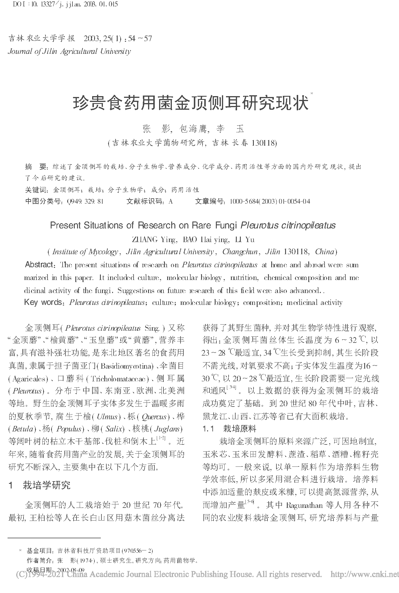 10、《珍贵食药用菌金顶侧耳研究现状》