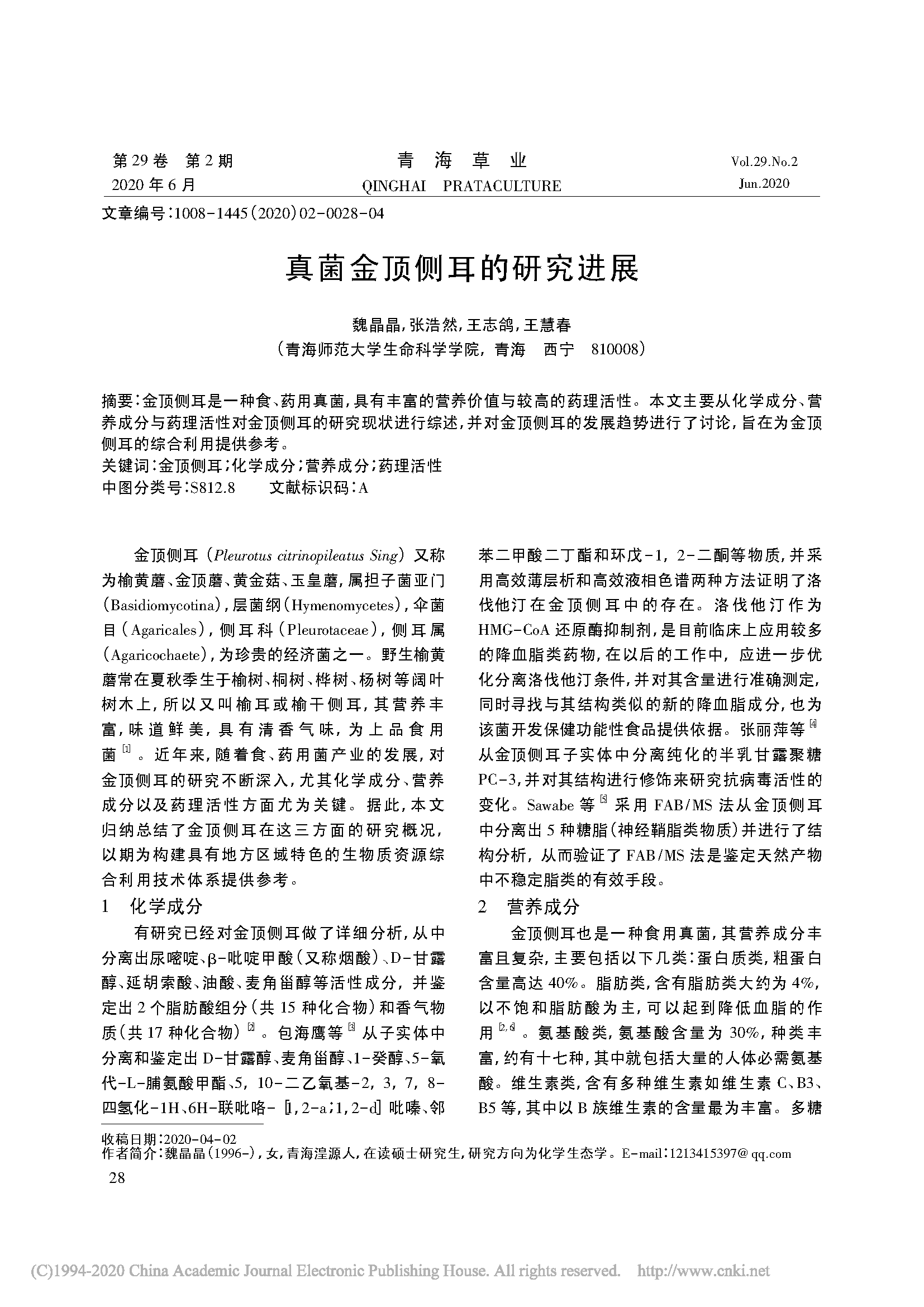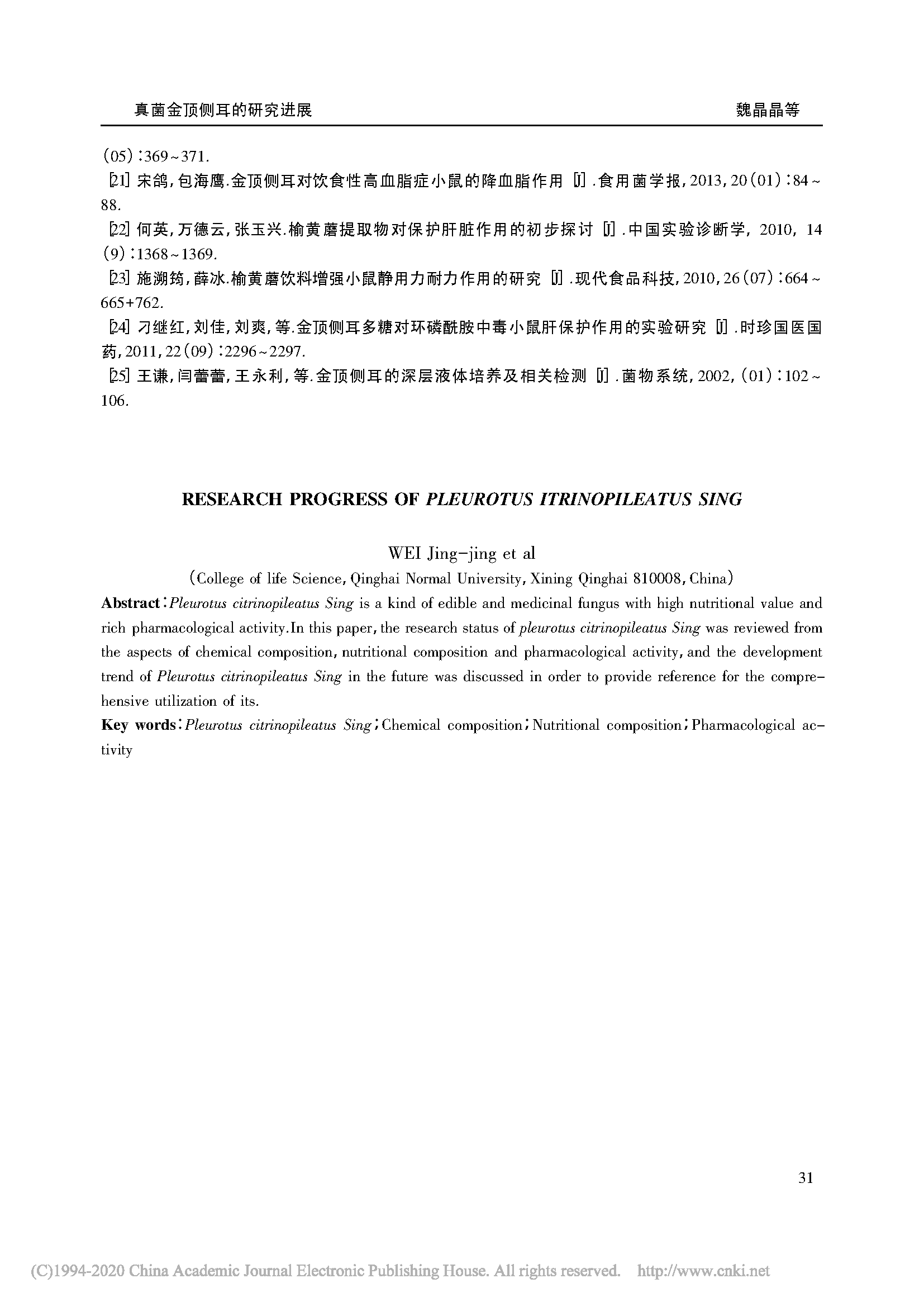 4、《榆黄蘑(Pleurotuscitrinopileatus)成分和药用活性的研究》