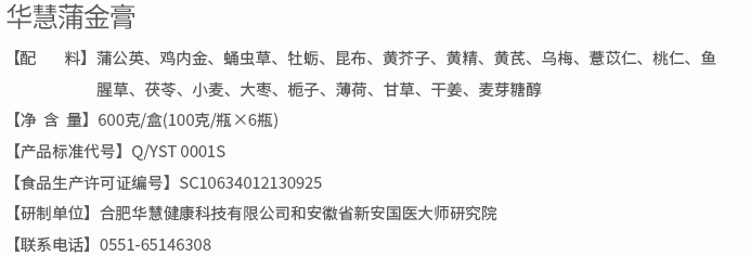 华慧蒲金膏的成分介绍