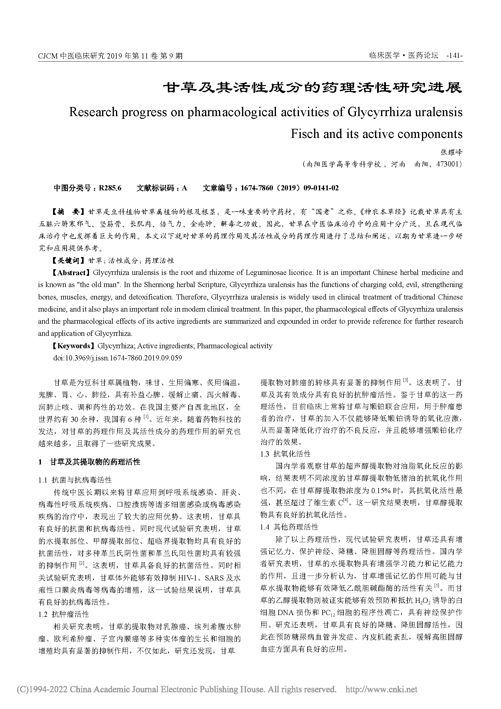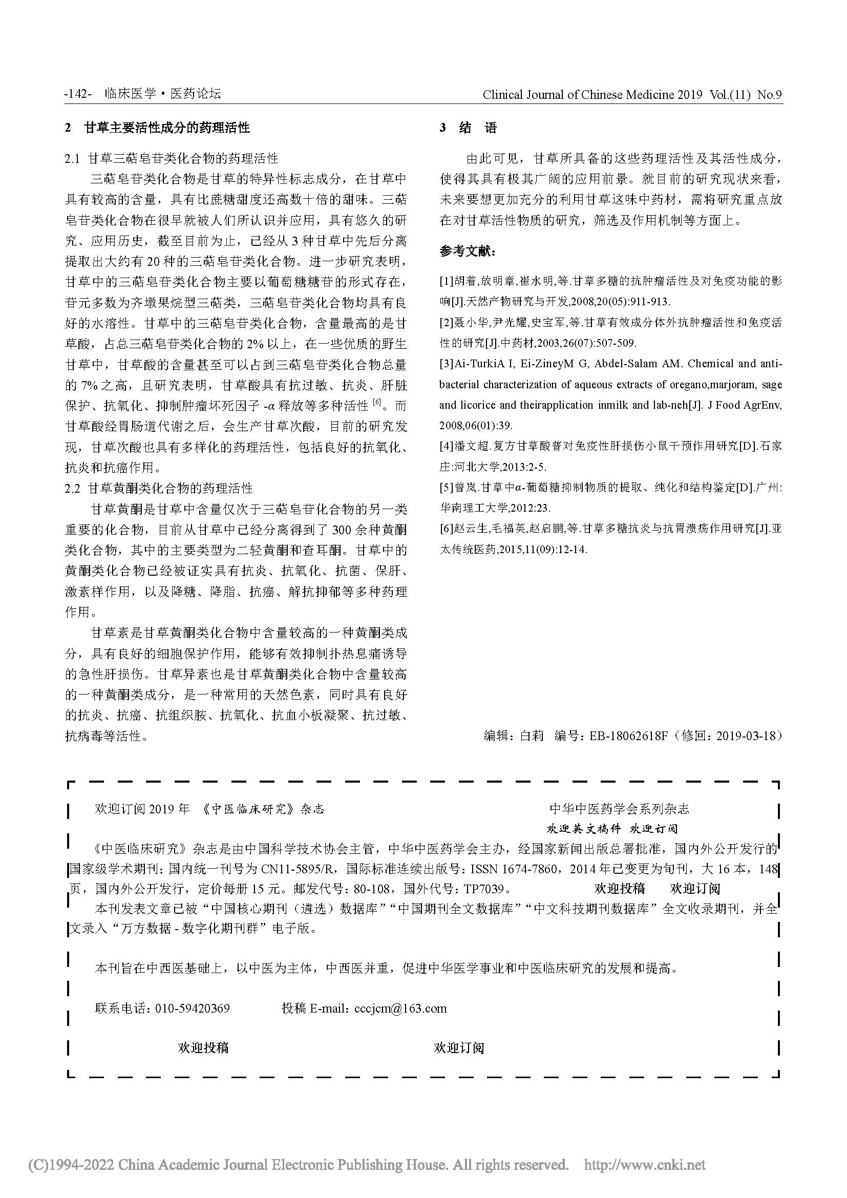 甘草(Glycyrrhiza uralensis Fisch.),是豆科甘草属的多年生草本植物,别名乌拉尔甘草、甜根子、甜草、国老等。甘草于2021年被《国家重点保护野生植物名录》列为国家二级保护植物。甘草的根及根状茎供药用,味甘、性平,作为主药能益气补中、缓急止痛、润肺止咳、泻火解毒;作为调和剂能调和诸药,缓解其他药材的烈性和毒性,减轻药剂的苦味、辣味。002年2月28日卫生部发布《关于进一步规范保健食品原料管理的通知》(卫法监发〔2002〕51号),确定甘草列入既是食品又是药品的物品名单。