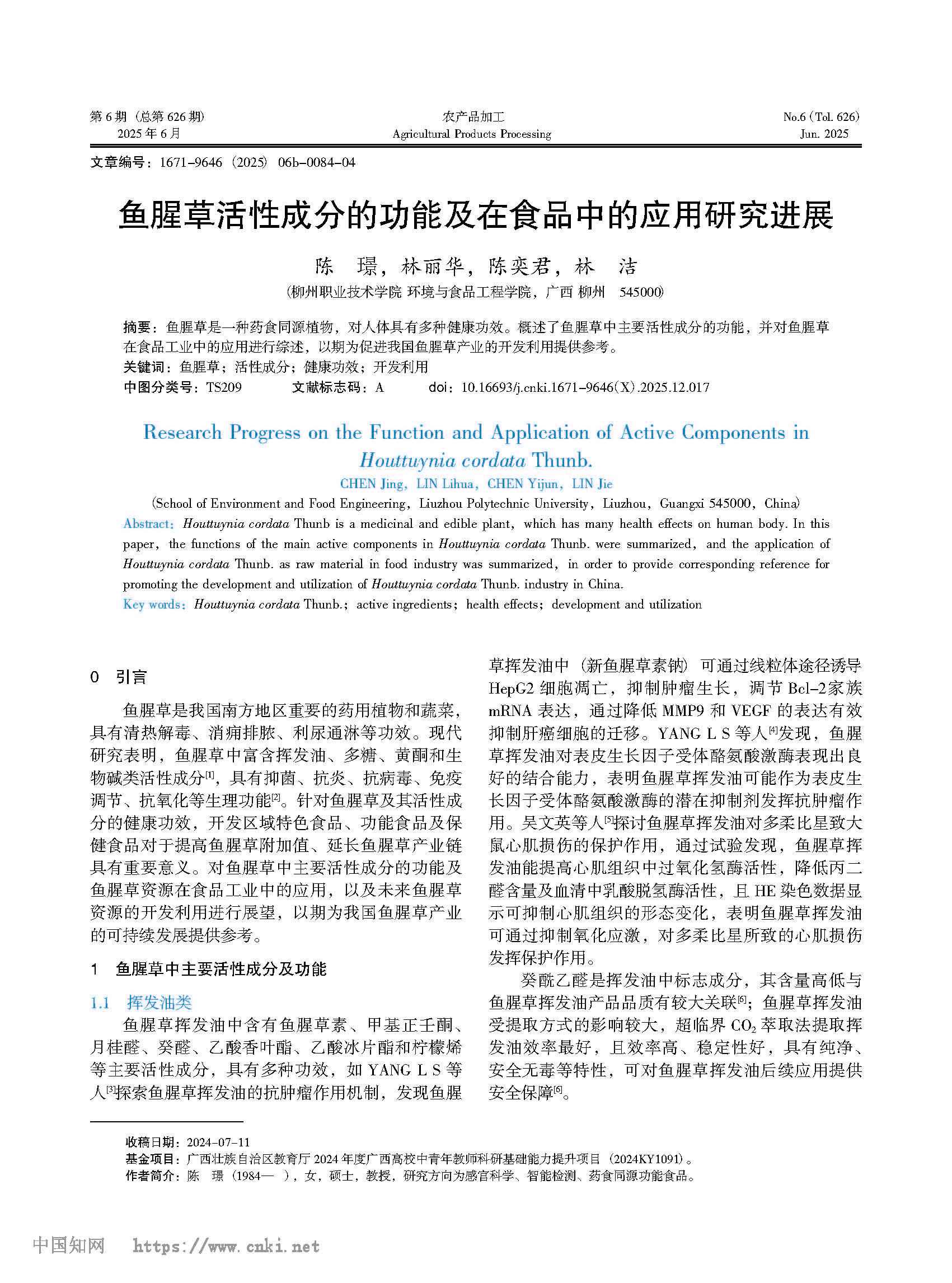 鱼腥草(学名:Houttuynia cordata Thunb.),又名折耳根、蕺菜,是三白草科蕺菜属多年生草本植物。全株具特殊鱼腥气味。其干燥地上部分入药,味辛性寒,具清热解毒、利尿通淋功效,临床用于肺痈吐脓、热淋等症。现代研究表明其含挥发油、黄酮类等成分,具有抗菌、抗病毒及增强免疫作用。2002年2月28日卫生部发布《关于进一步规范保健食品原料管理的通知》(卫法监发〔2002〕51号),确定鱼腥草列入既是食品又是药品的物品名单。