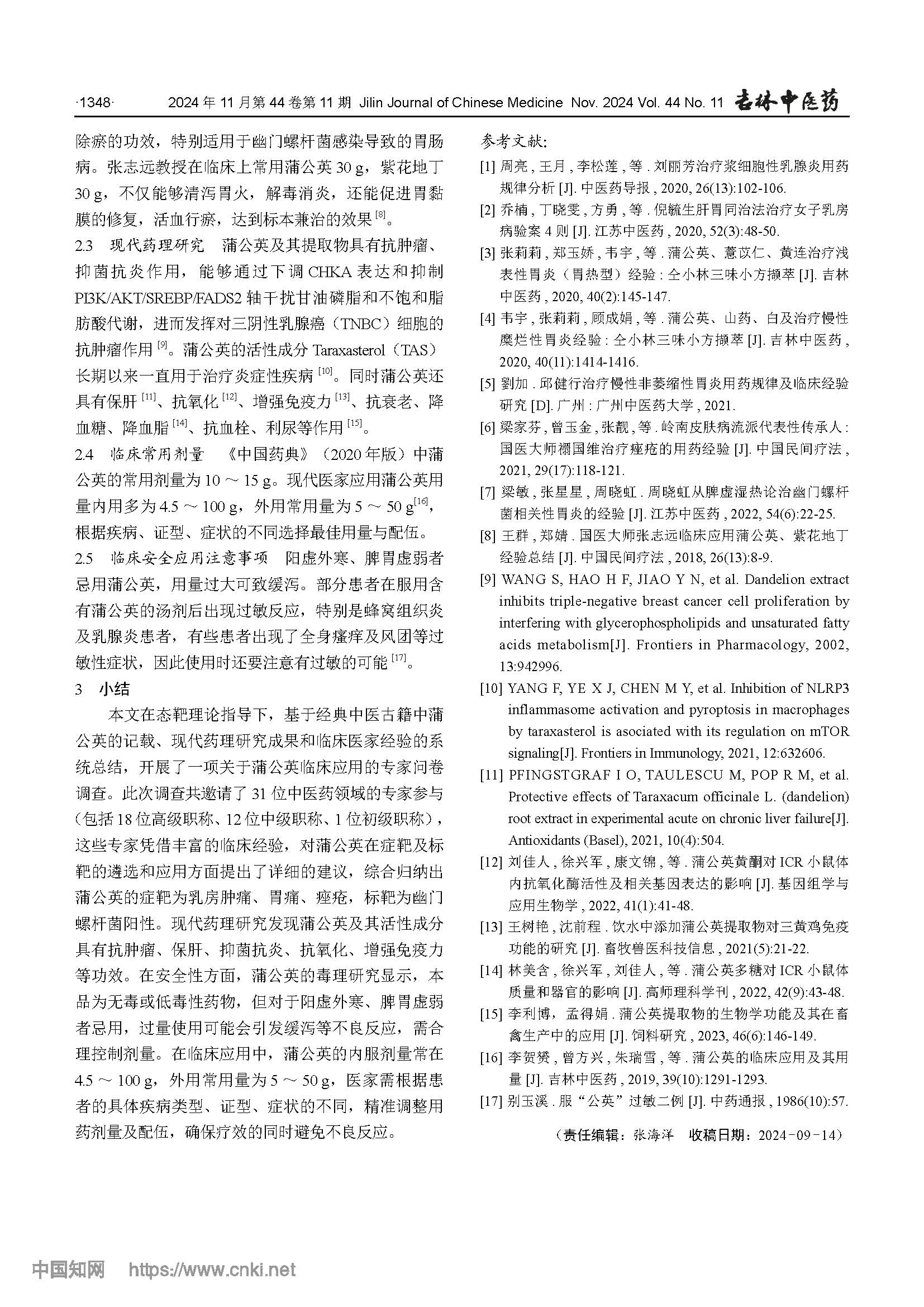 蒲公英(学名:Taraxacum mongolicum Hand.-Mazz.),为菊科蒲公英属下一种多年生草本植物,别名蒙古蒲公英、黄花地丁、婆婆丁、灯笼草等。蒲公英是中国传统的药食两用植物。该植物最早载于隋唐时期的《新修本草》中。宋代时期则被记载于《本草图经》《证类本草》等典籍中。其干燥全草可入药,具有清热解毒,消肿散结,利尿通淋的功效。同时,蒲公英营养丰富,富含多种维生素、矿物质、多糖等活性成分。2002年2月28日卫生部发布《关于进一步规范保健食品原料管理的通知》(卫法监发〔2002〕51号),确定蒲公英列入既是食品又是药品的物品名单。