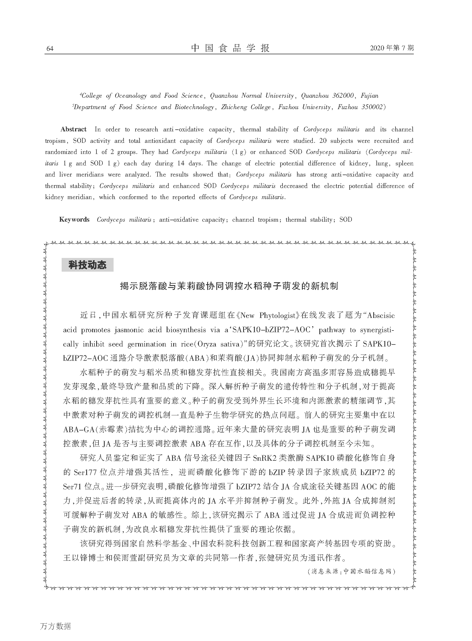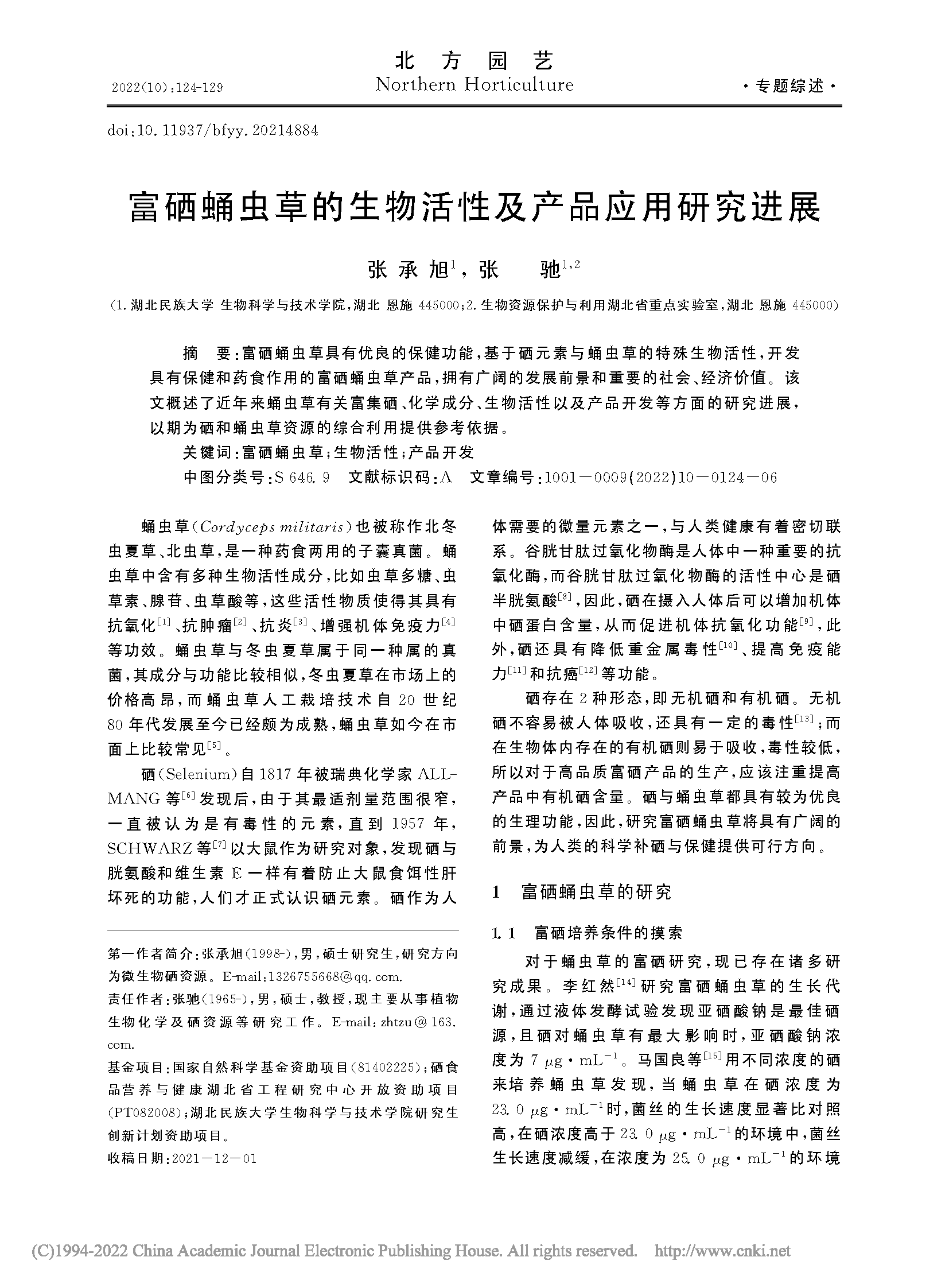 1、《富硒蛹虫草的生物活性及产品应用研究进展》