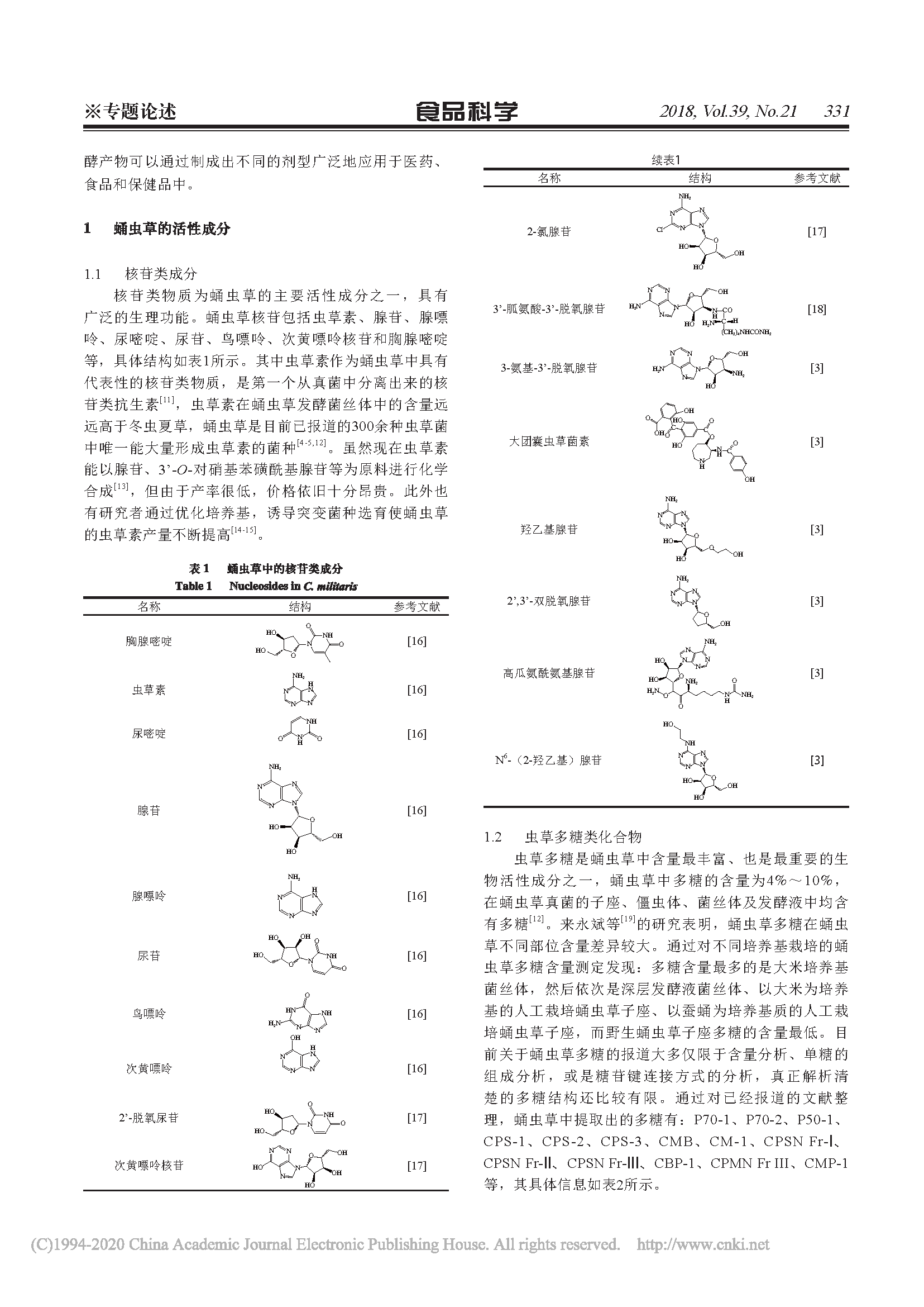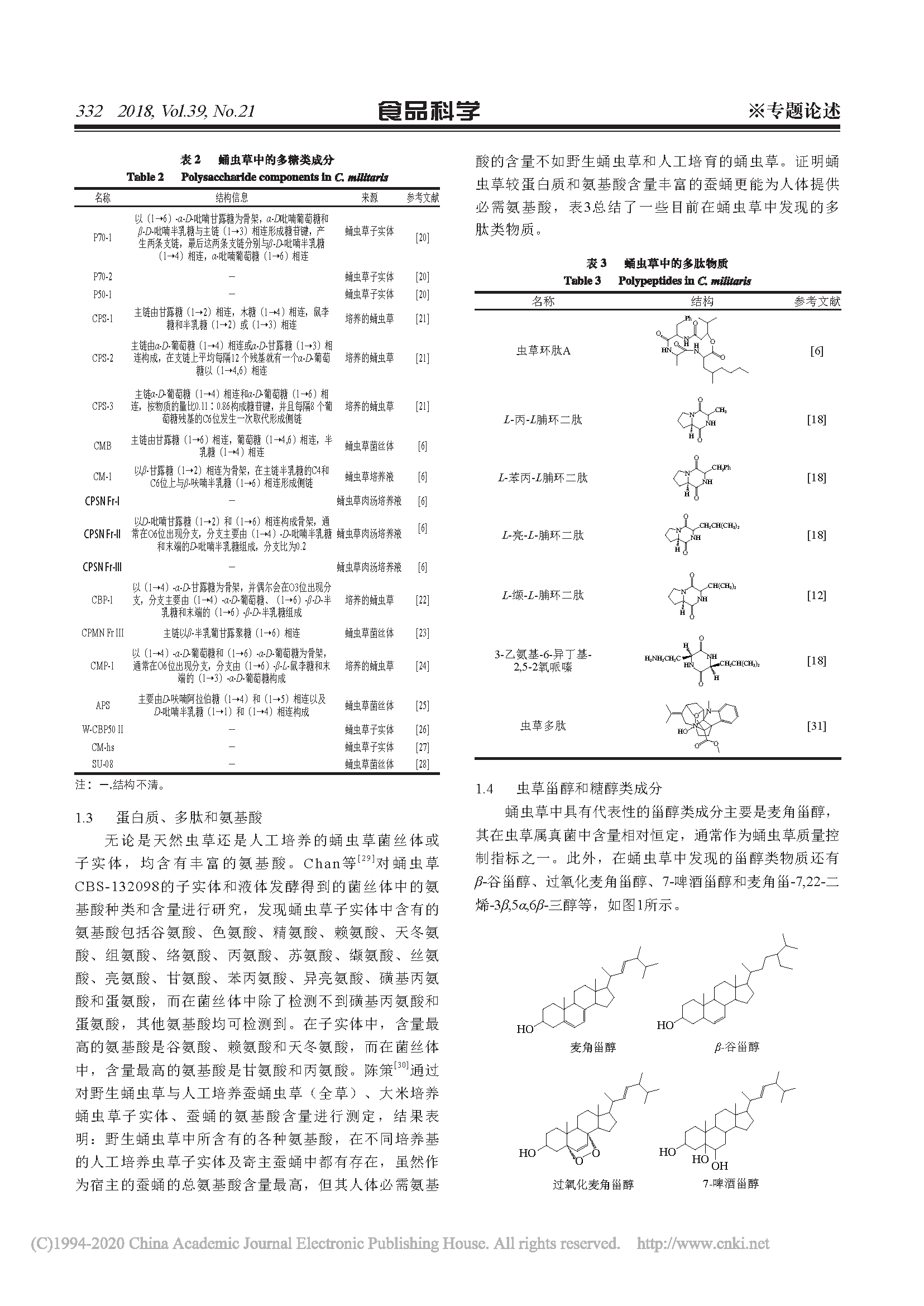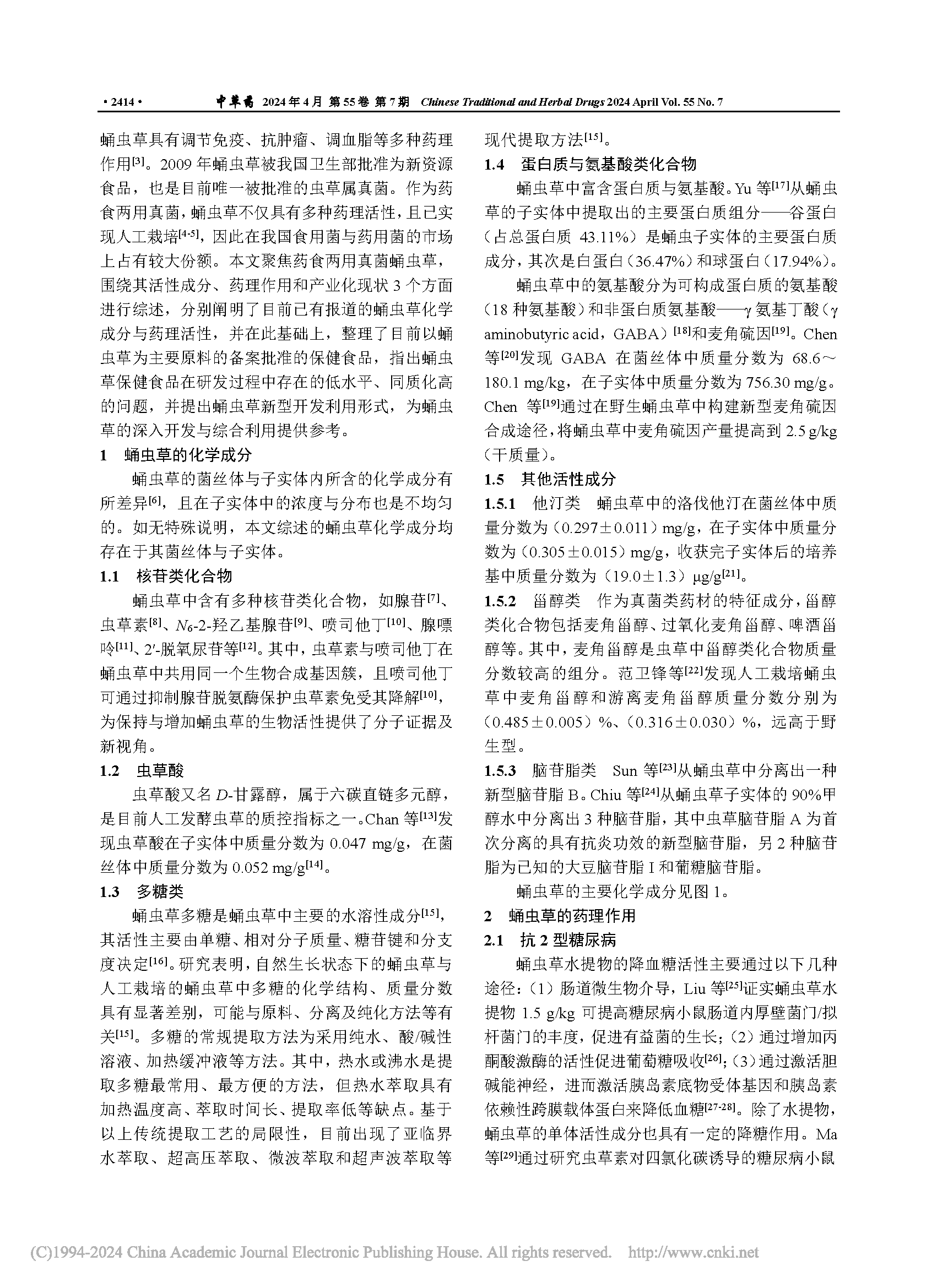 2、《蛹虫草的化学成分、药理作用及产业化研究进展》