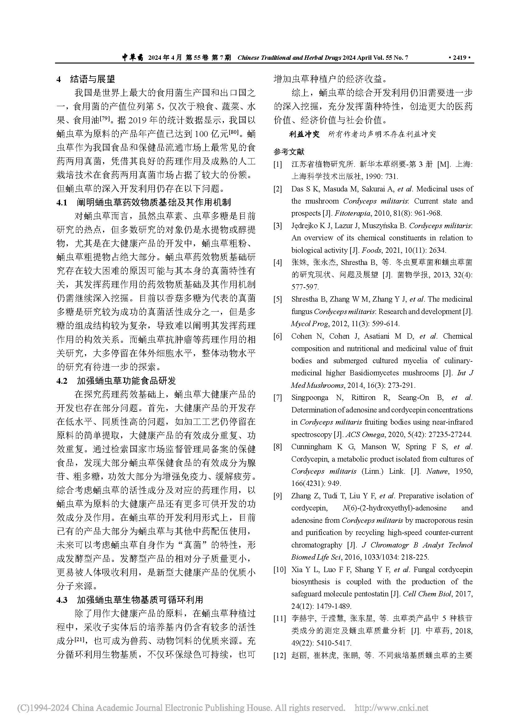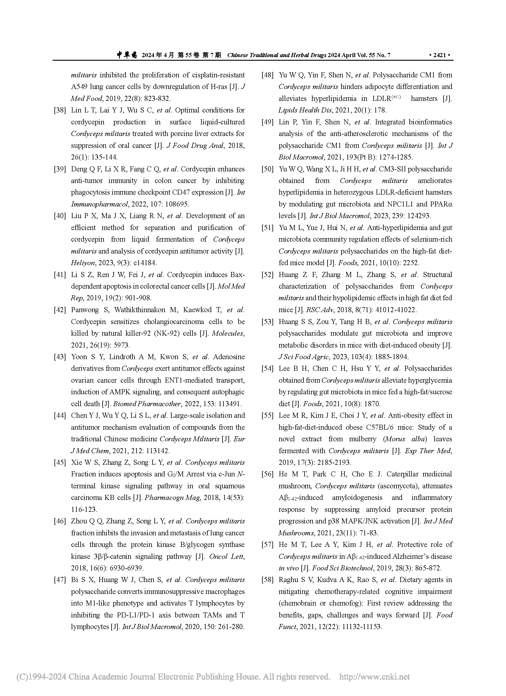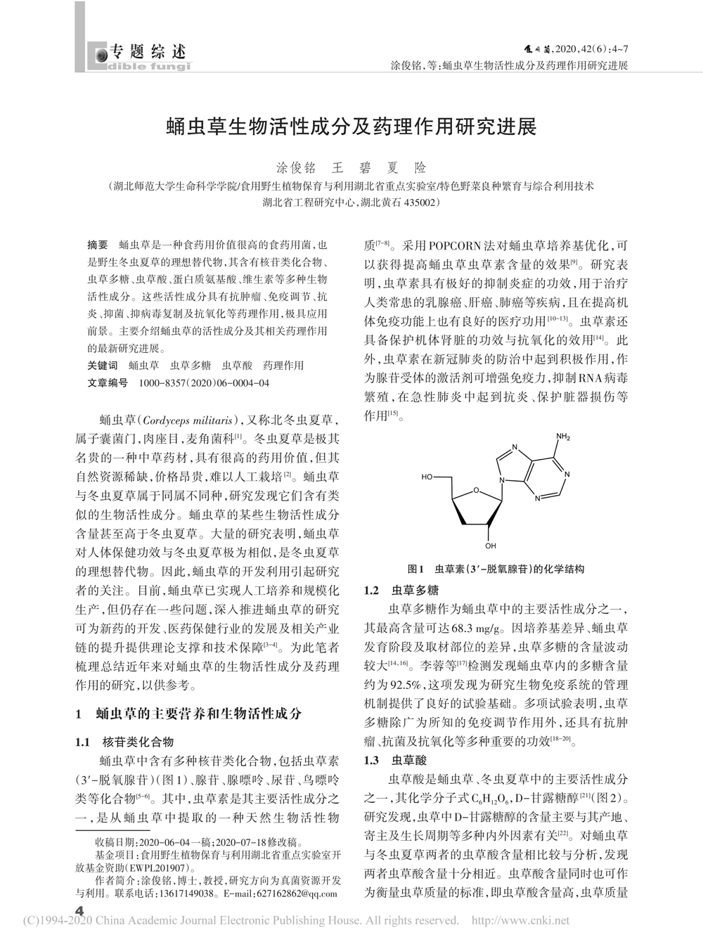 2、《蛹虫草的化学成分、药理作用及产业化研究进展》