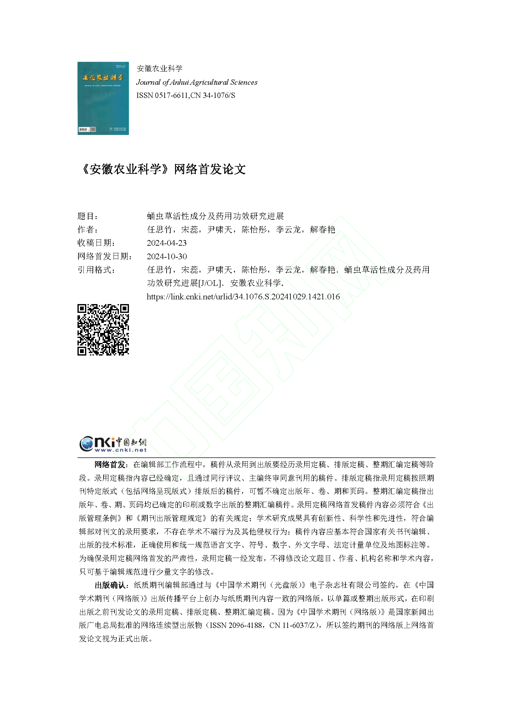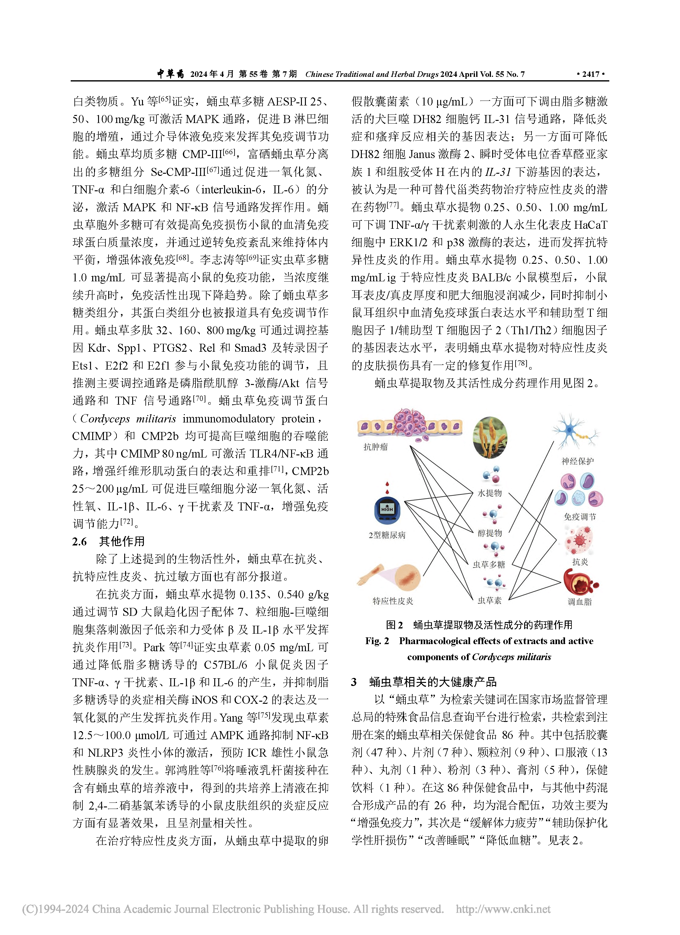 3、《蛹虫草的活性成分和药理作用及其应用研究进展》