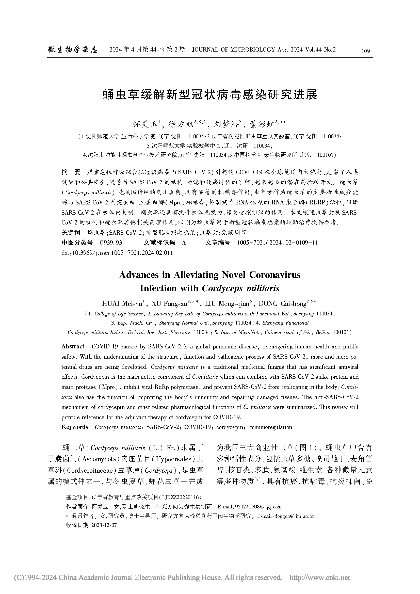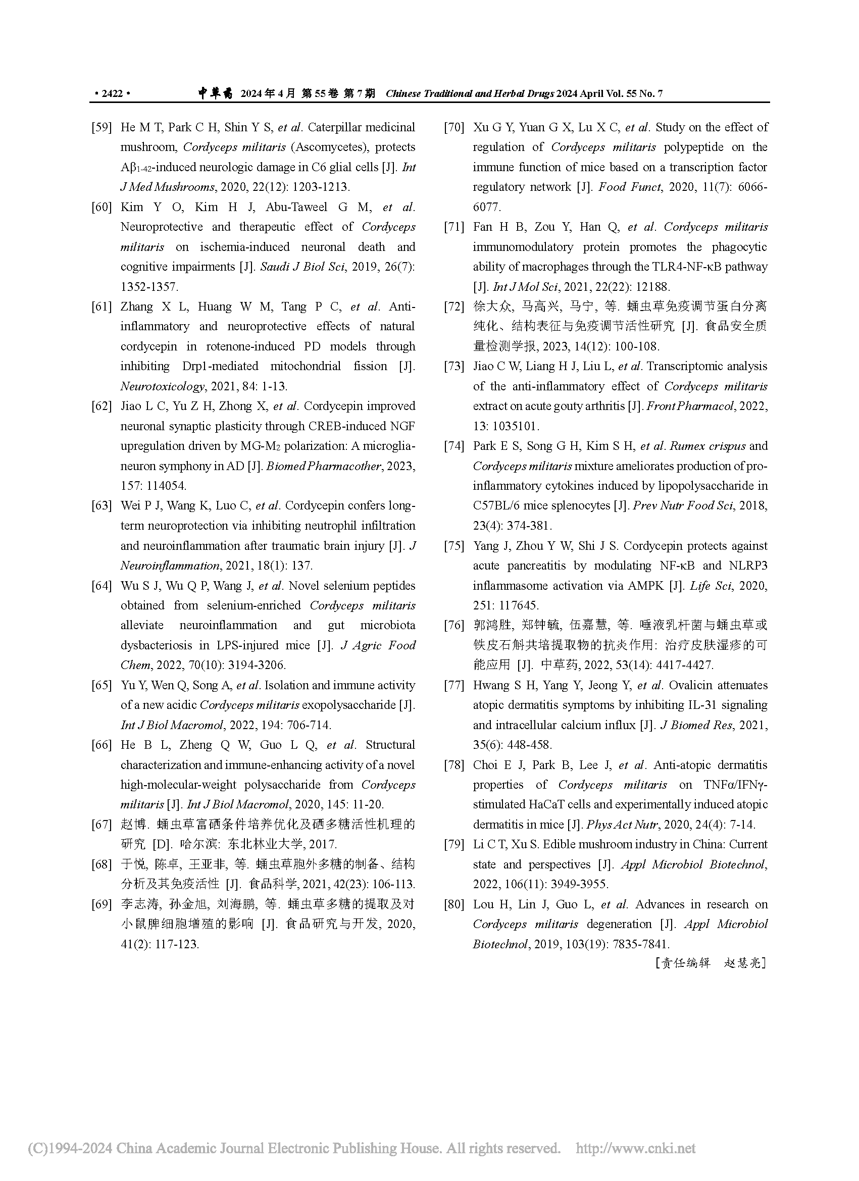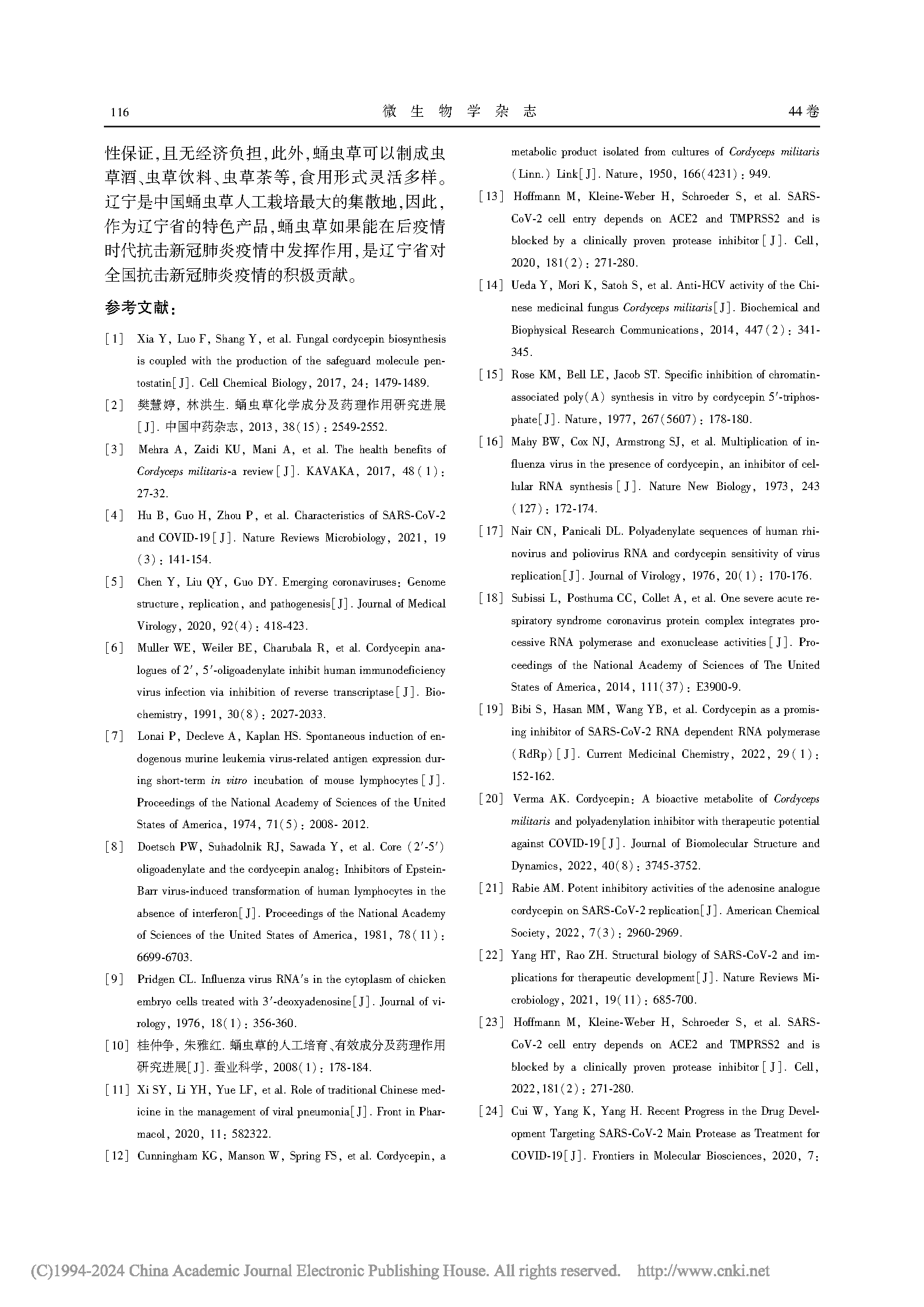 7、《蛹虫草缓解新型冠状病毒感染研究进展》