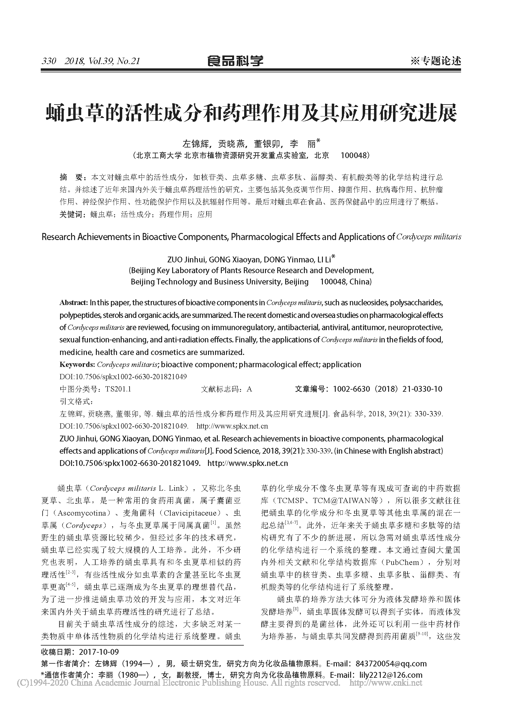 11、《蛹虫草生物活性成分及药理作用研究进展》