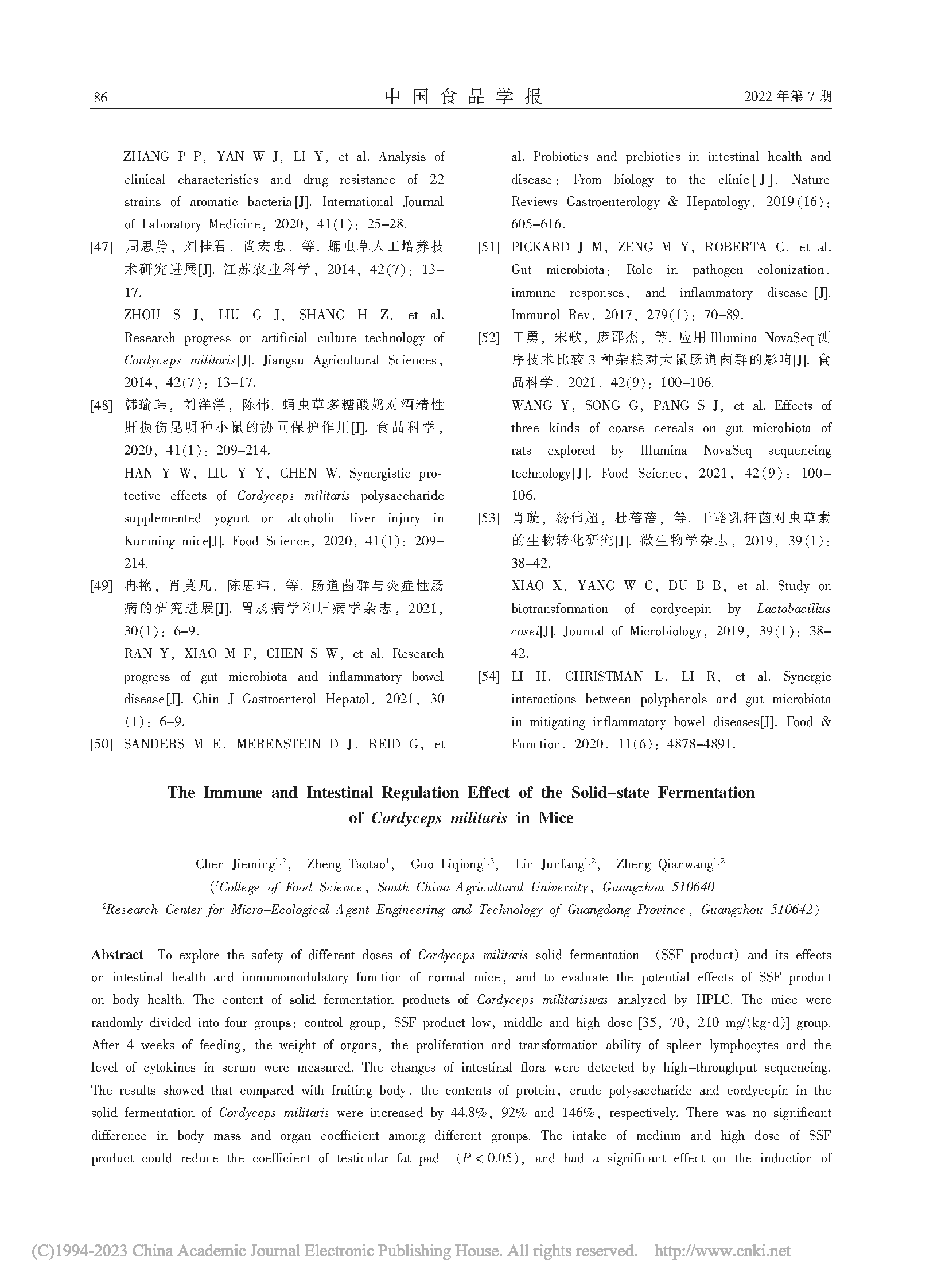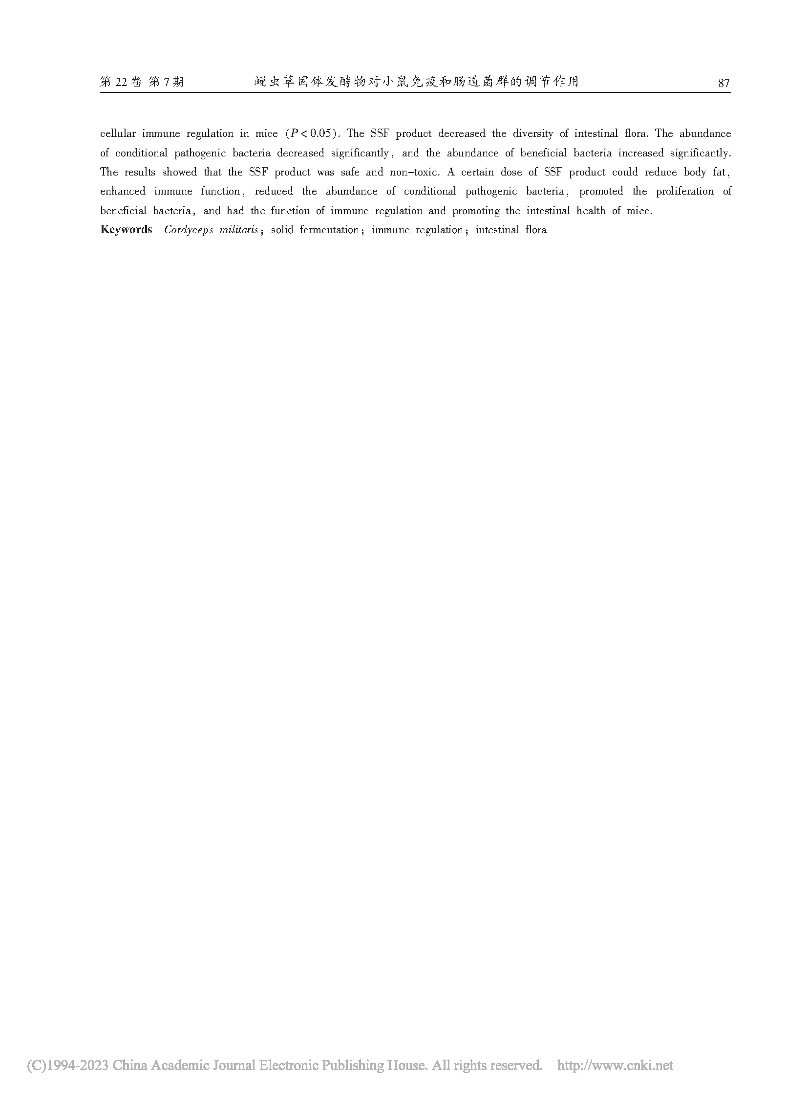 6、《蛹虫草固体发酵物对小鼠免疫和肠道菌群的调节作用》