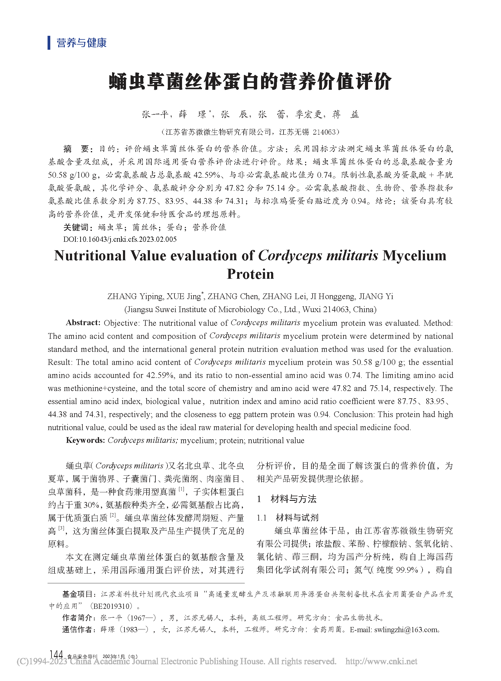 9、《蛹虫草菌丝体蛋白的营养价值评价》