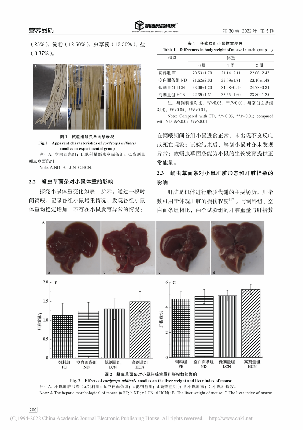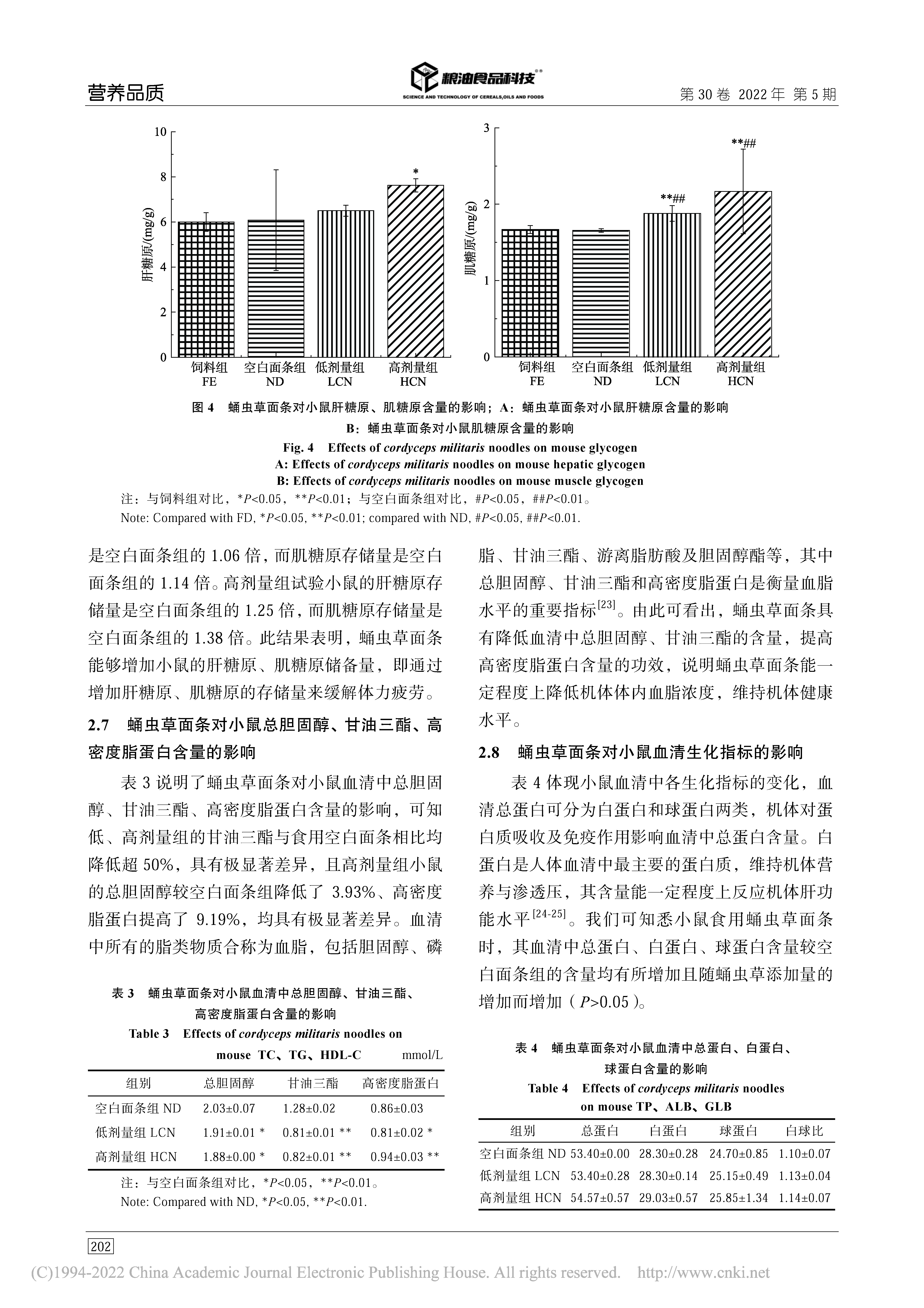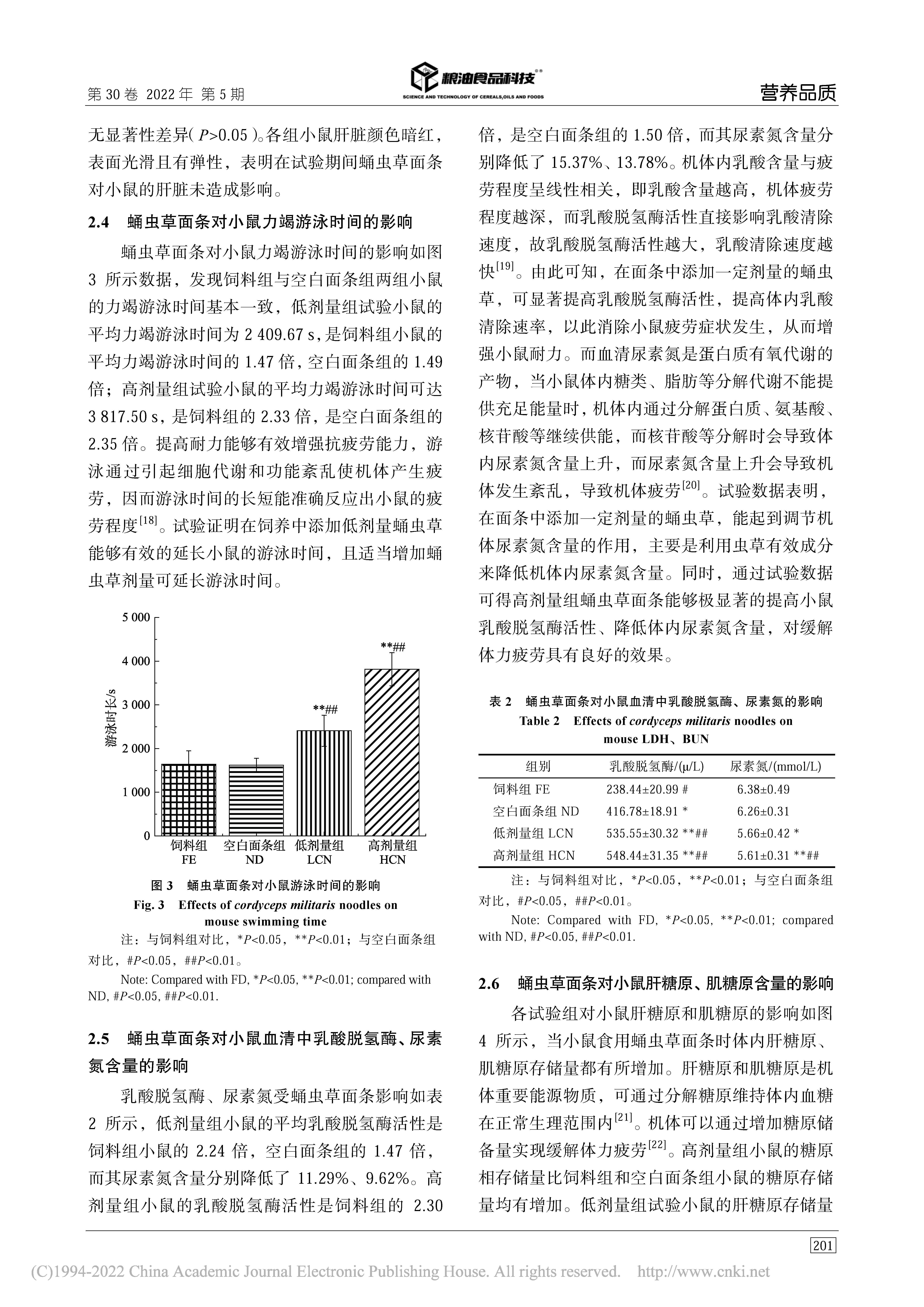 10、《蛹虫草面条缓解小鼠体力疲劳及对血脂浓度影响的研究》