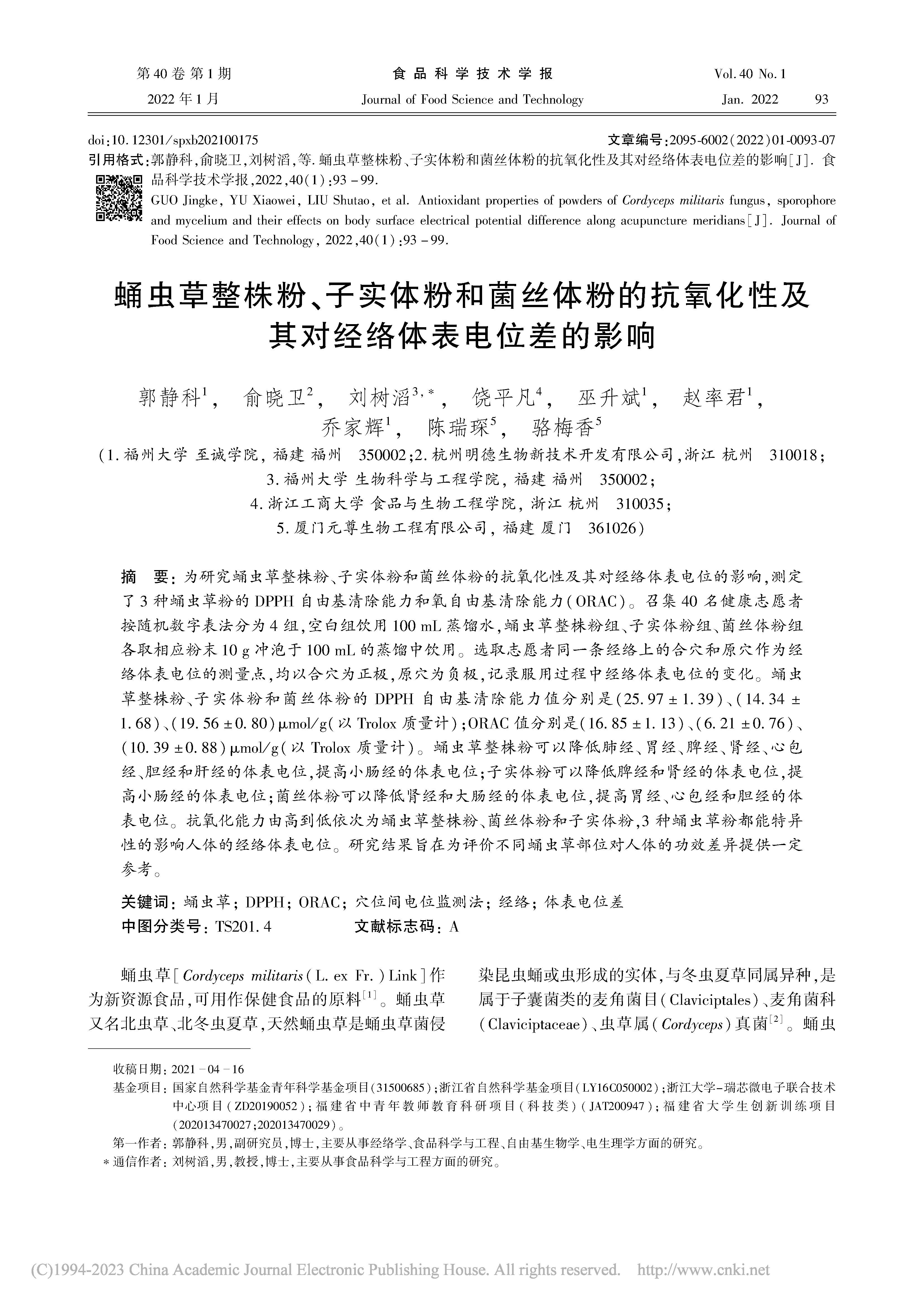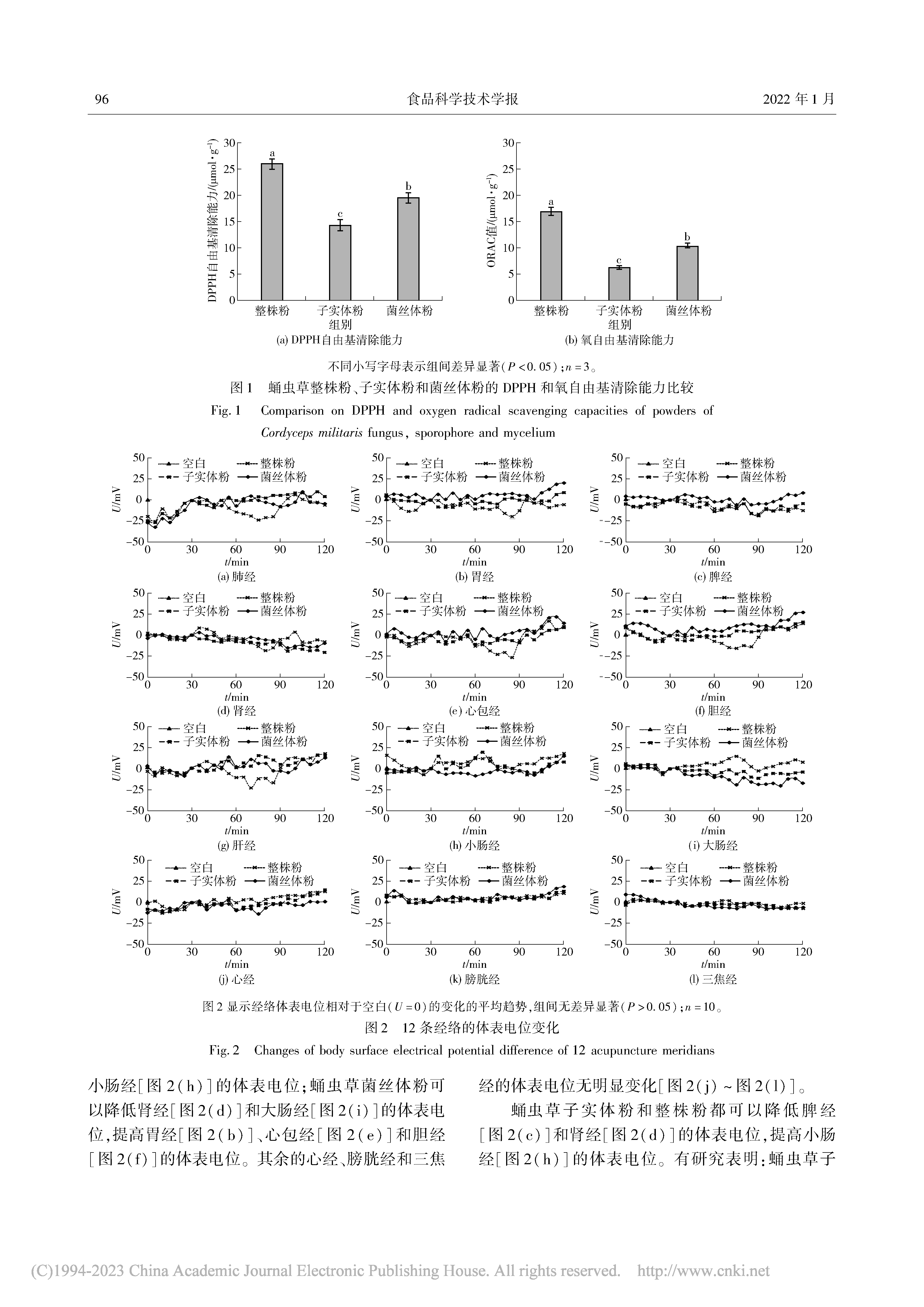 12、《蛹虫草整株粉、子实体粉和菌...及其对经络体表电位差的影响》