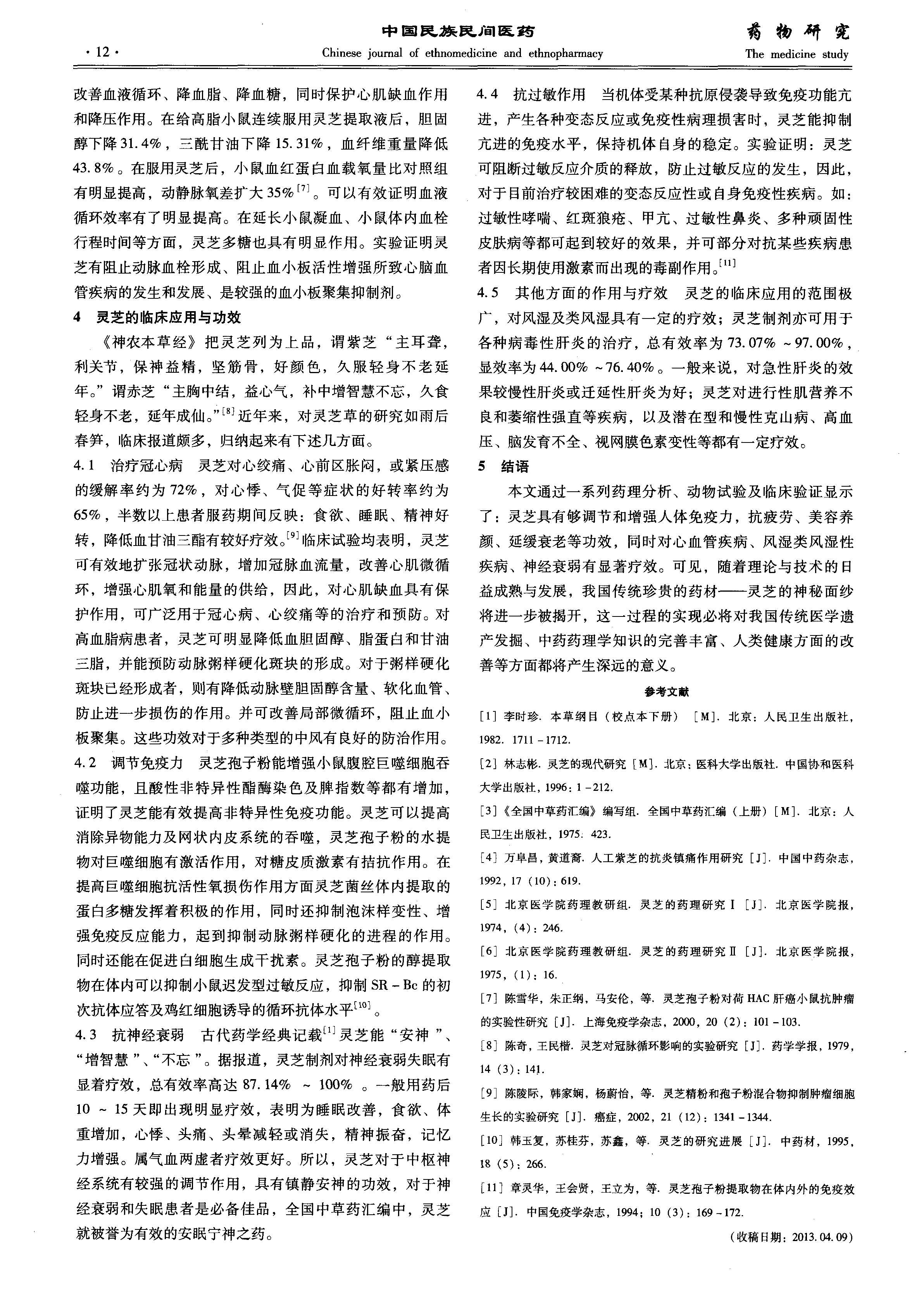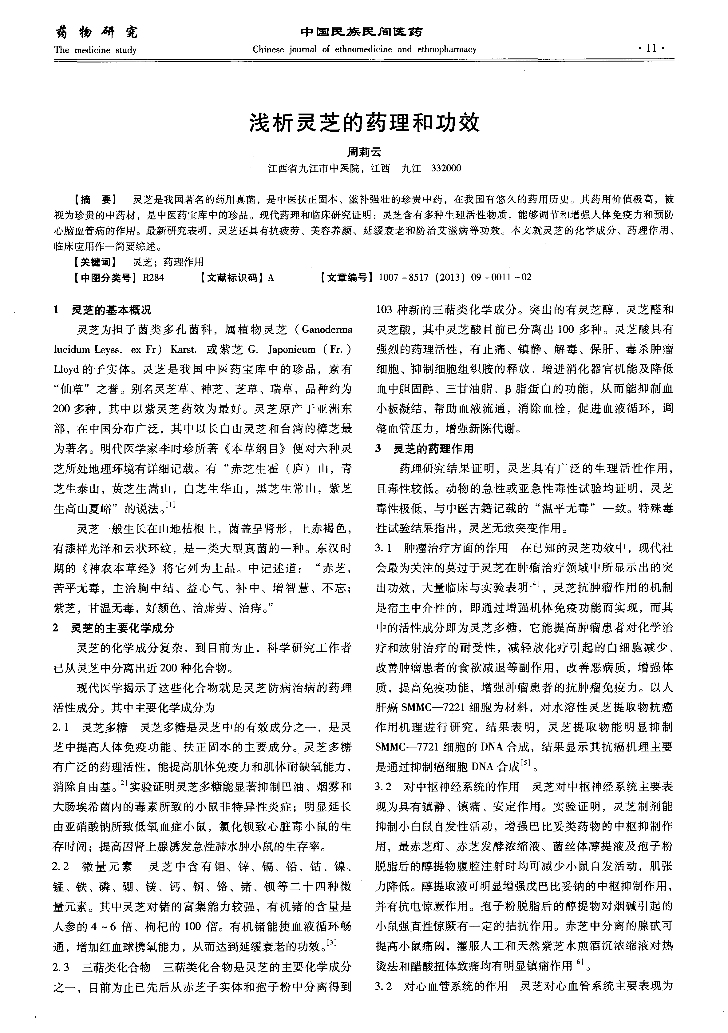 1、《中国民族民间医药-浅析灵芝的药理和功效》