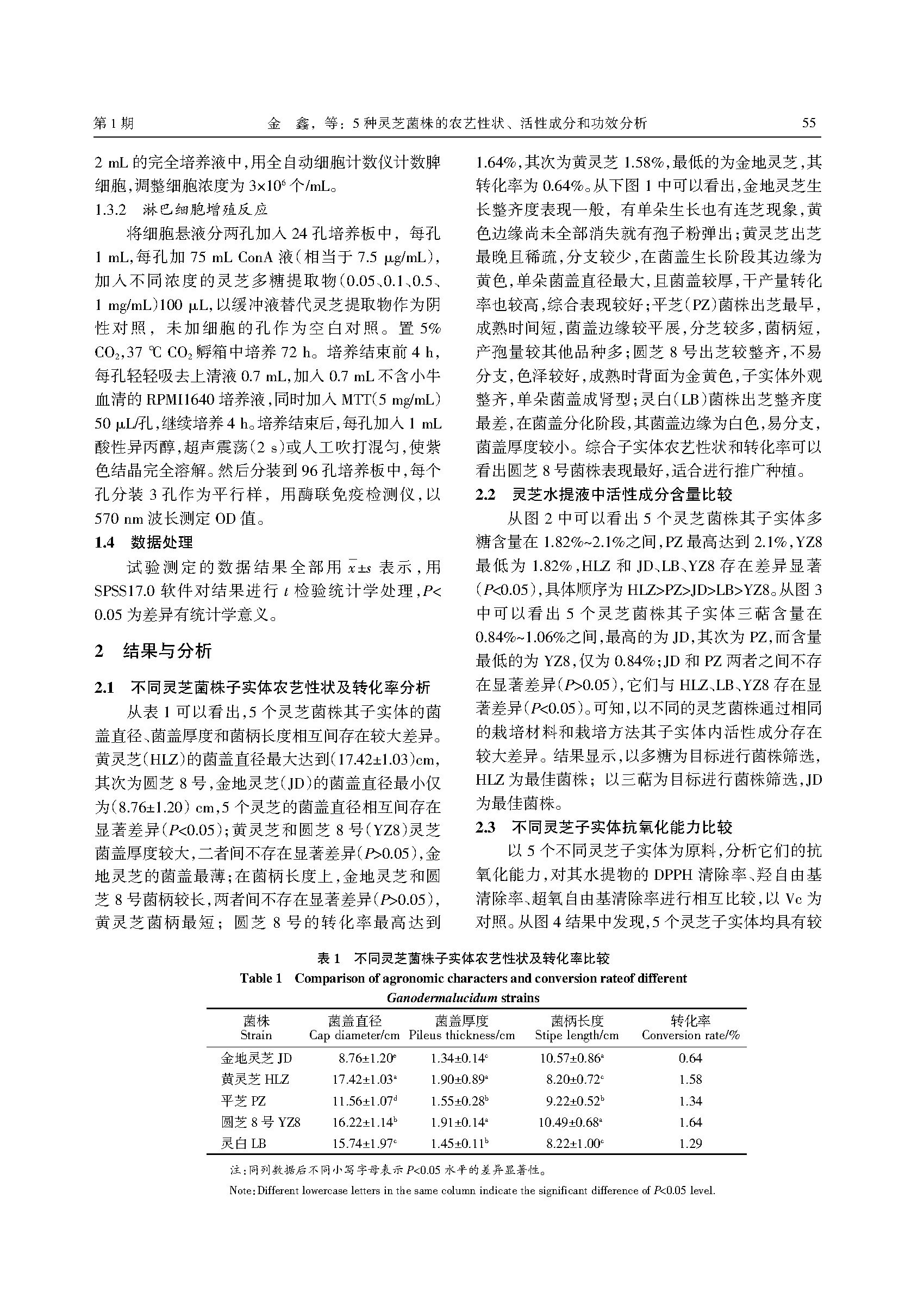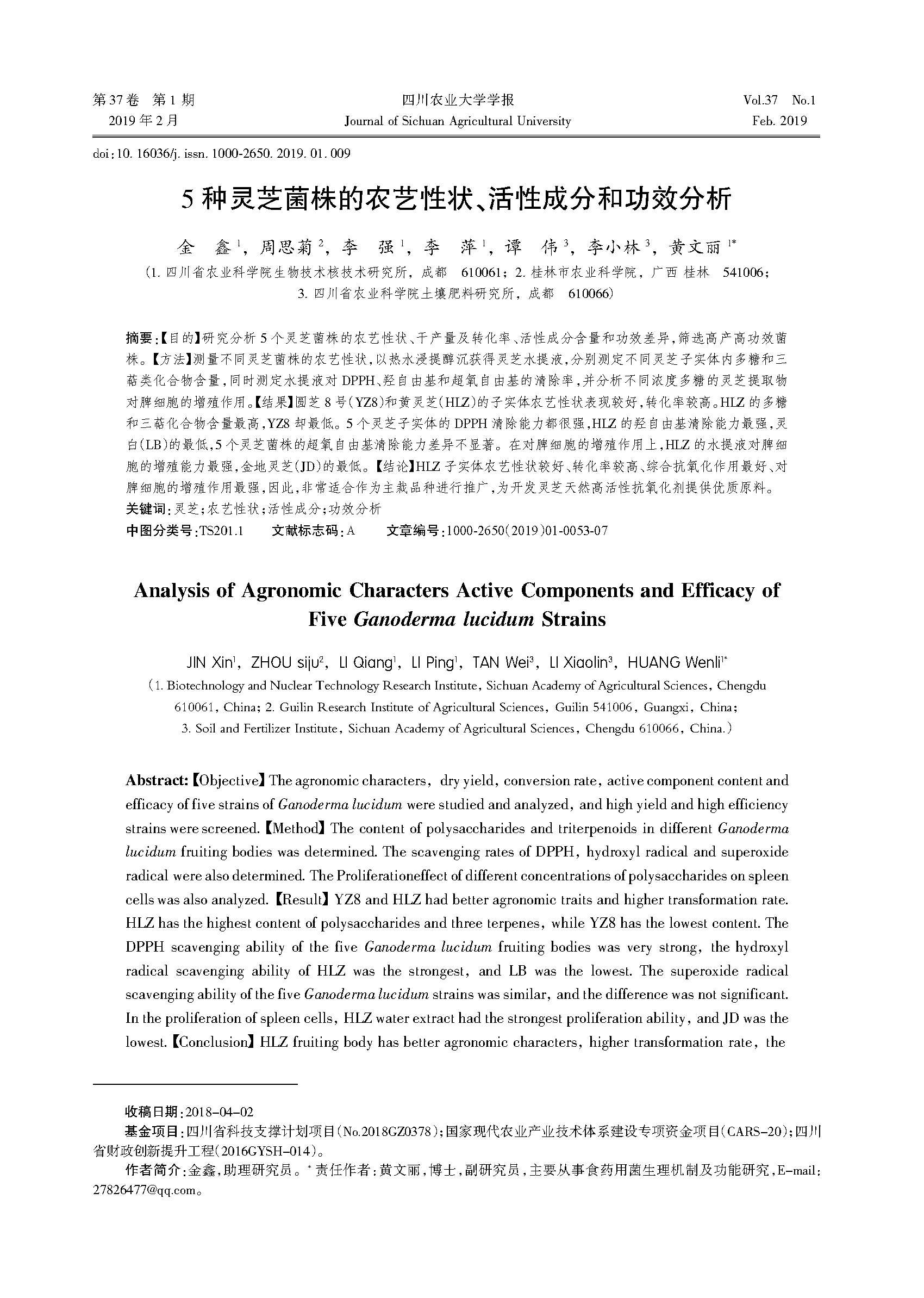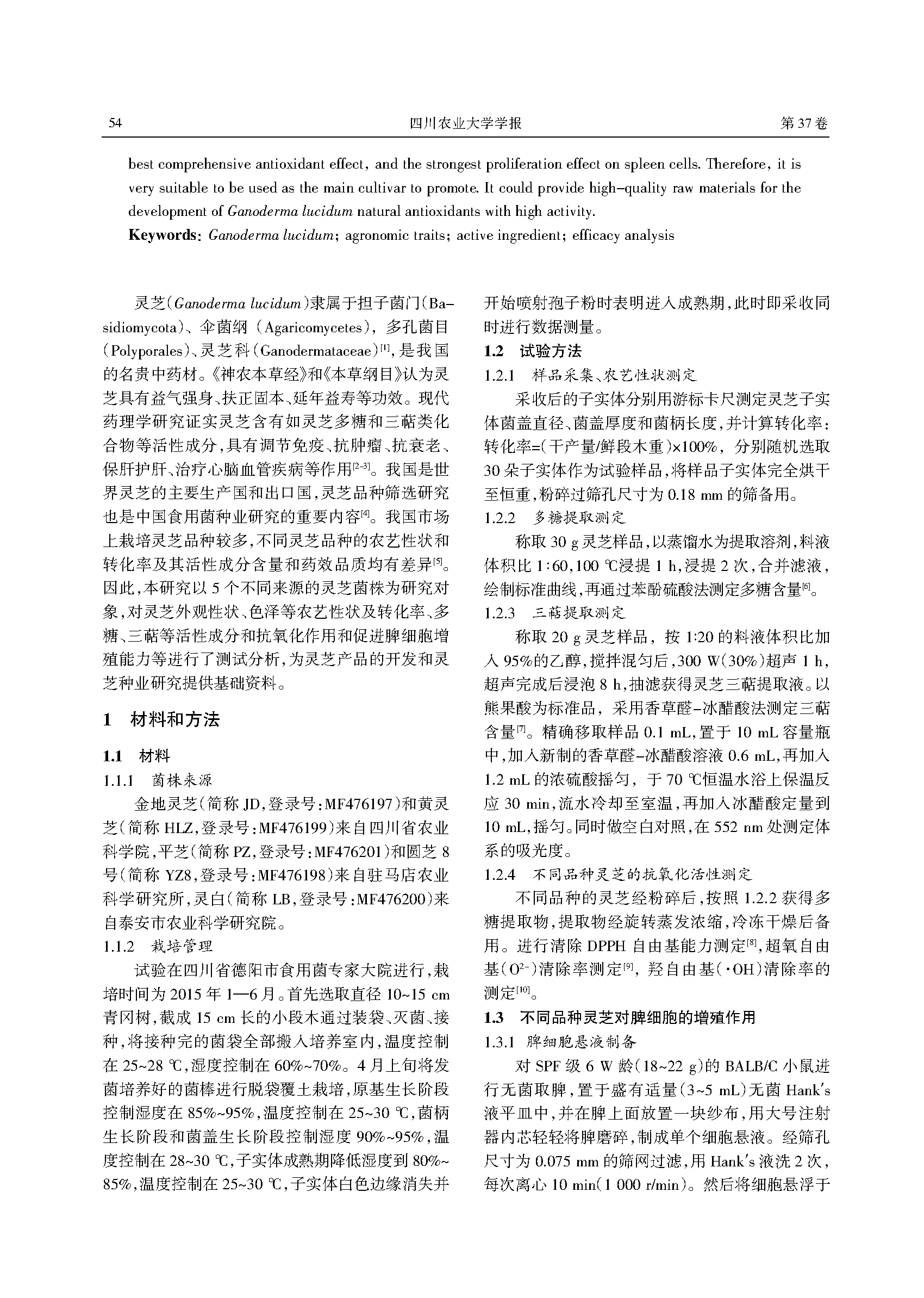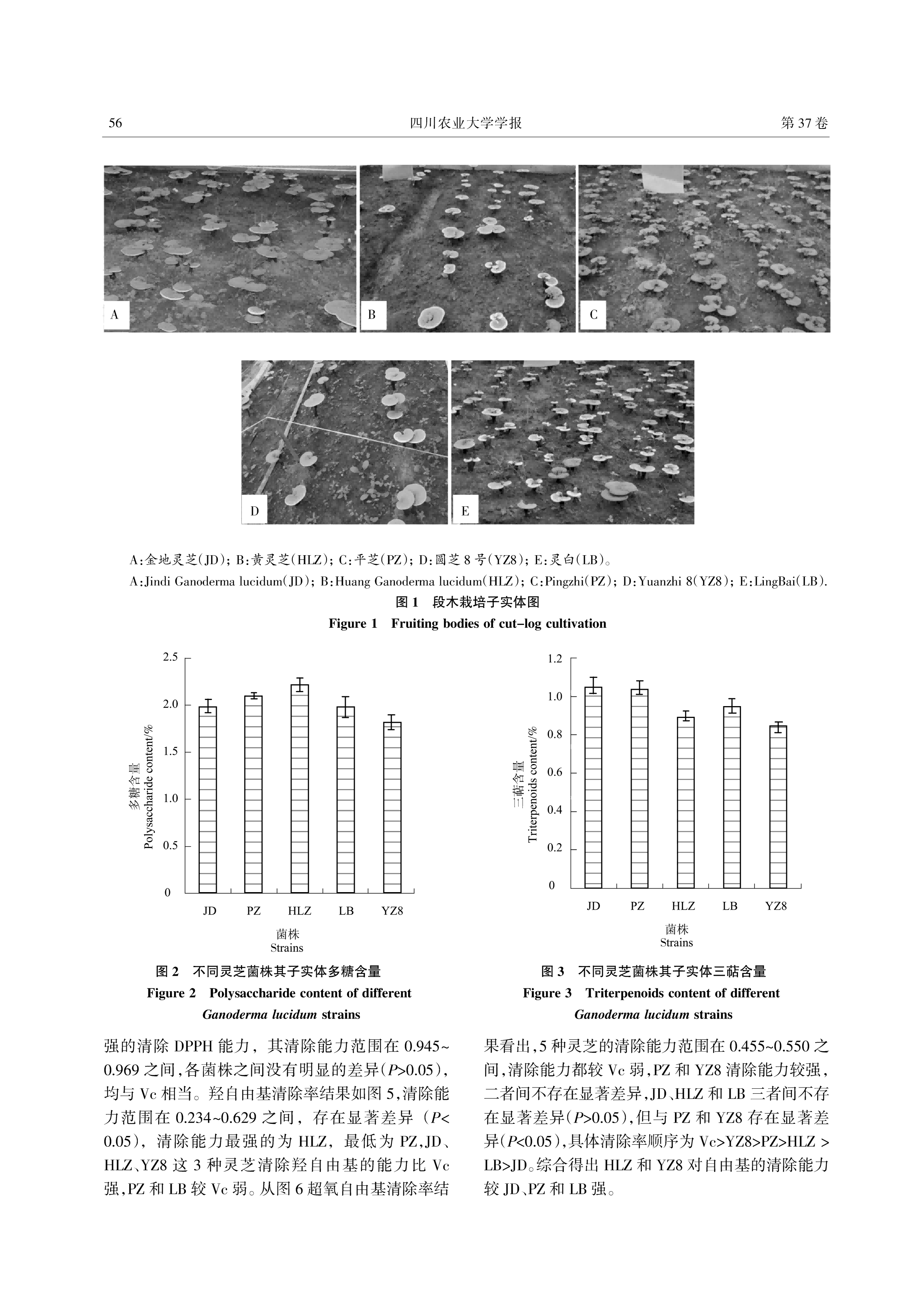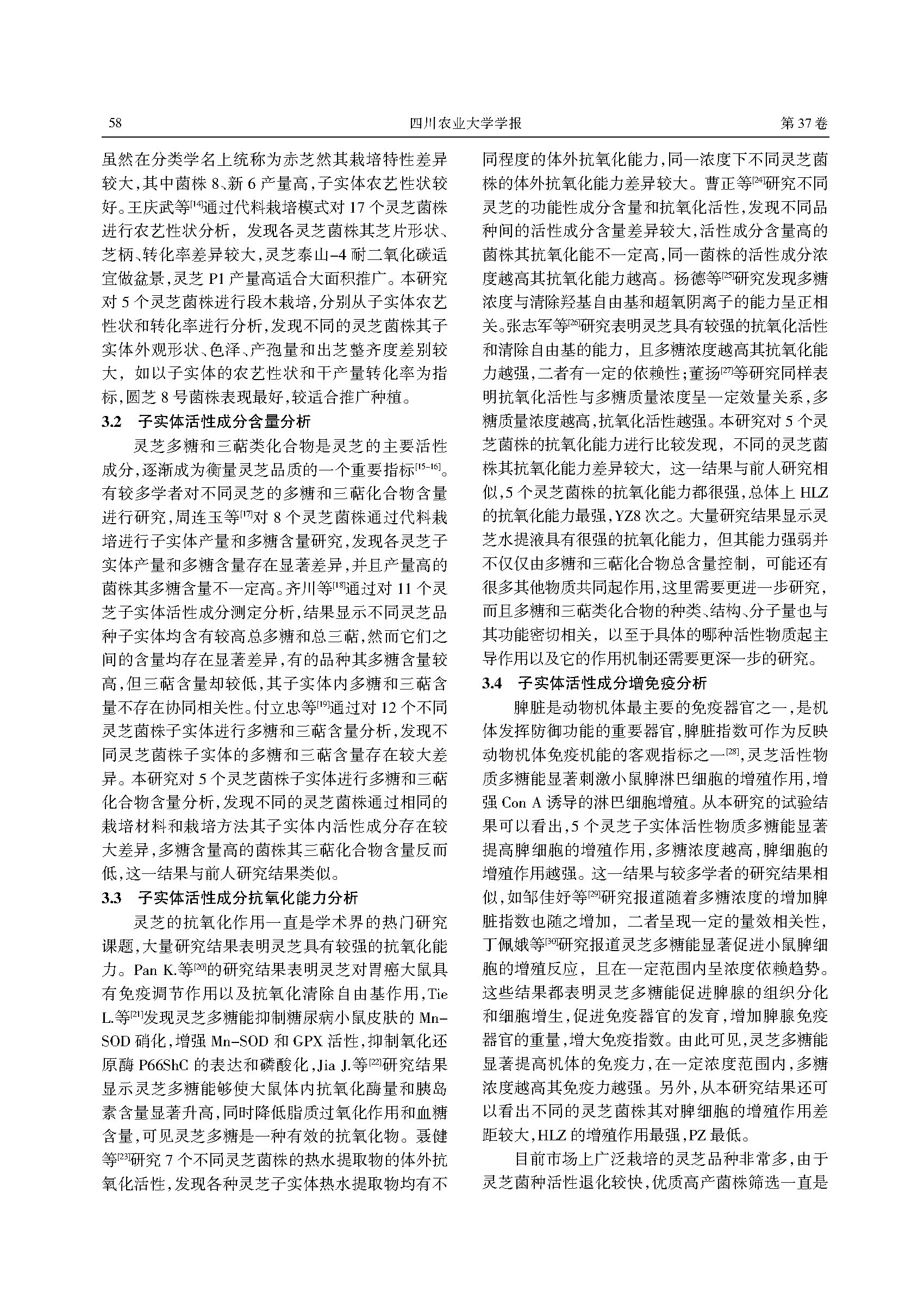 4、《四川农业大学学报-5种灵芝菌株的农艺性状、活性成分和功效分析》