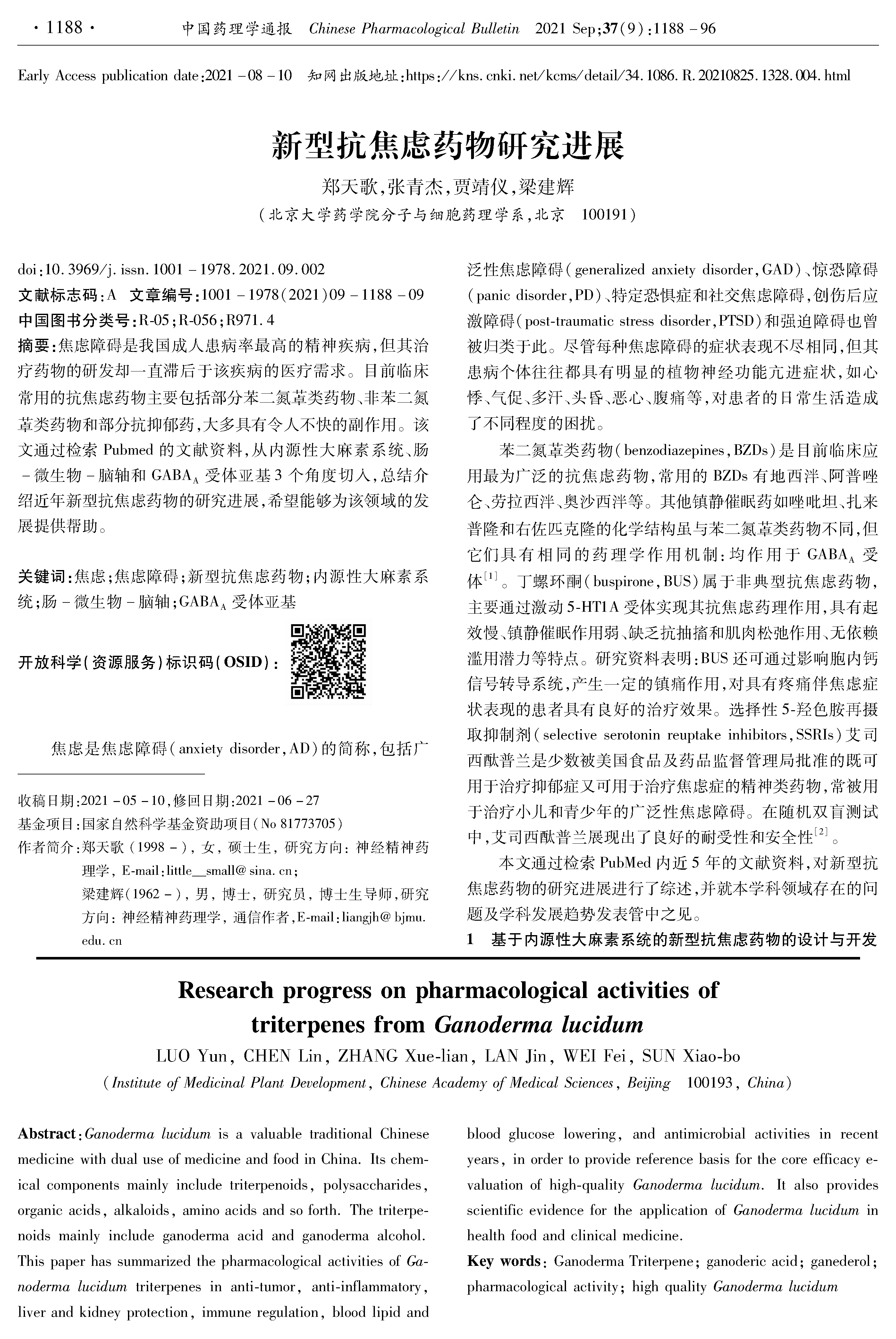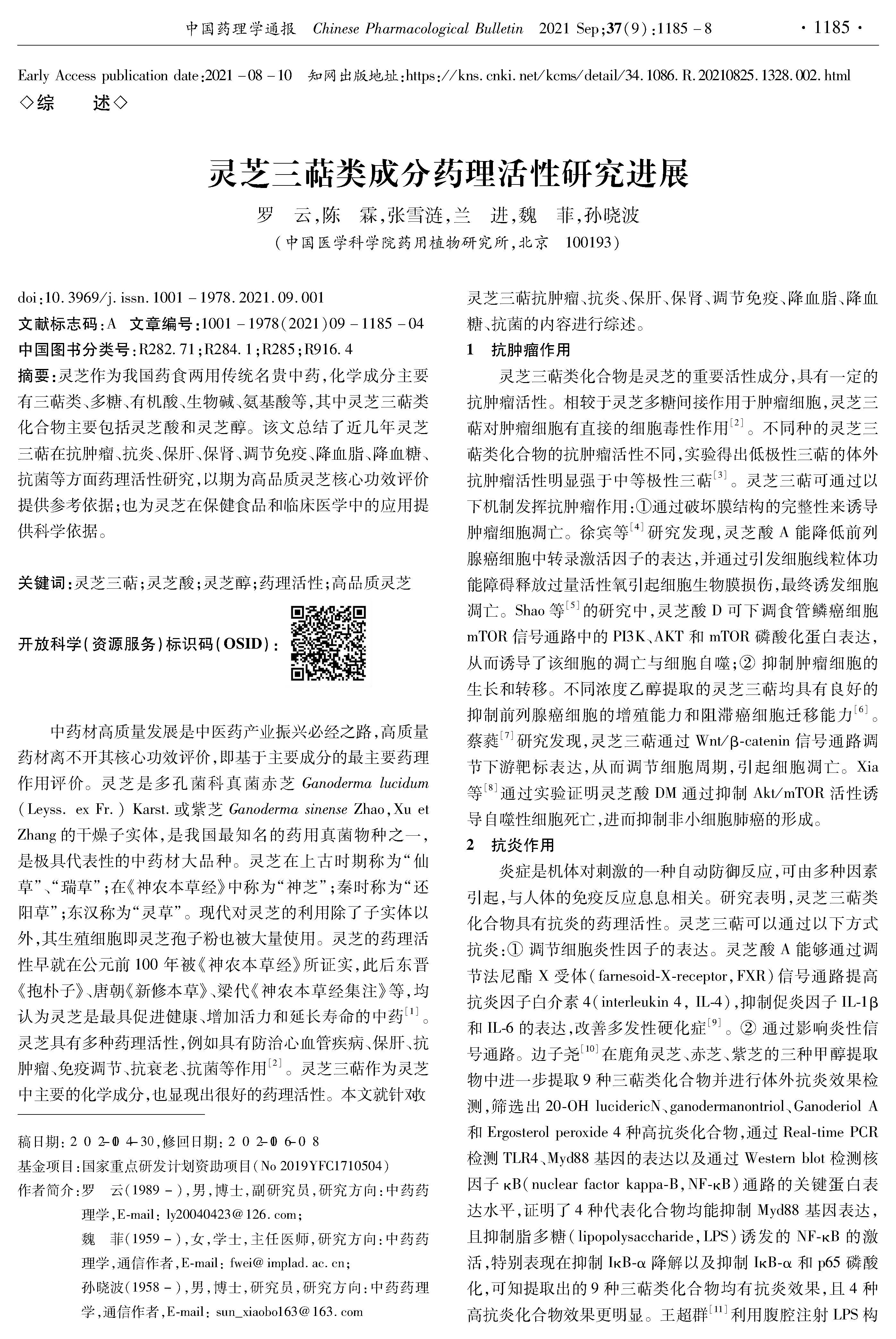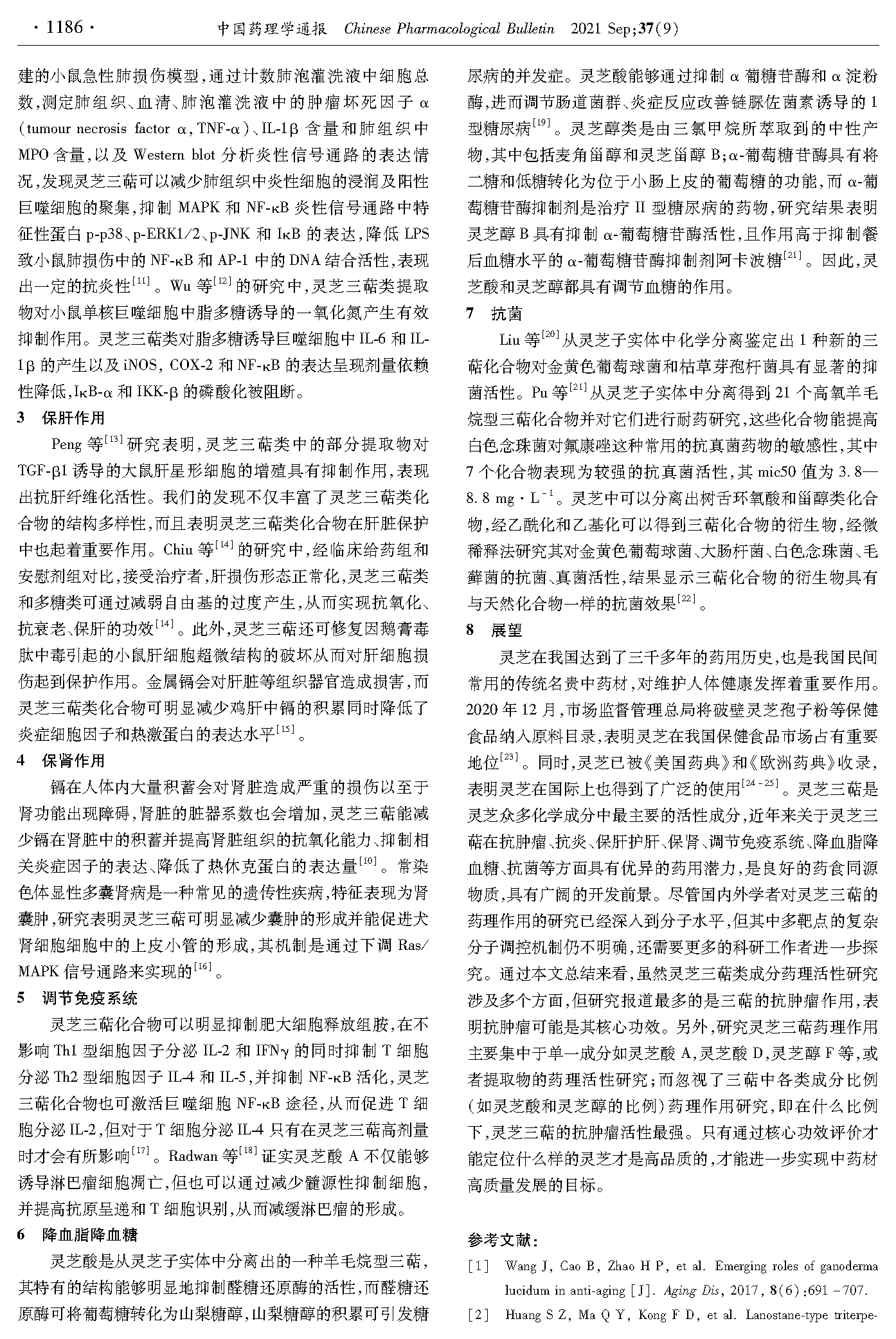 5、《中国药理学通报-灵芝三萜类成分药理活性研究进展》