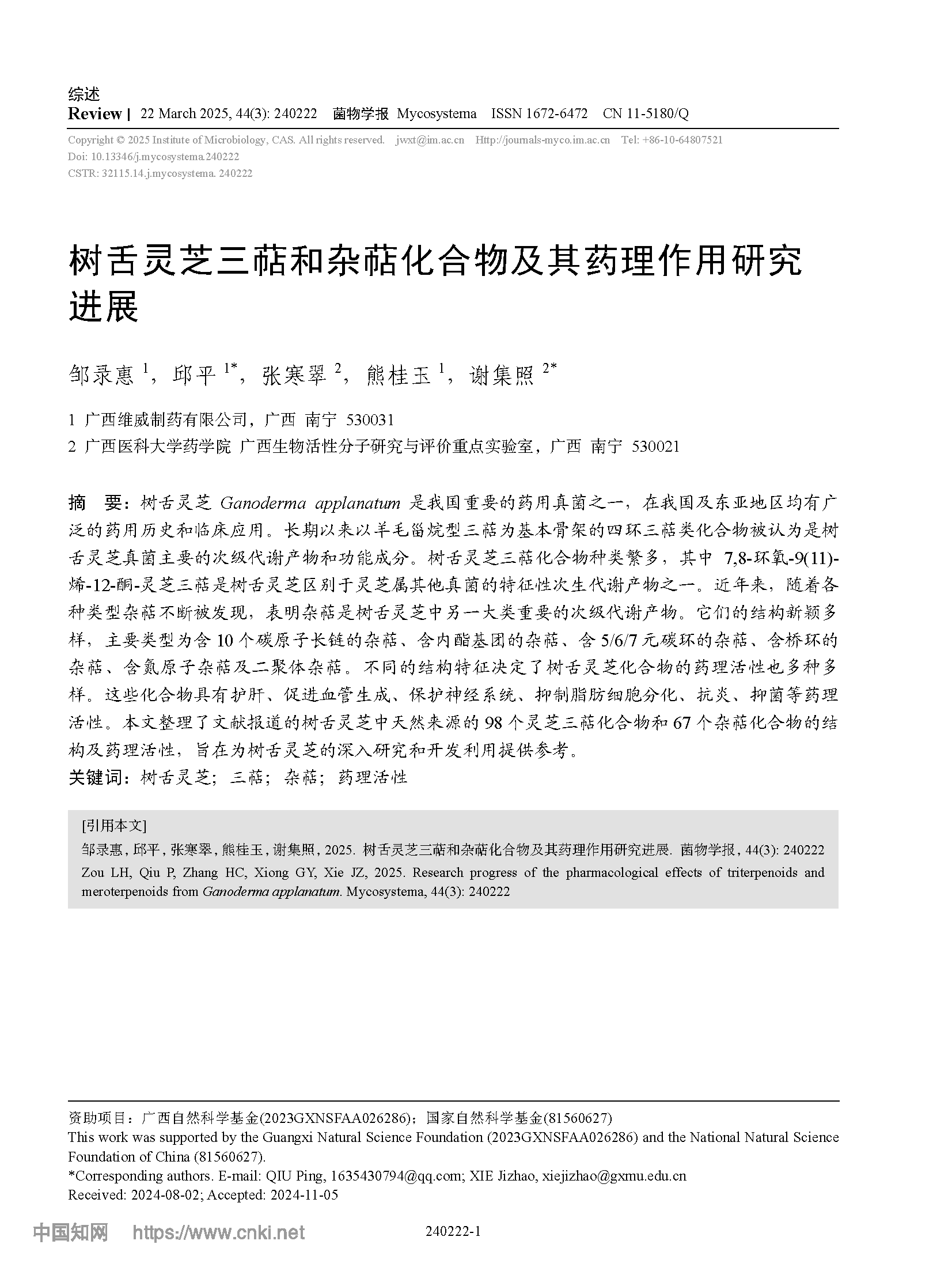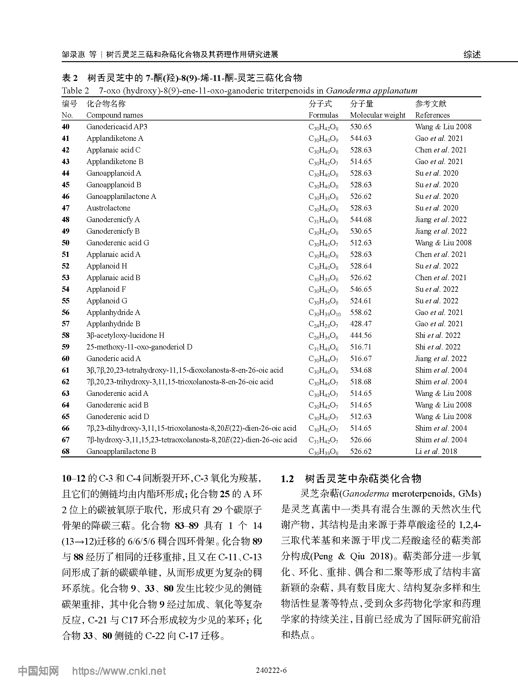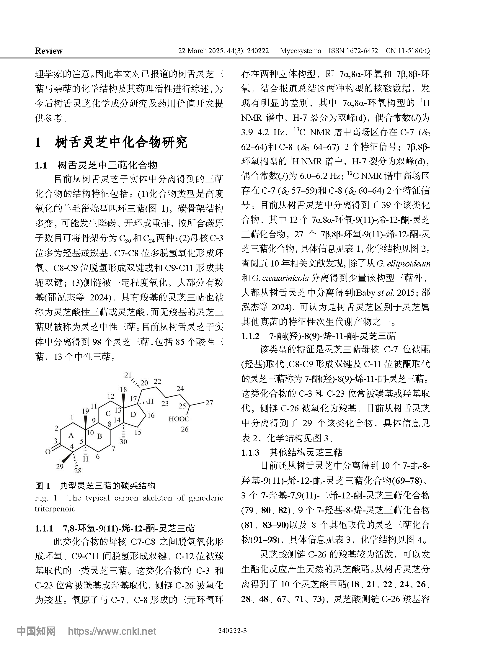 7、《菌物学报-树舌灵芝三萜和杂萜化合物及其药理作用研究进展》