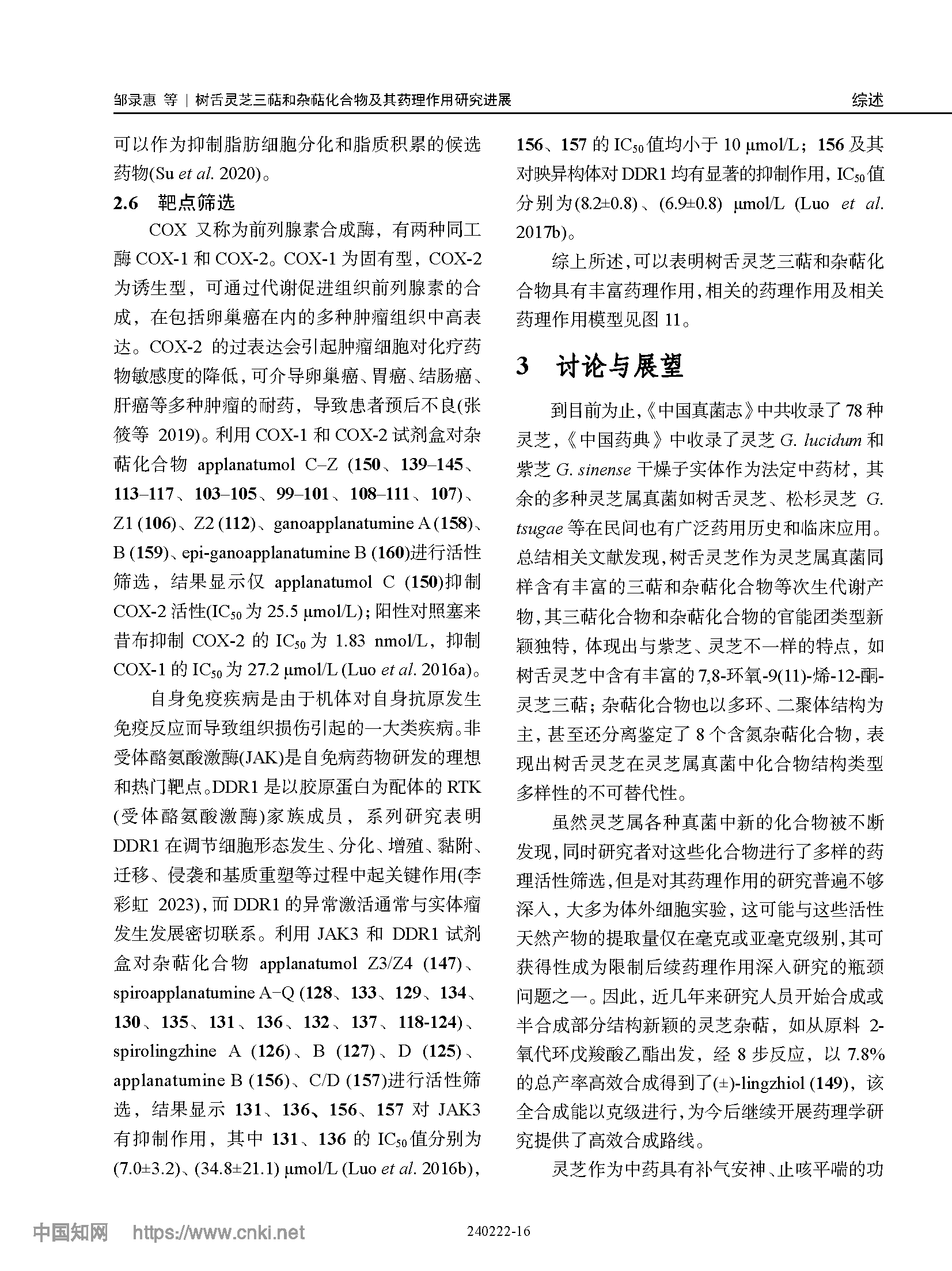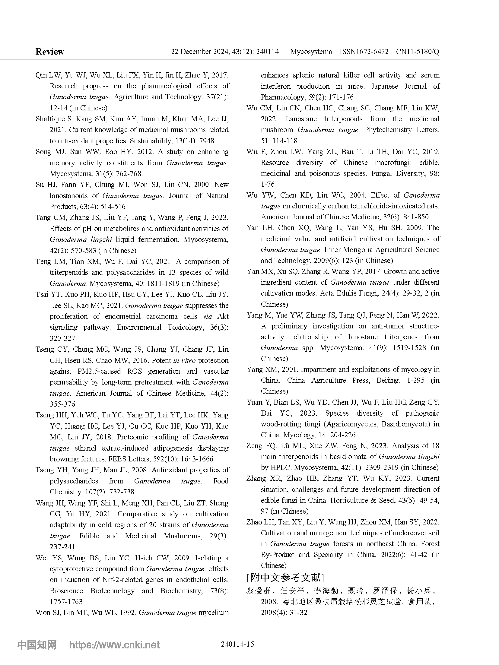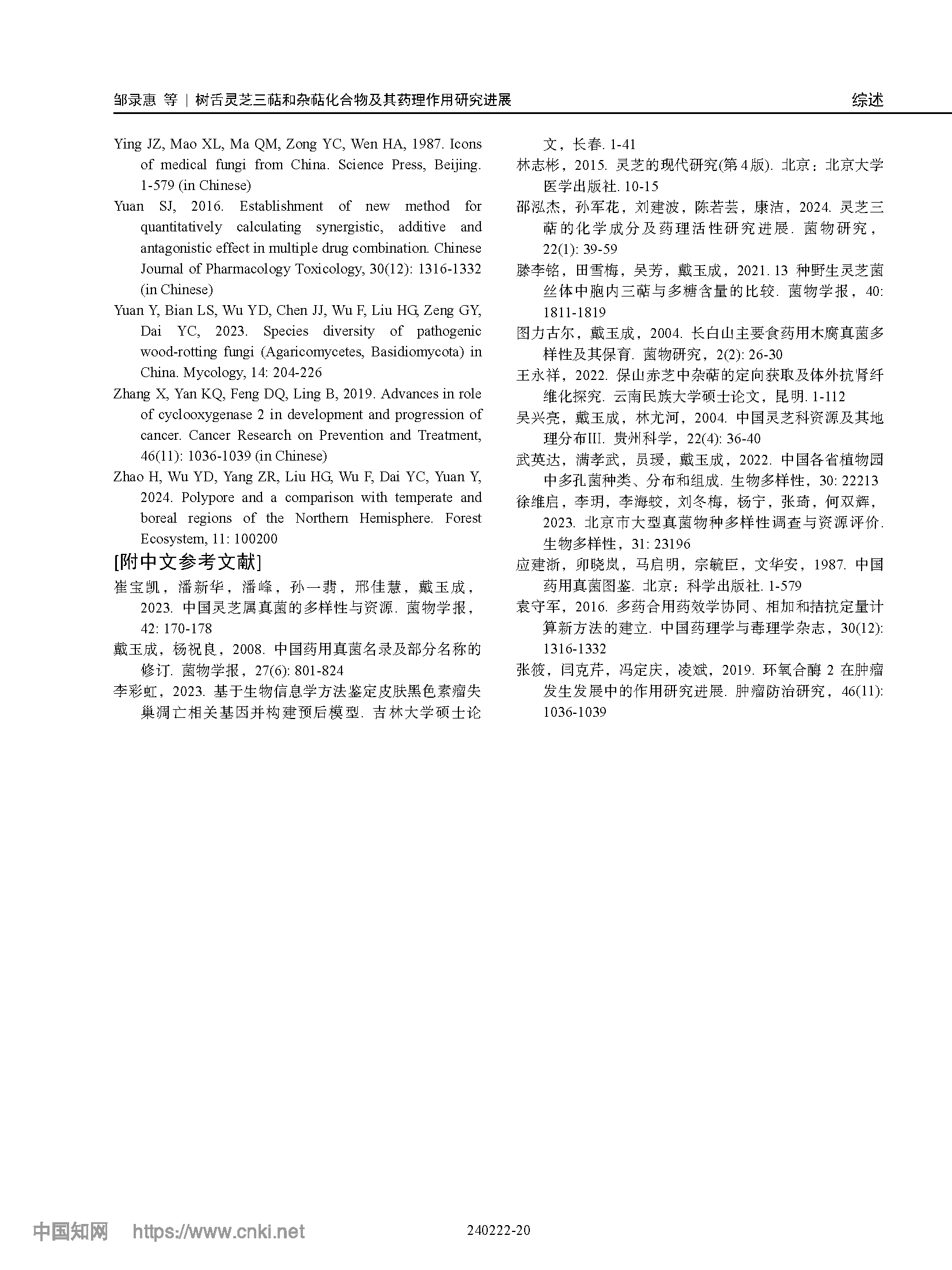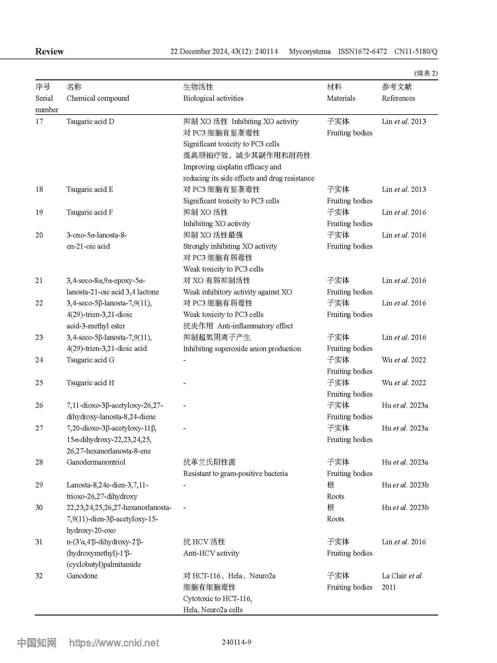7、《菌物学报-树舌灵芝三萜和杂萜化合物及其药理作用研究进展》
