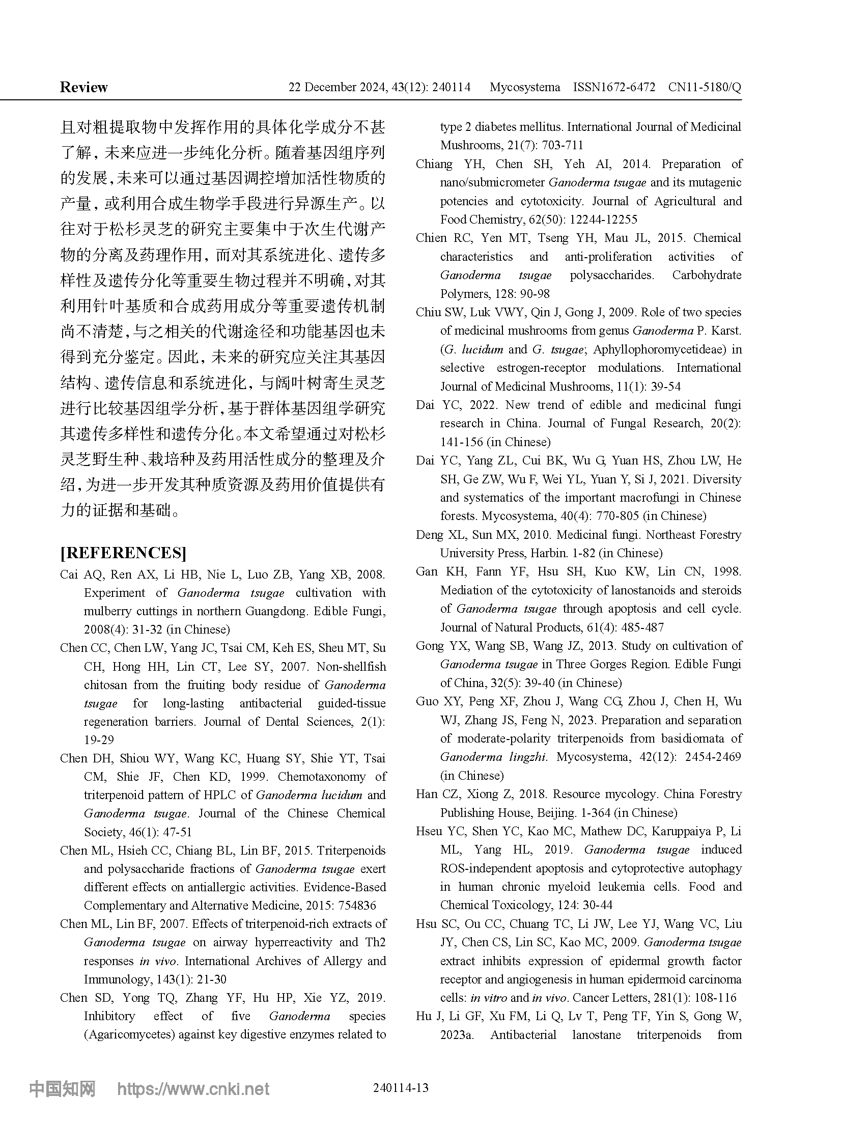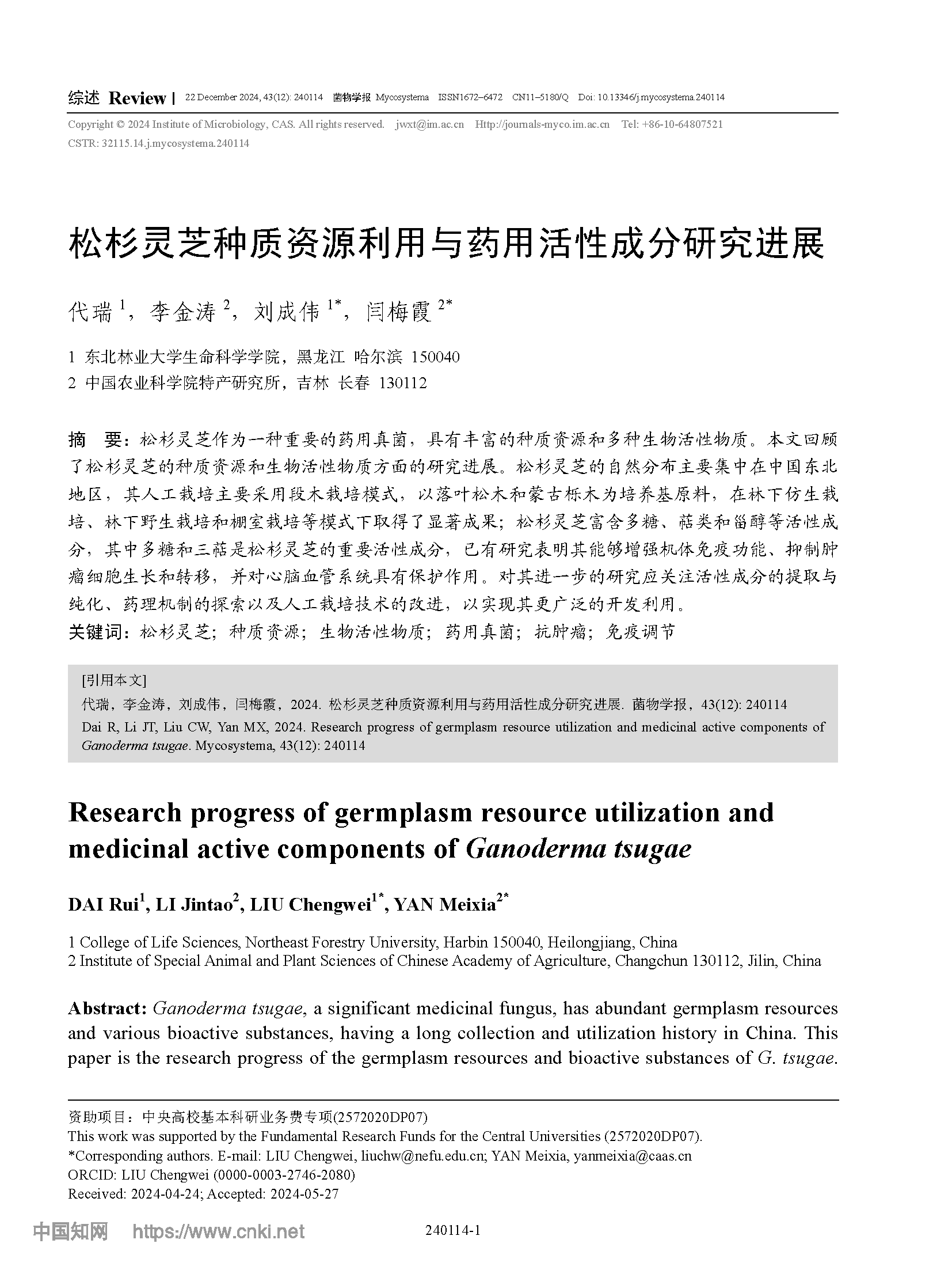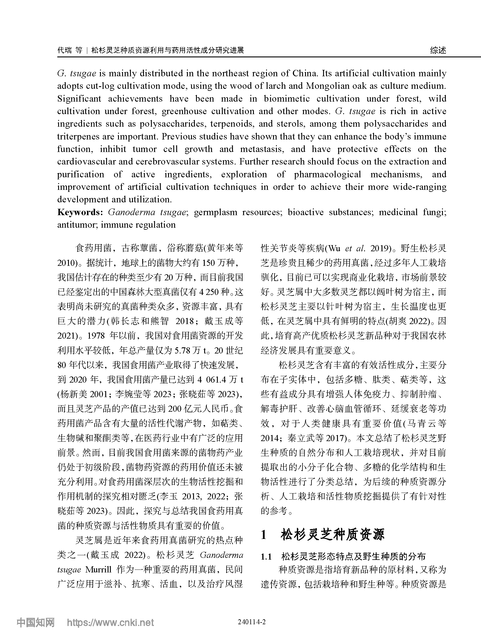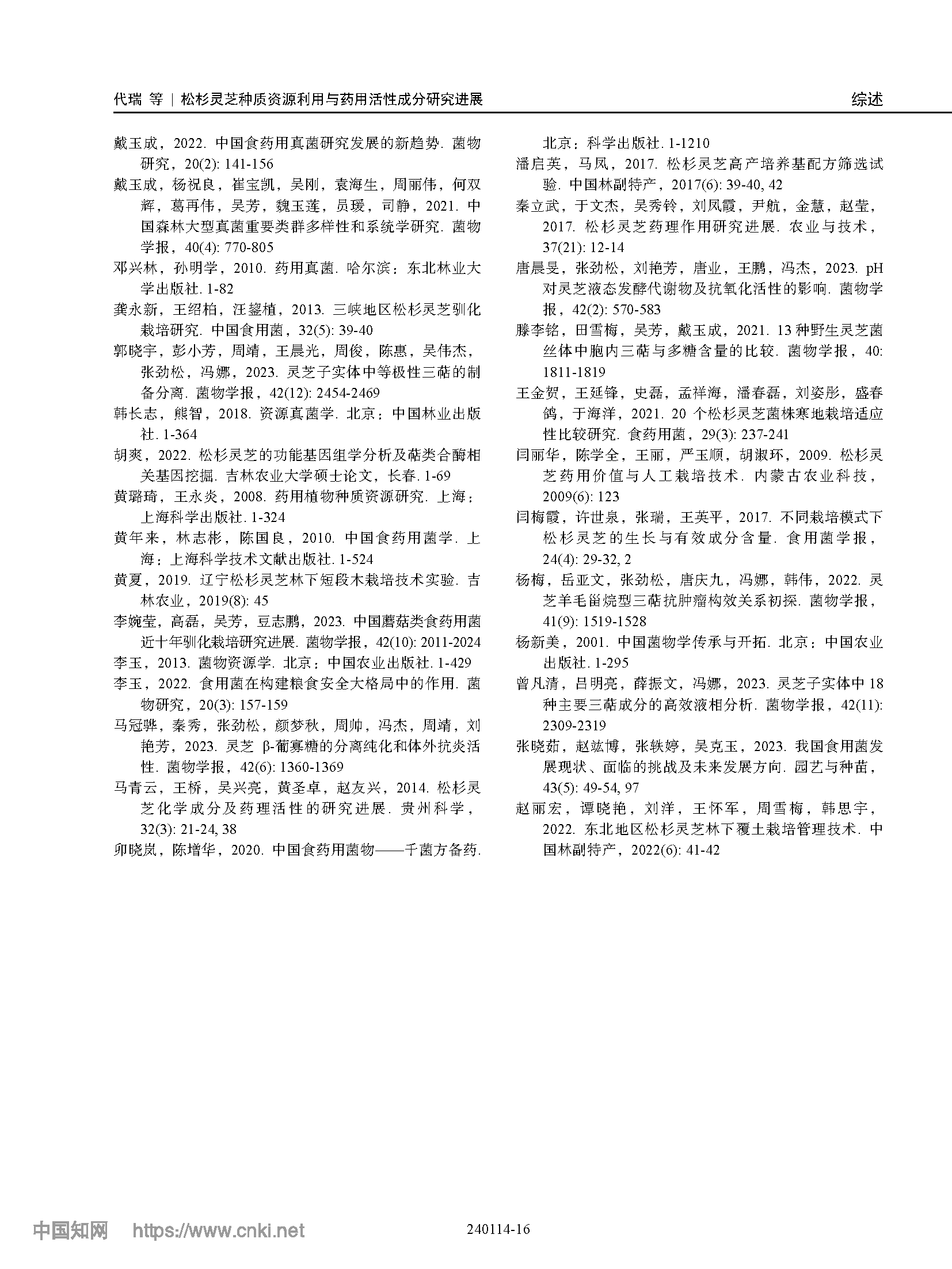 8、《菌物学报-松杉灵芝种质资源利用与药用活性成分研究进展》
