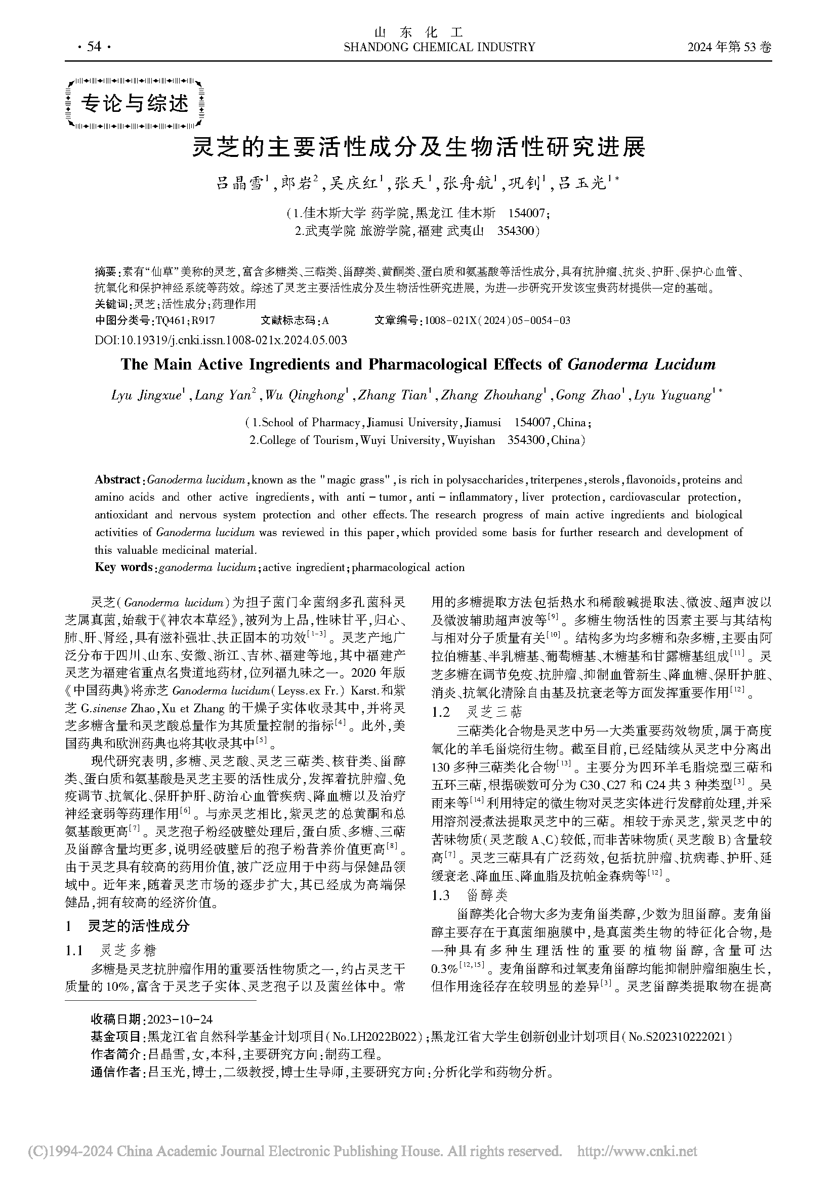 9、《山东化工-灵芝的主要活性成分及生物活性研究进展》