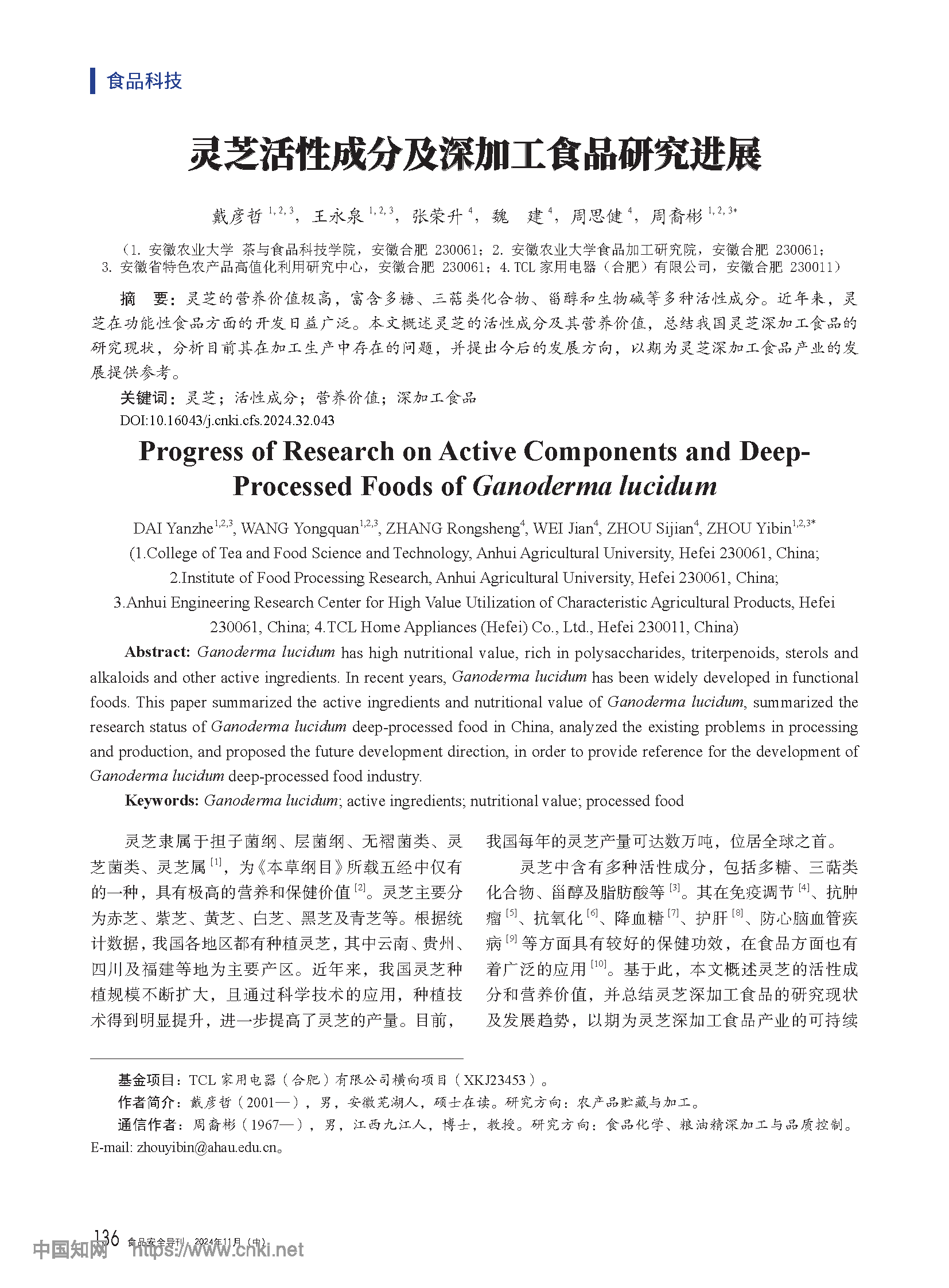 10、《食品安全导刊-灵芝活性成分及深加工食品研究进展》