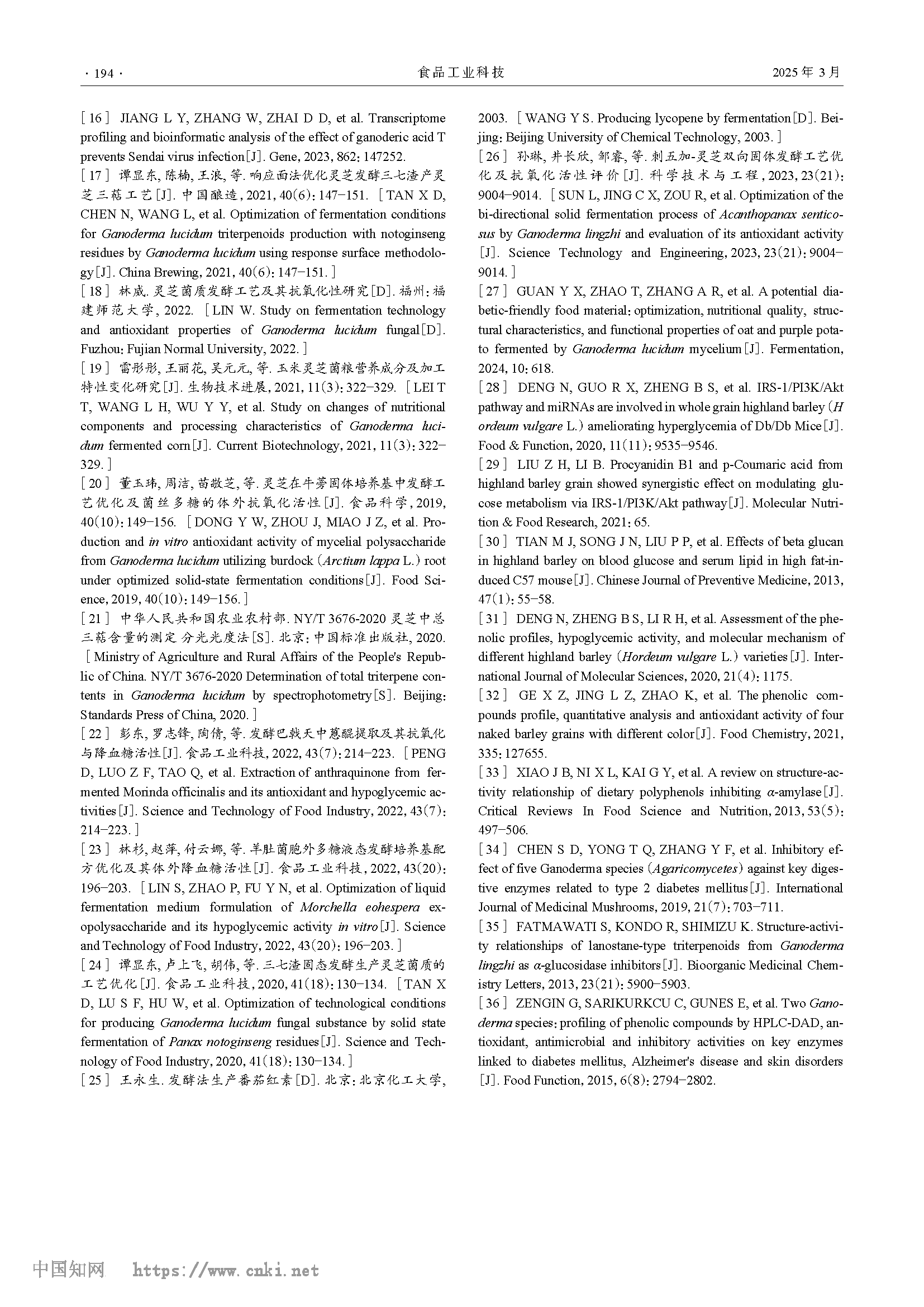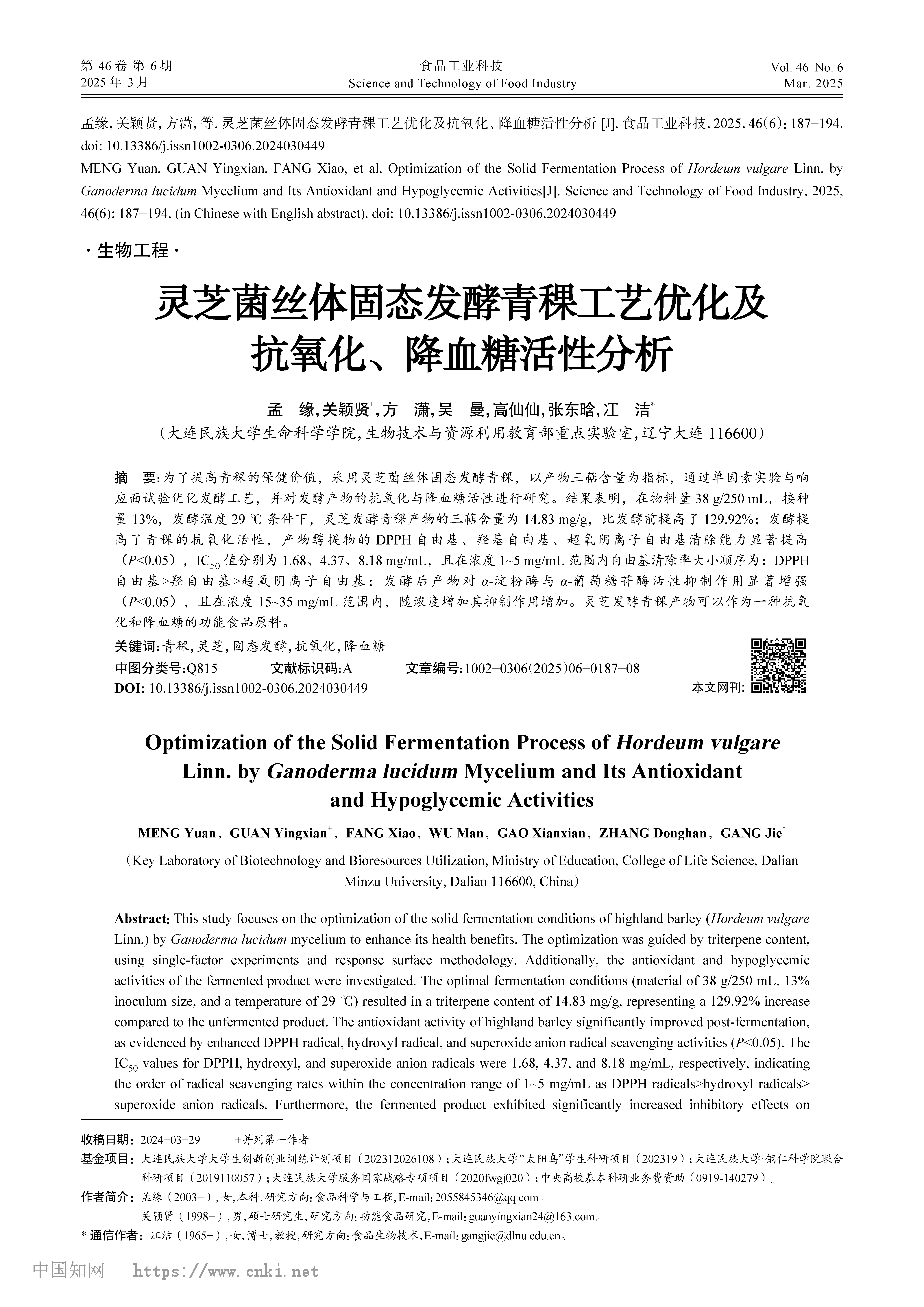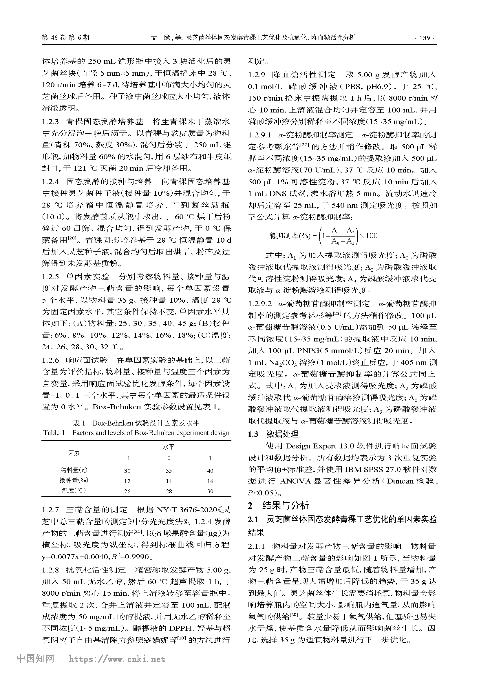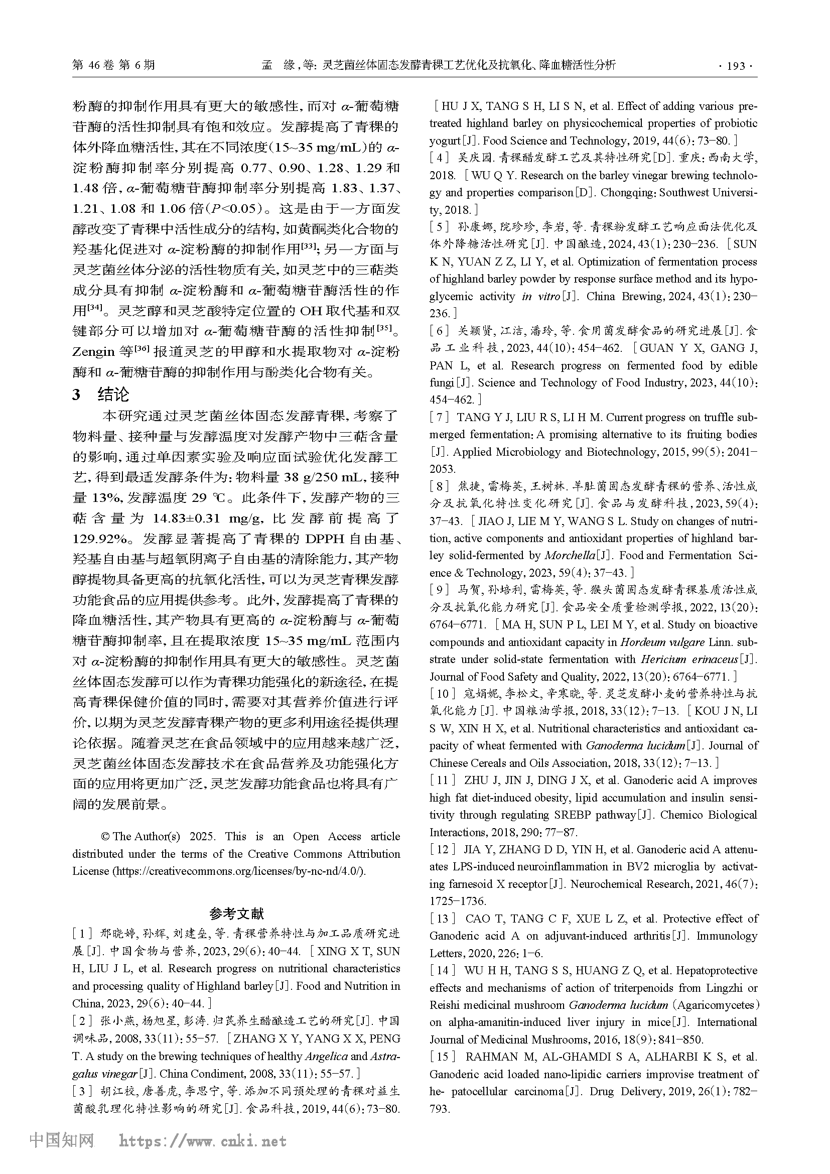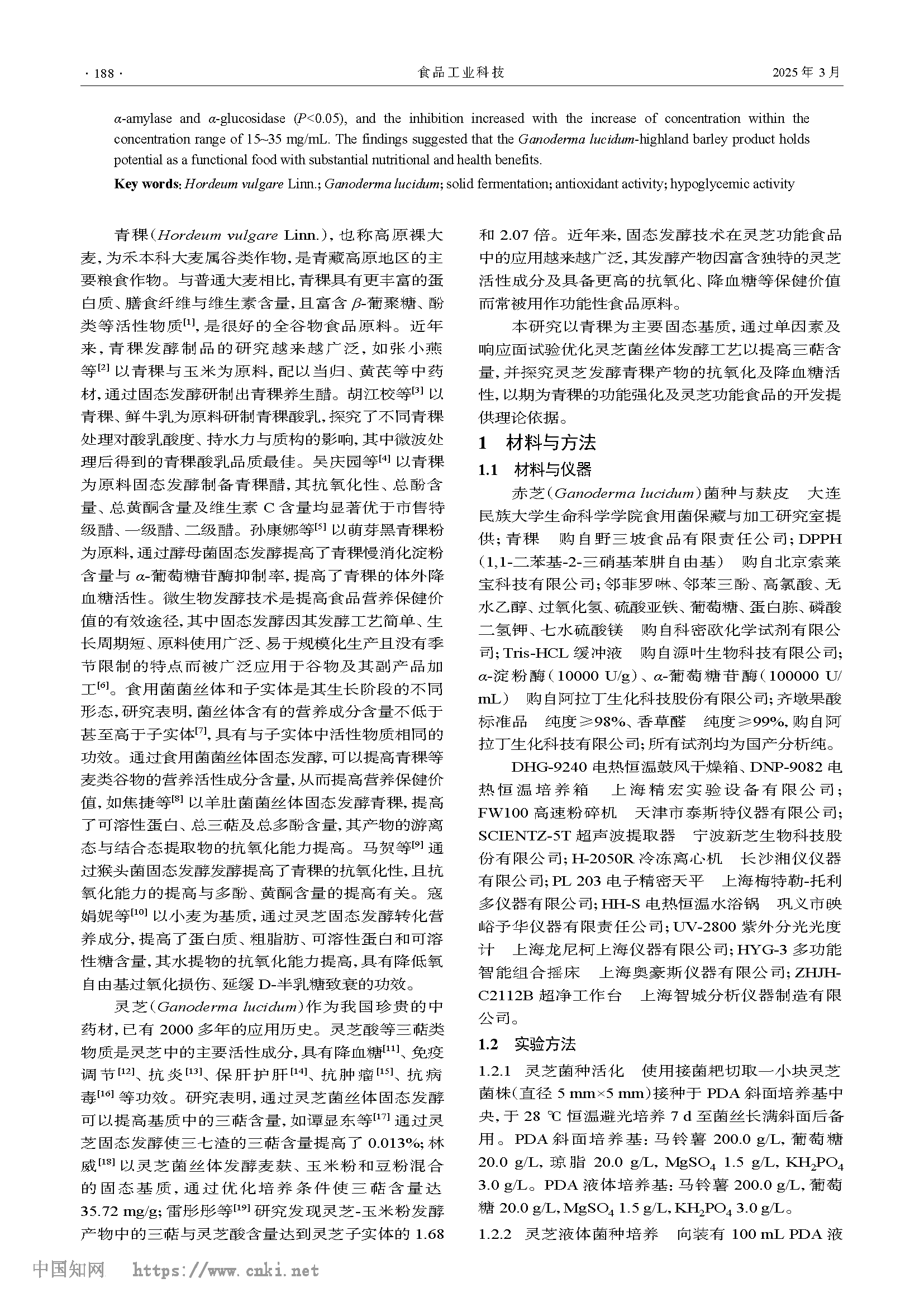 12、《食品工业科技-灵芝菌丝体固态发酵青稞工艺...化及抗氧化、降血糖活性分析》
